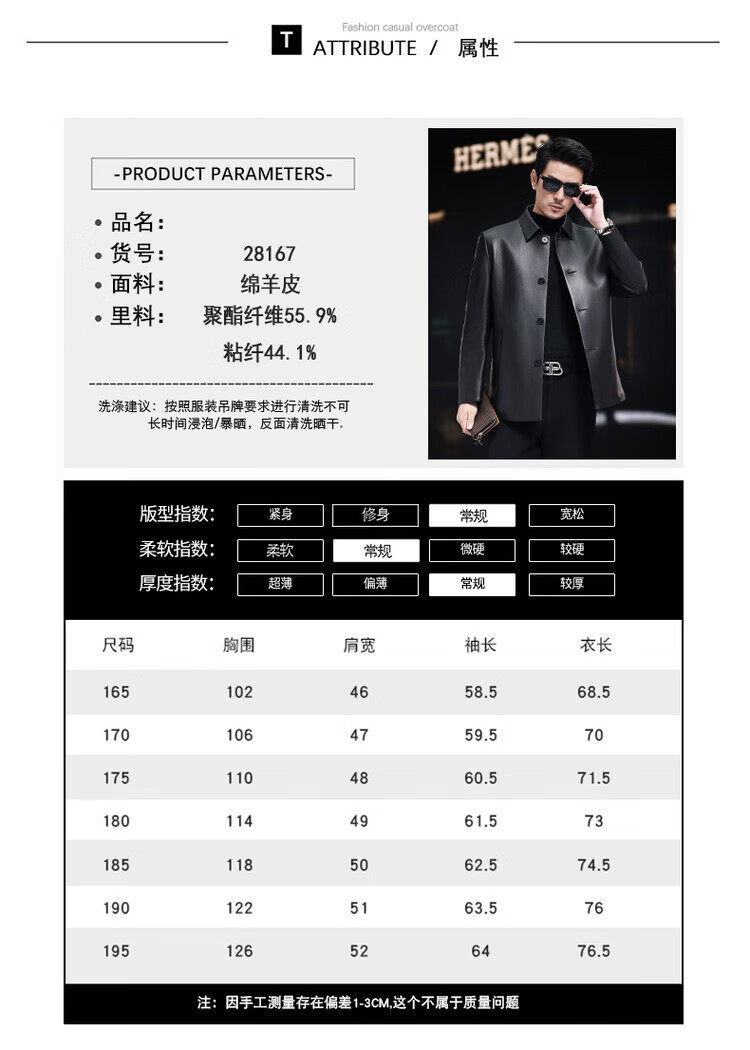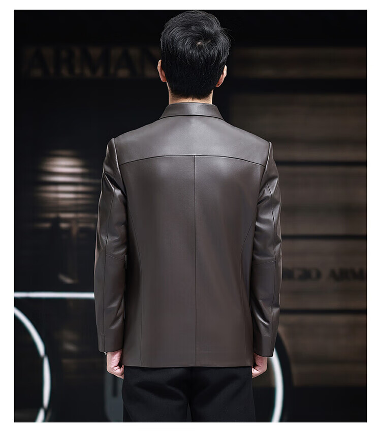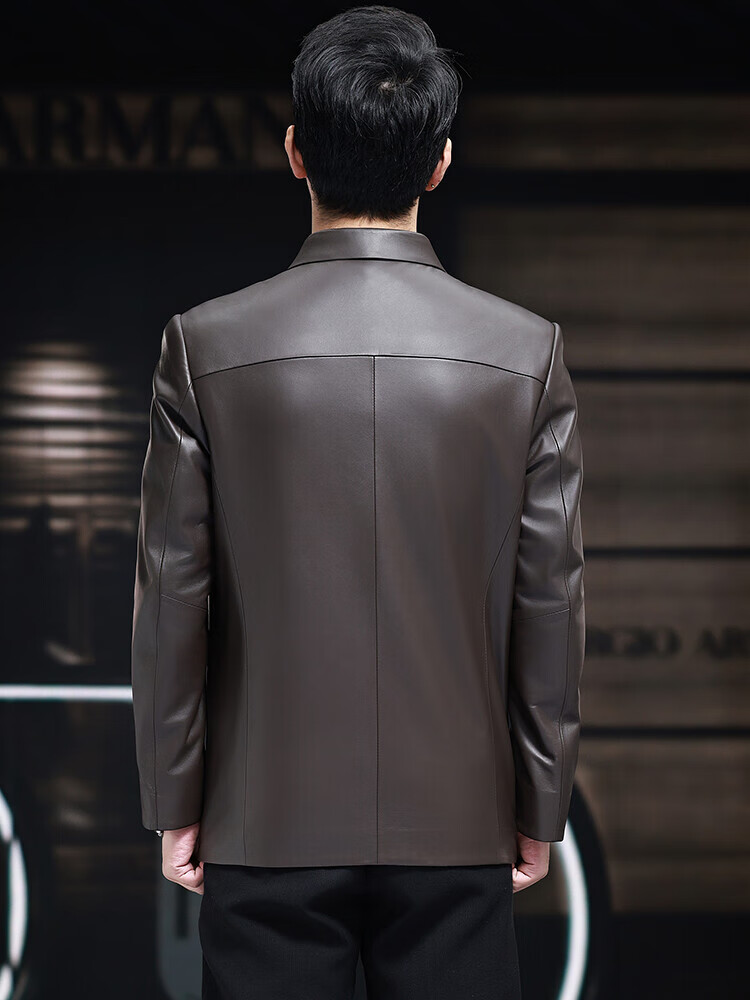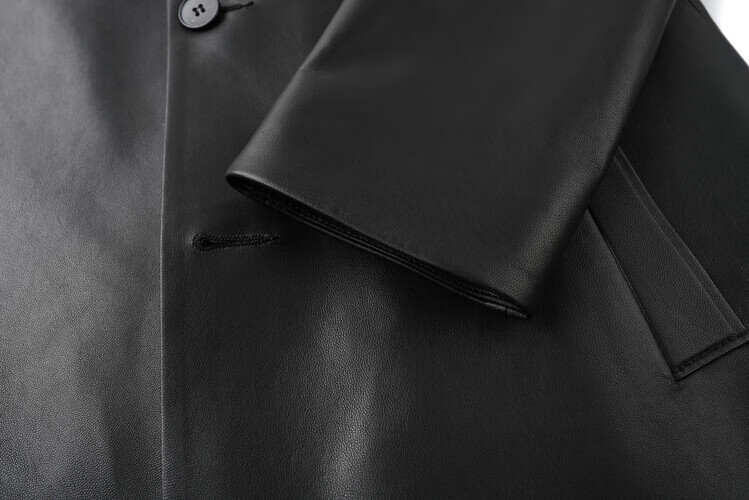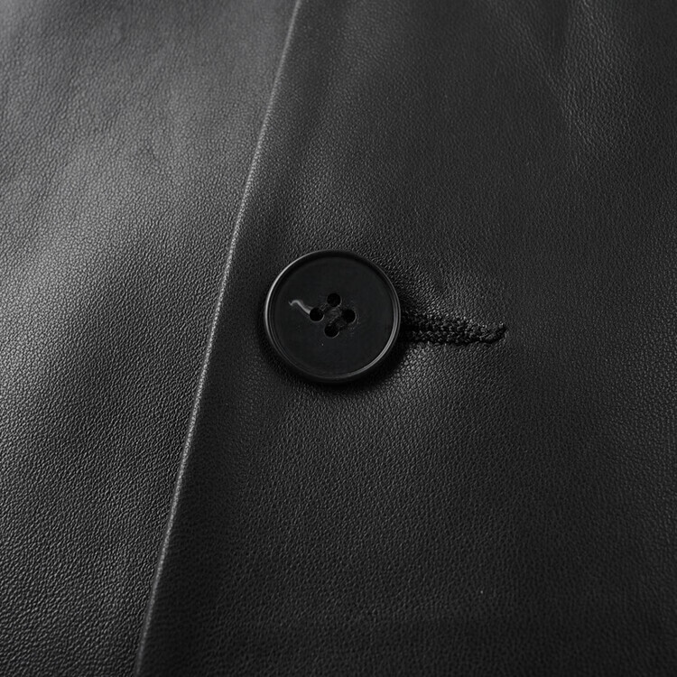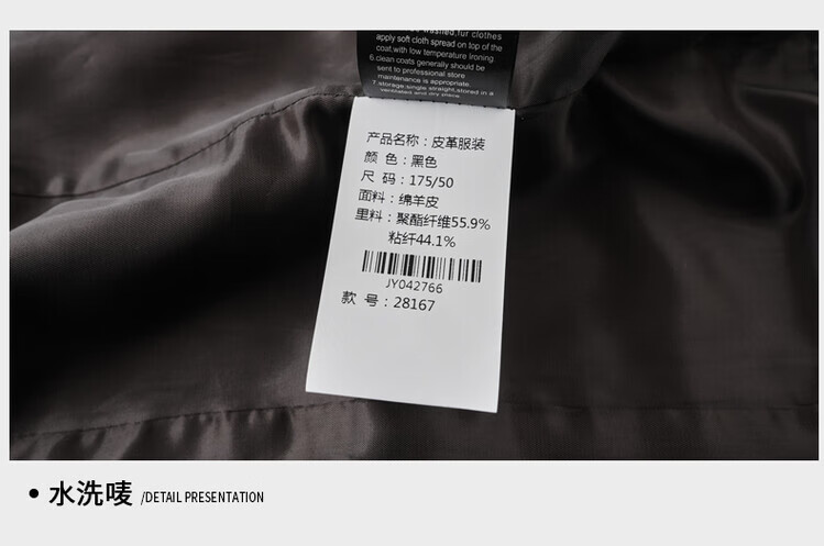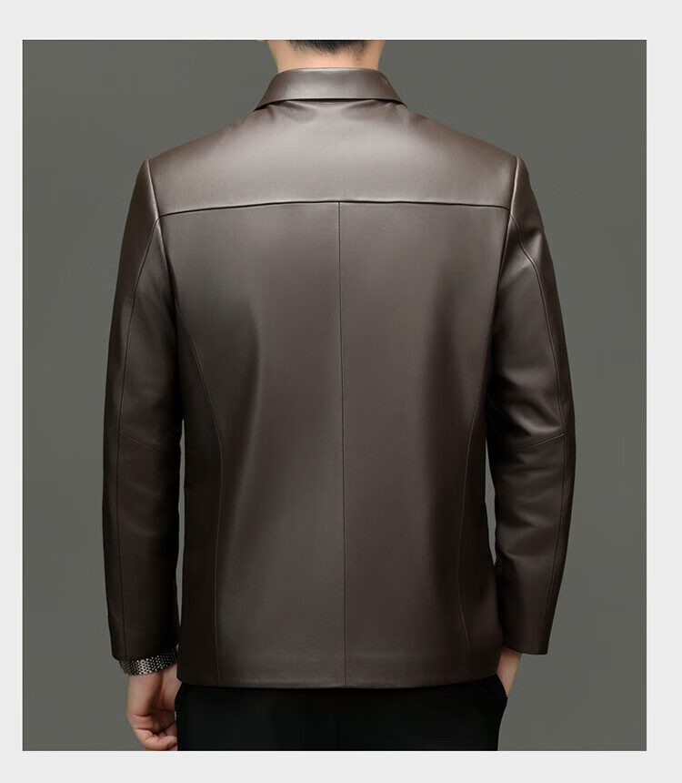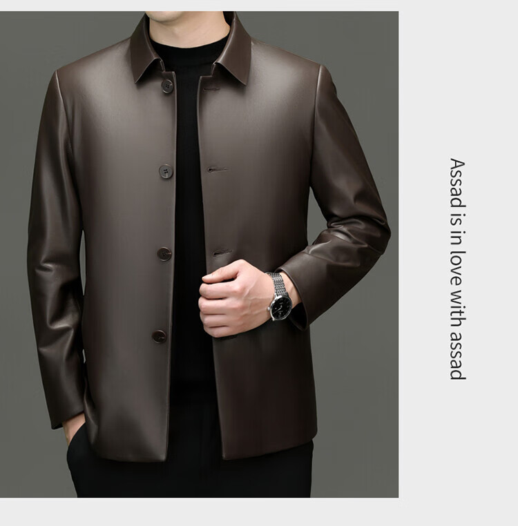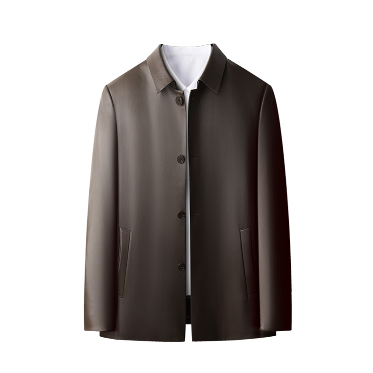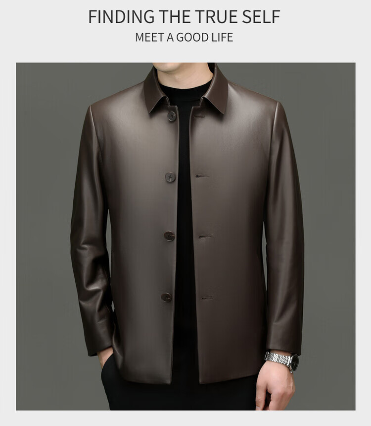 恒源祥春秋海宁真皮皮衣男皮夹克绵羊皮中长款外套薄款翻领风衣加绒加厚 黑色 XL 180
