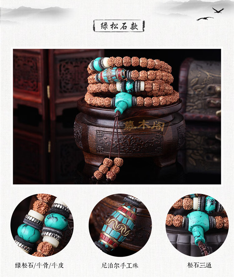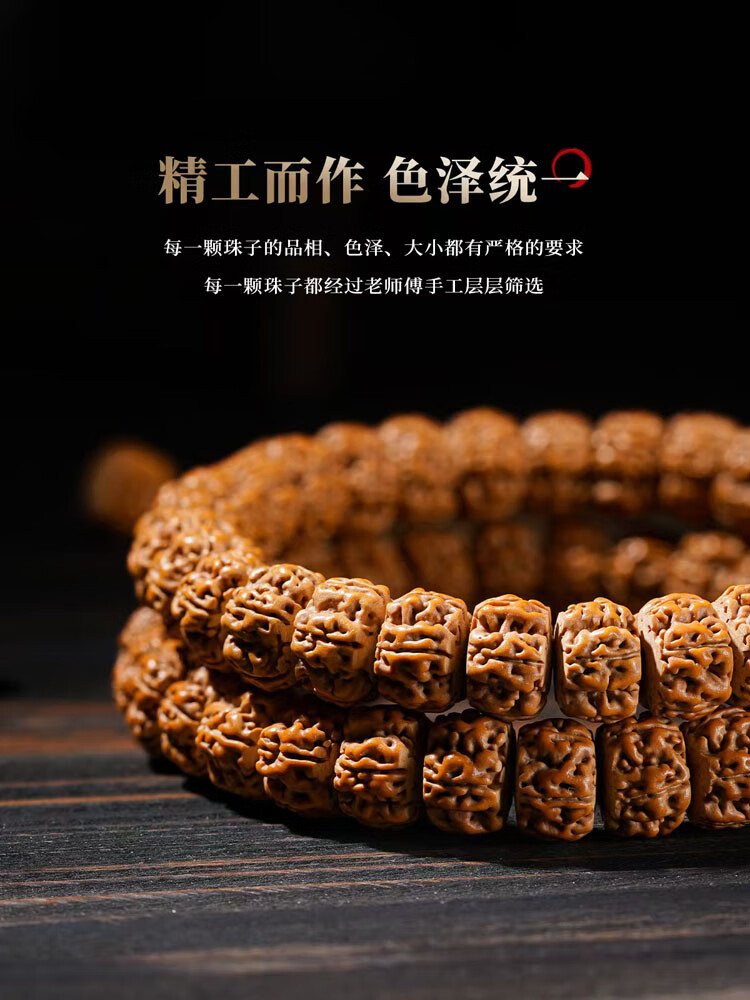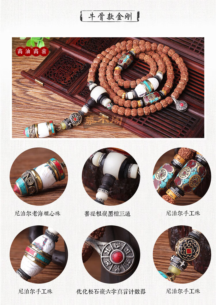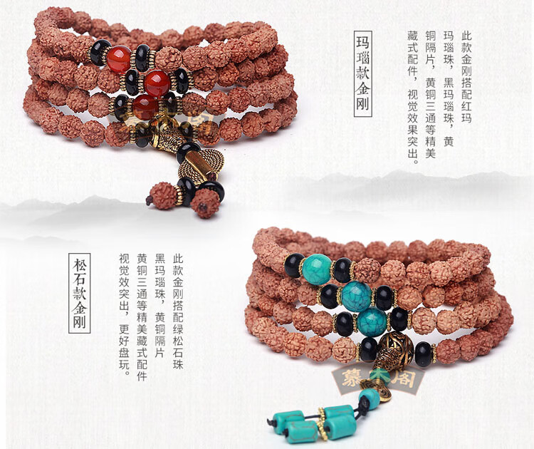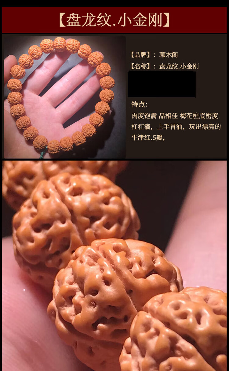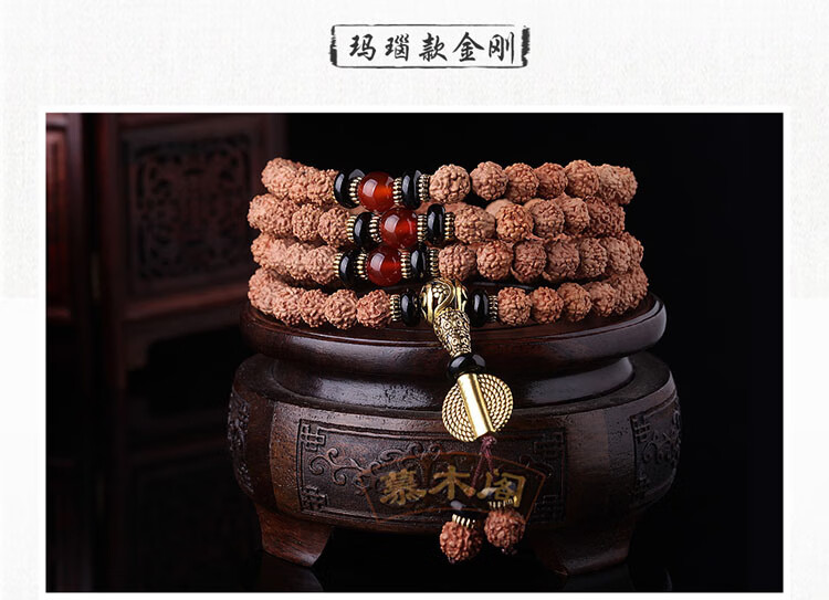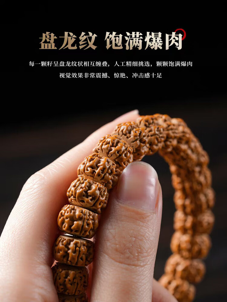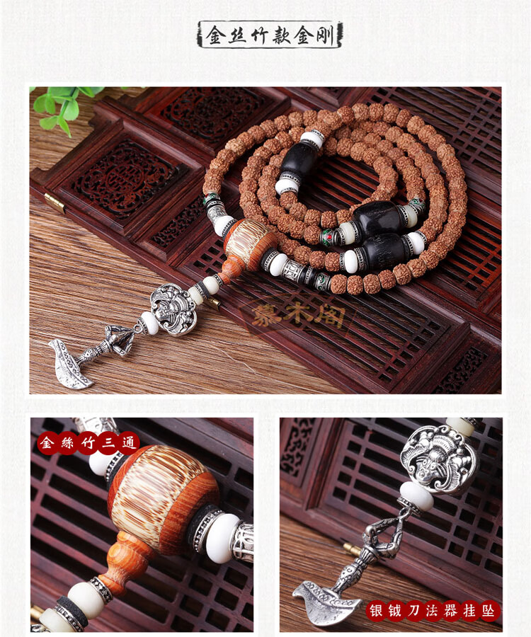 慕木阁 五瓣藏式盘龙纹小金刚菩提子佛珠手串108颗挂脖男女文玩手链 B2 【精工级】金丝竹款9*7毫米*108颗