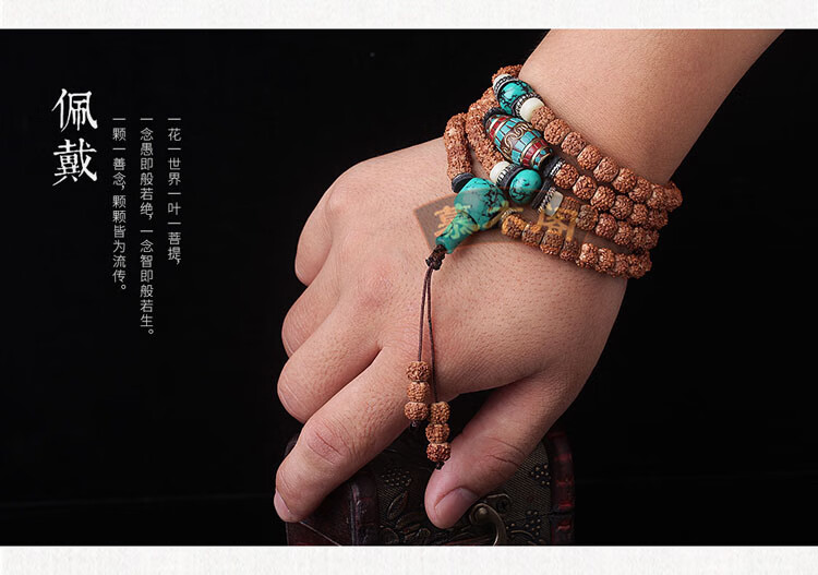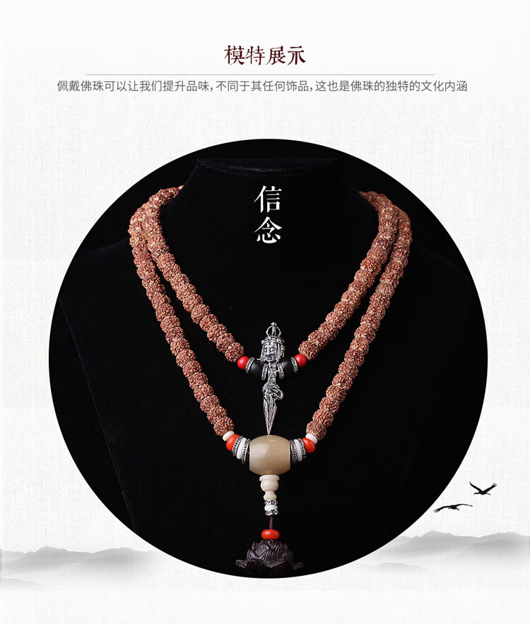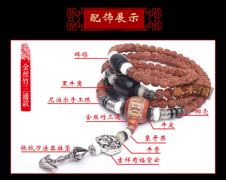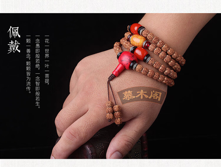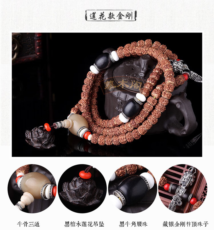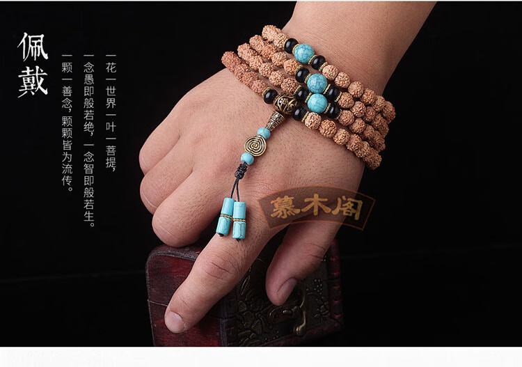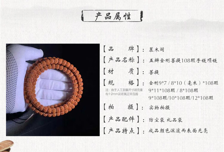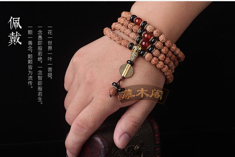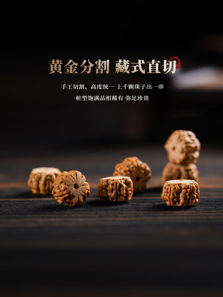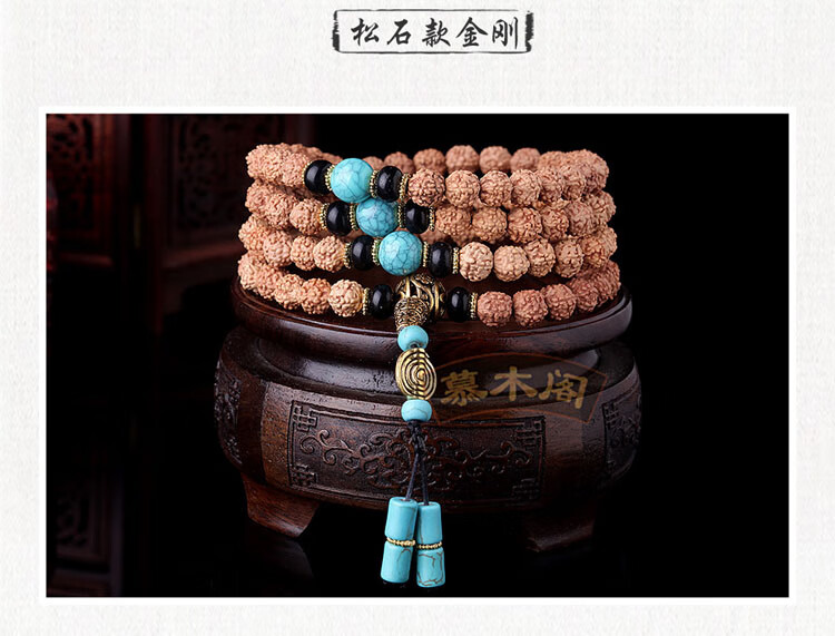 慕木阁 五瓣藏式盘龙纹小金刚菩提子佛珠手串108颗挂脖男女文玩手链 B2 【精工级】金丝竹款9*7毫米*108颗