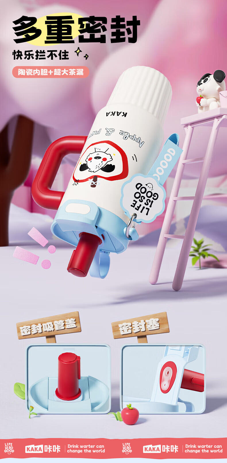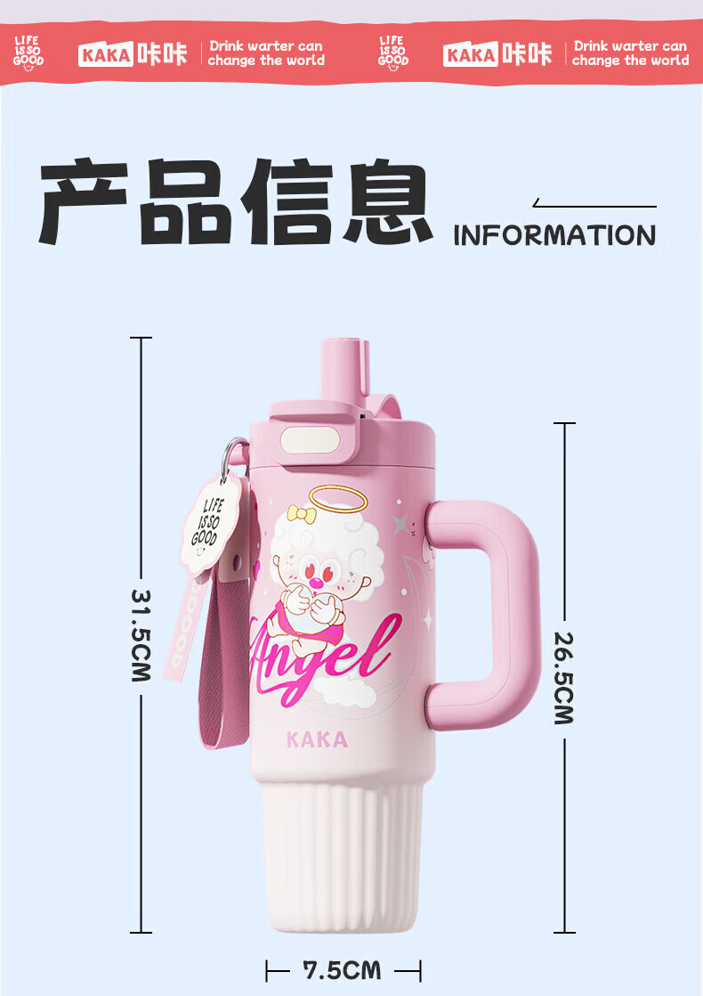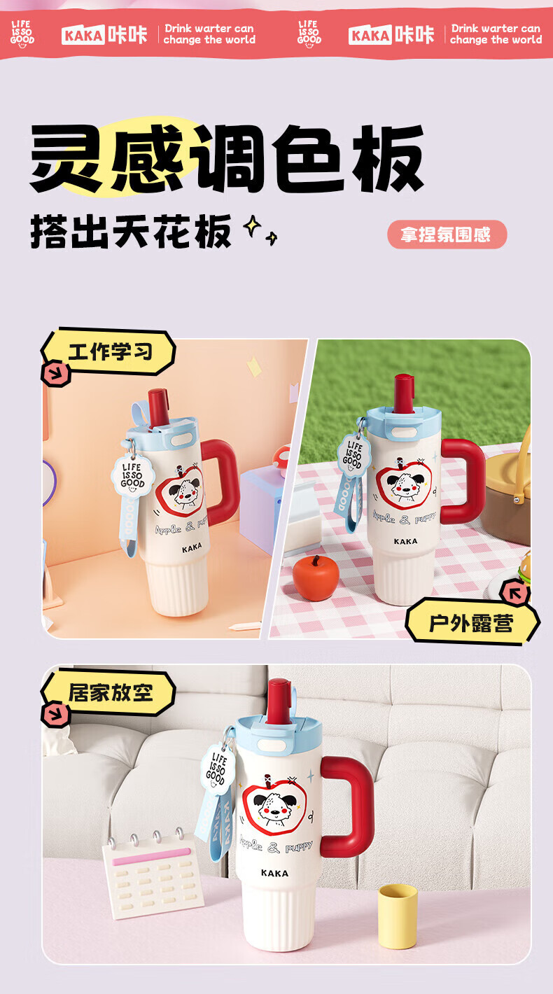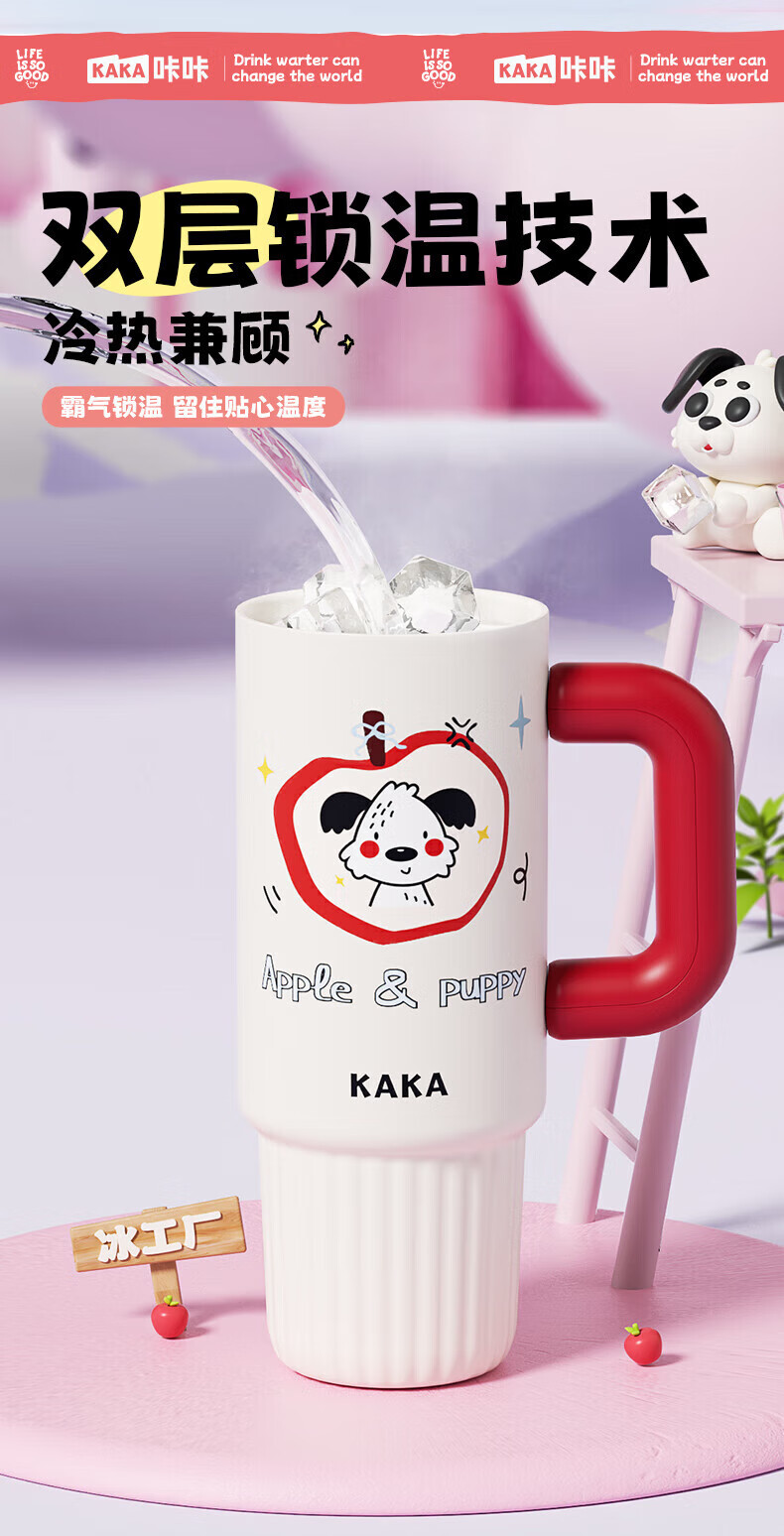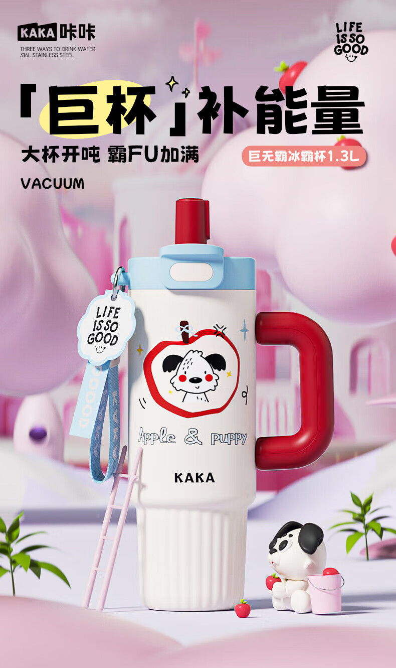 皇家洛克 ROYALLOCKE保温杯冰霸杯女士水杯大容量高颜值巨无霸吸管杯学生杯子 【抗菌316】快乐苹狗1300ML