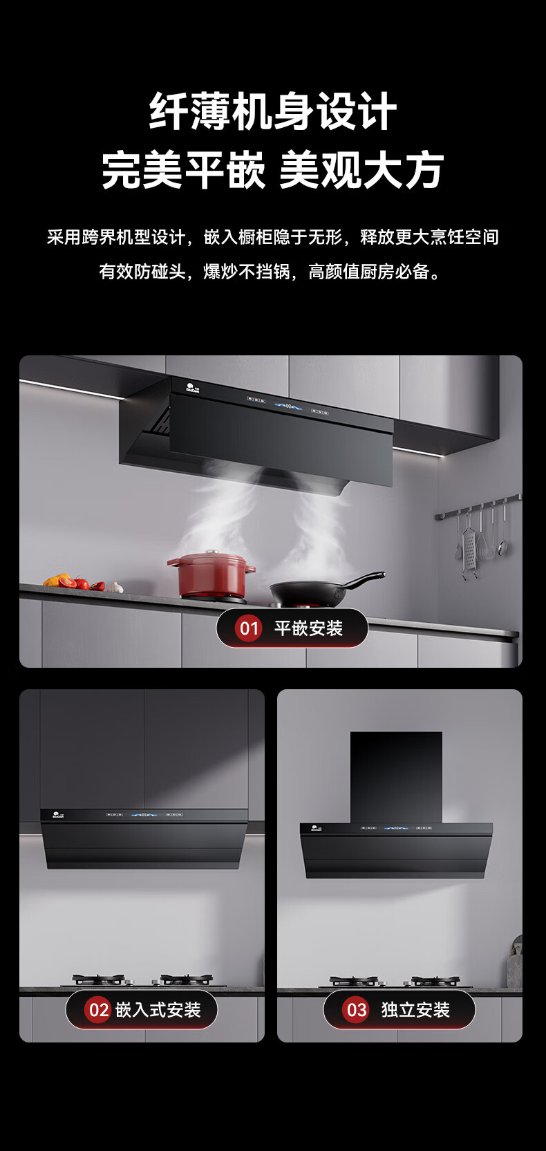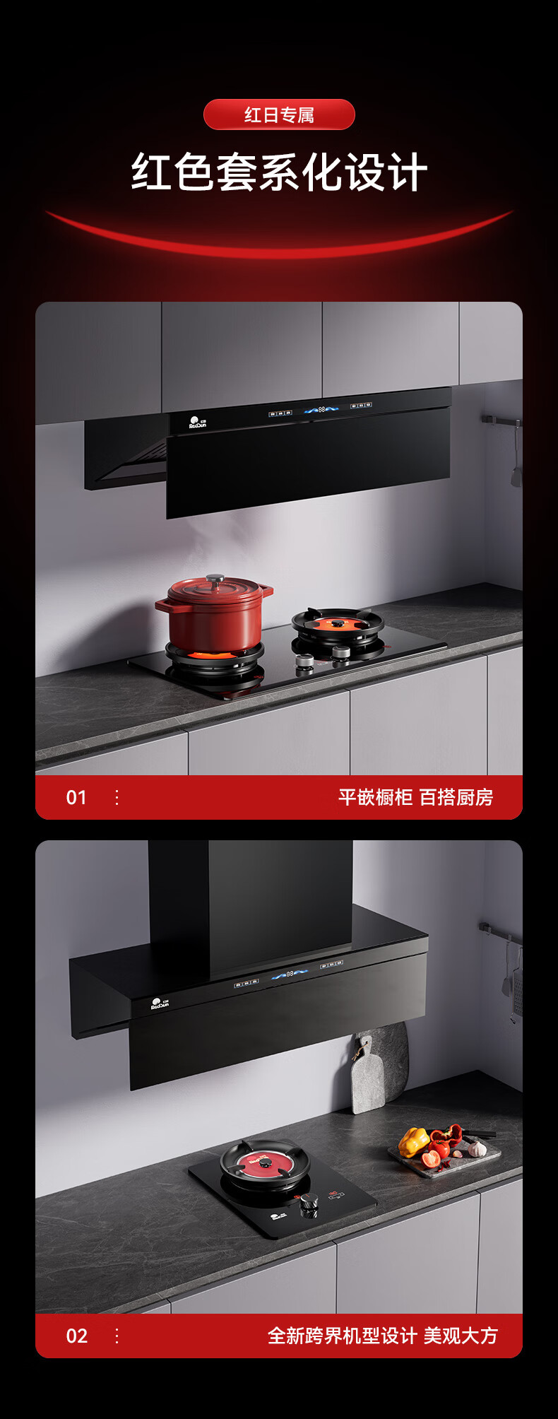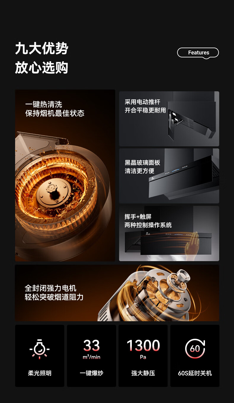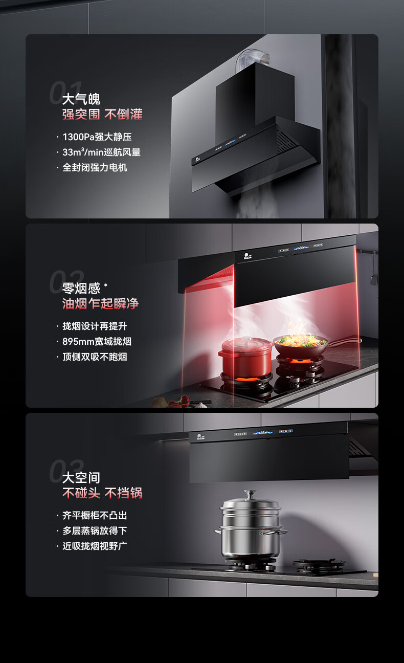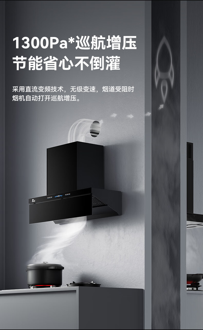 RedSun挥手触摸体感双控直流变频铜线电机33m³澎湃大吸力P6热除油清洗1300pa静压顶侧双吸抽油烟机 P6+70%高热效率免改孔定时聚能红外灶DX20 天然气