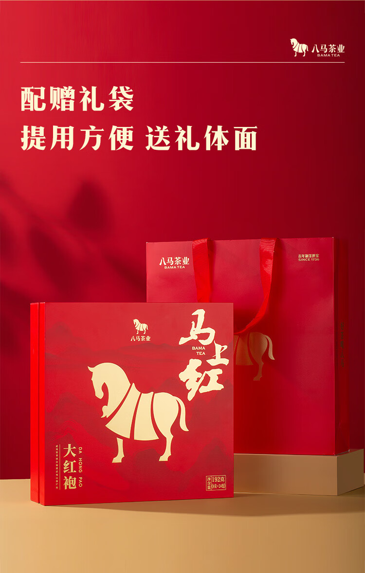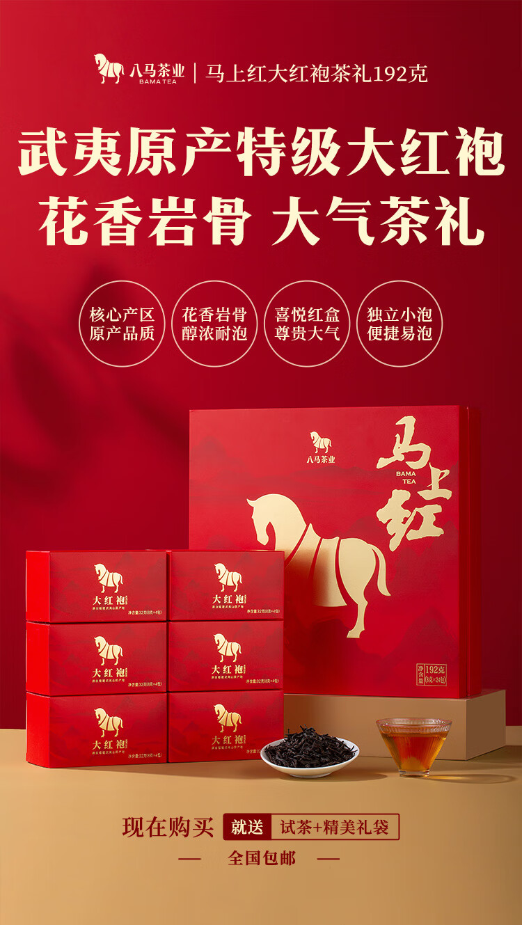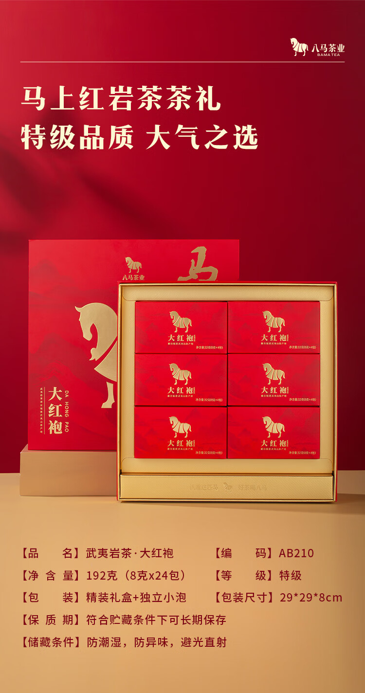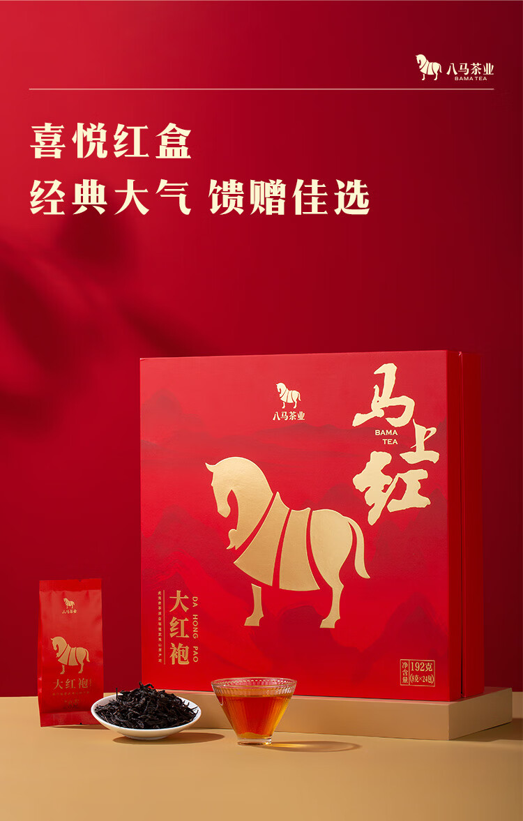 八马茶业 马上红360特级武夷岩茶大红袍乌龙茶礼盒192g茶叶送礼