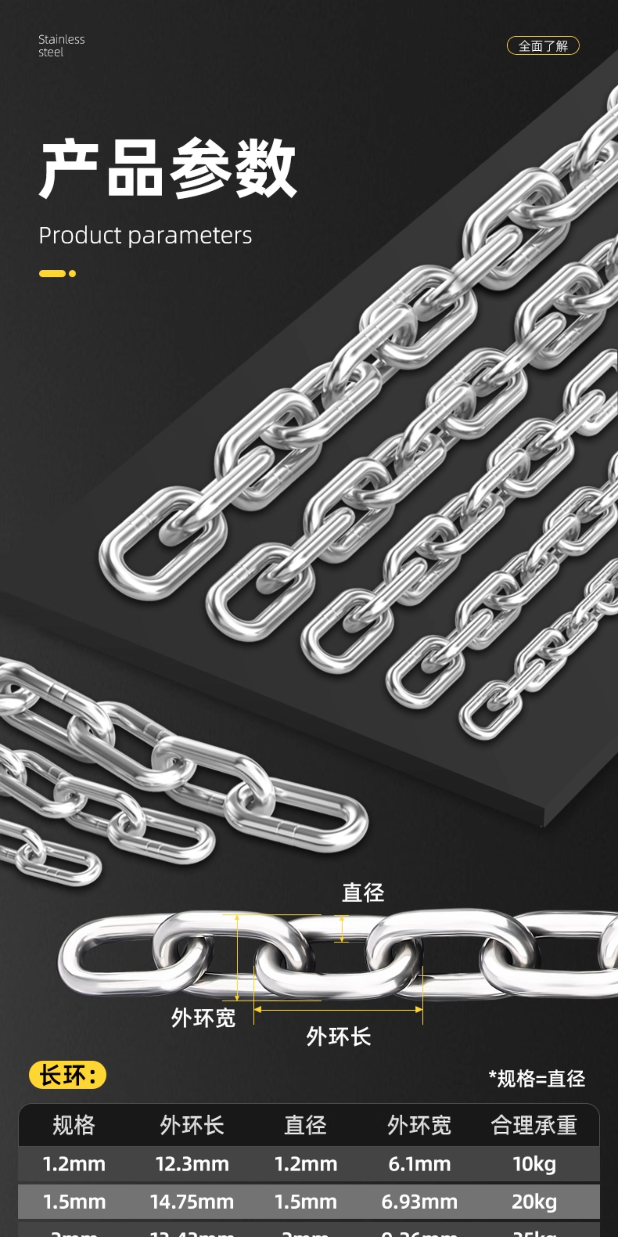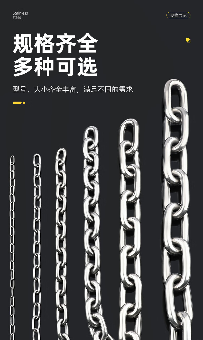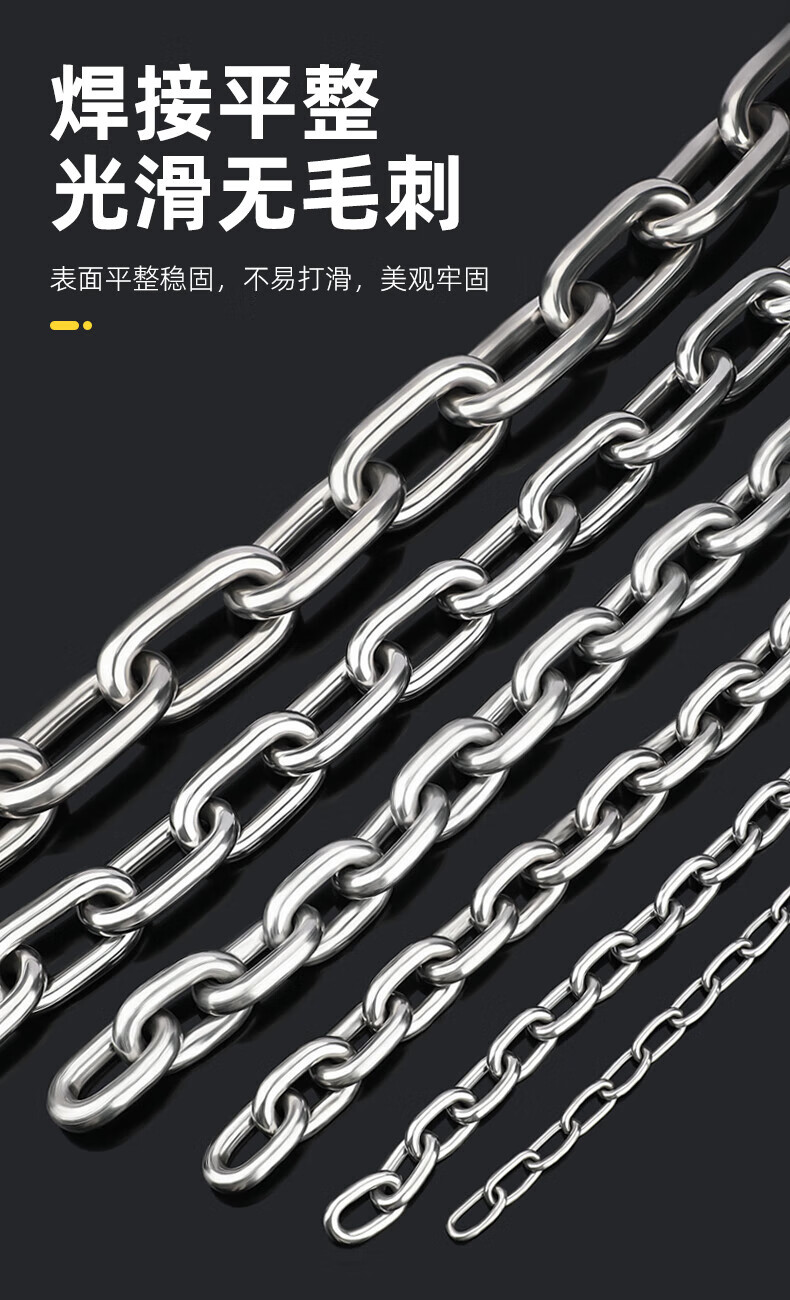 天卓五金304不锈钢链条无缝短环长条户外晾衣链加粗铁狗链子锁宠物起重链 短环8mm粗(1米价)(承重850公斤)