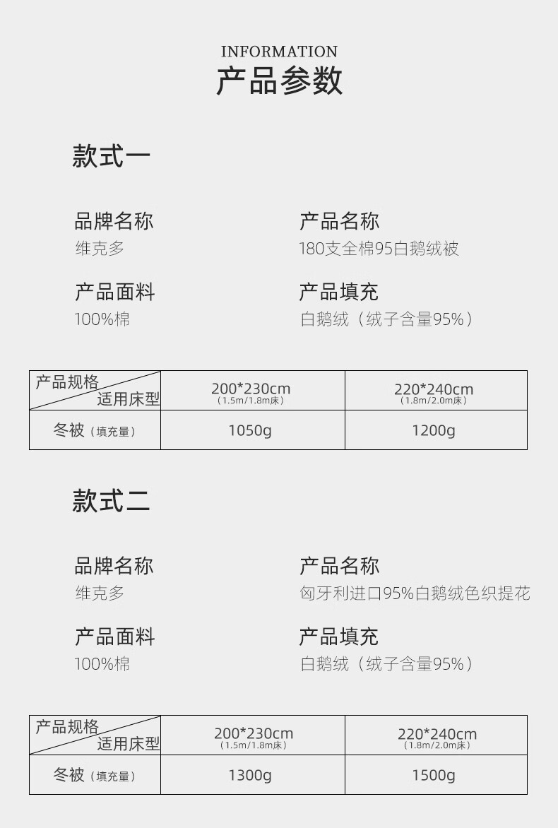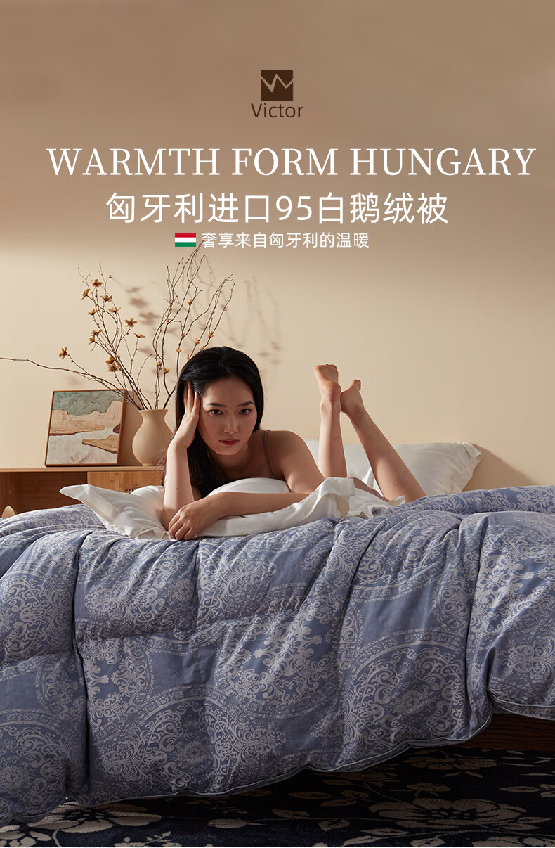 维克多(VCD)95白鹅绒被冬季保暖加厚羽绒被纯棉面料五星酒店被子被芯 匈牙利进口95%白鹅绒色织提花 200cm*230cm 冬被