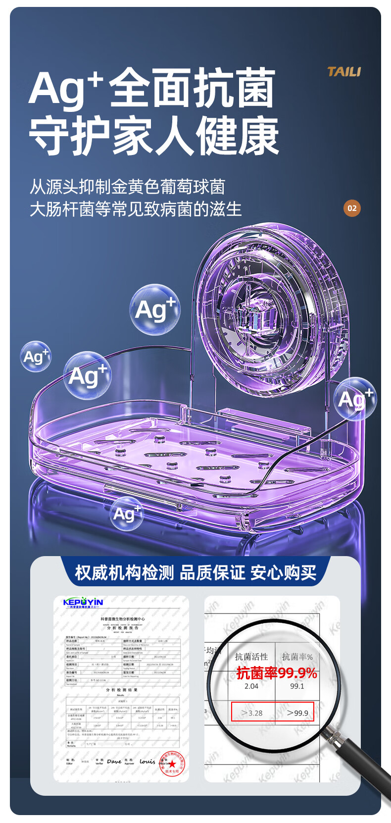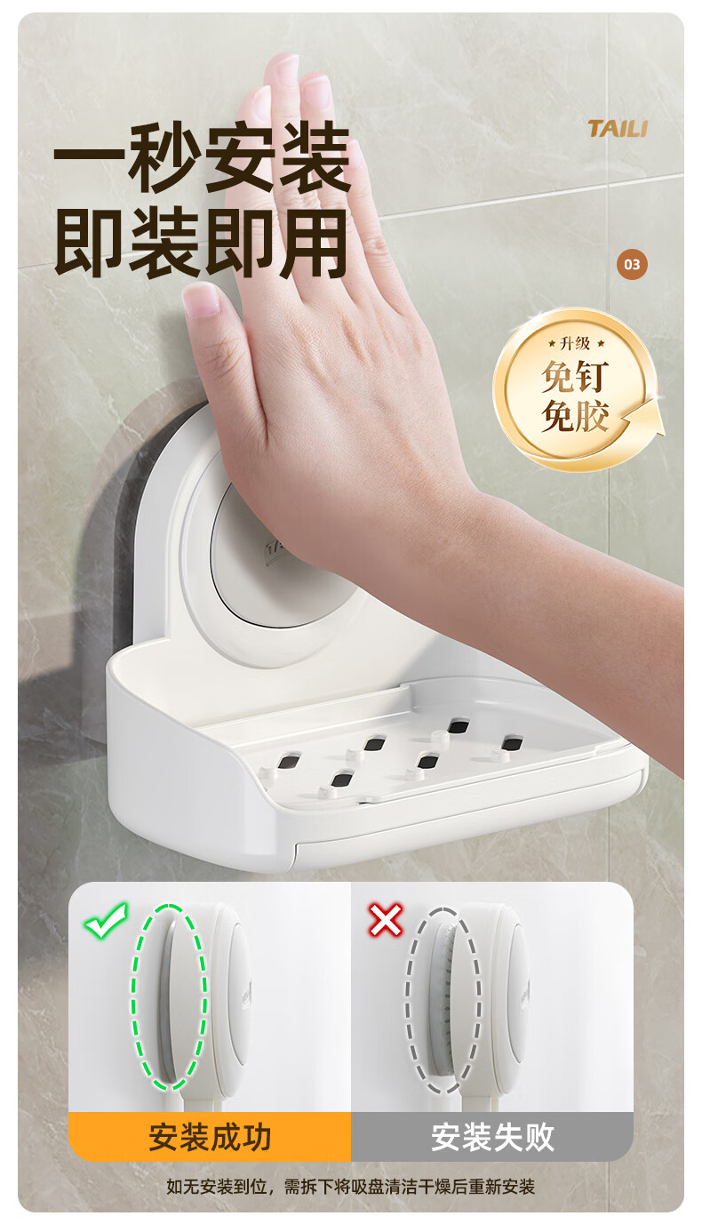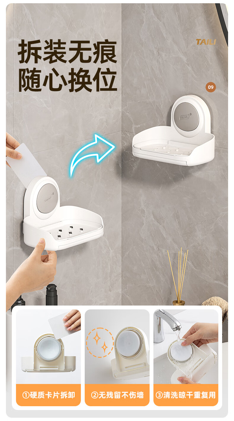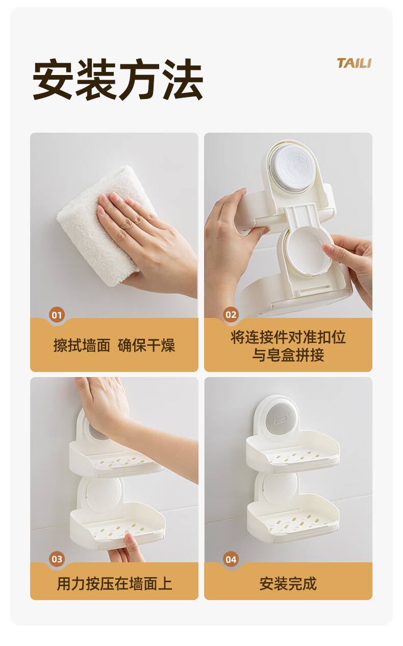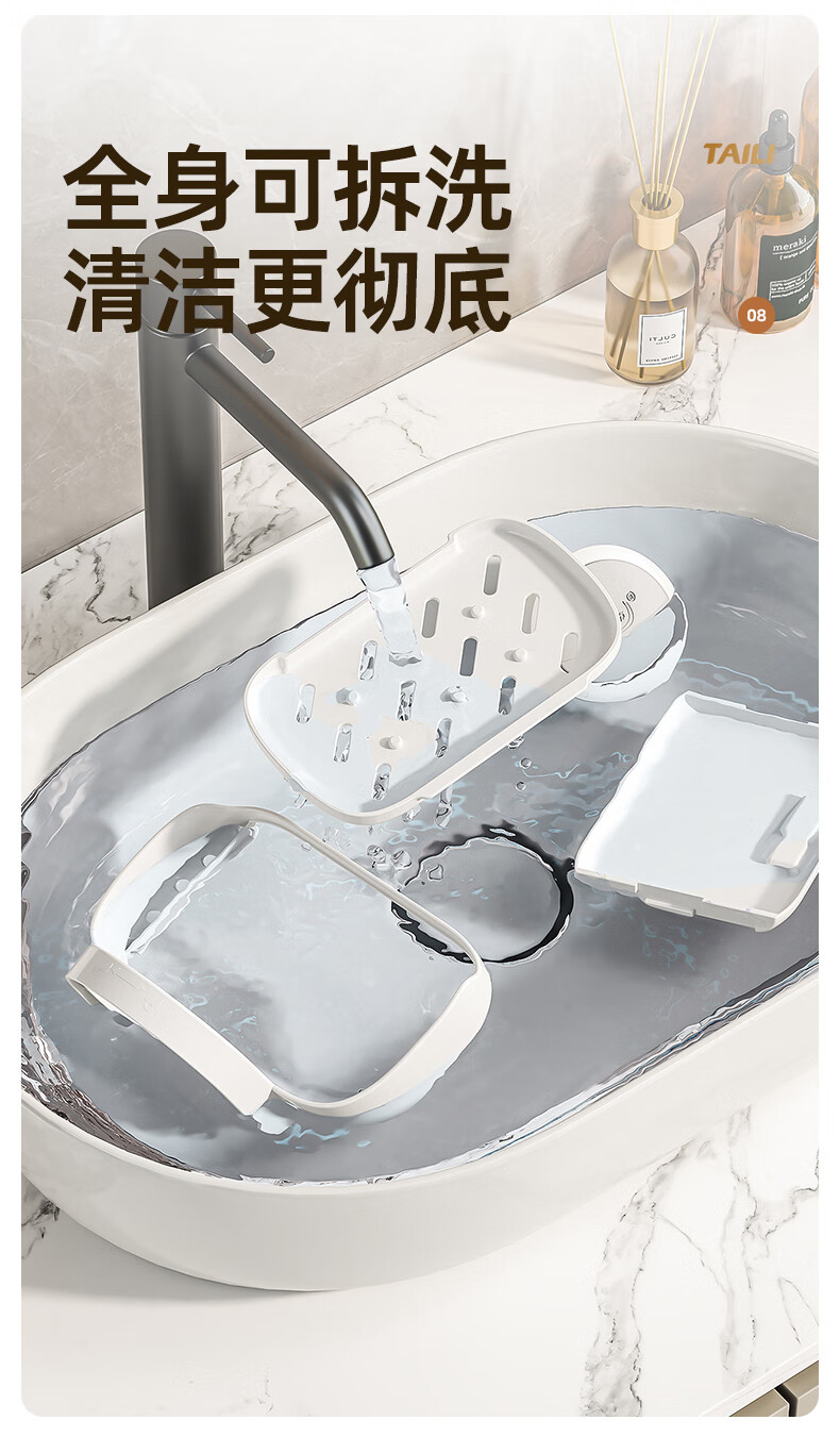 太力抗菌肥皂盒壁挂香皂盒二合一置物架沥水便携式浴室免打孔吸盘盒 灰白色双层【1个装】