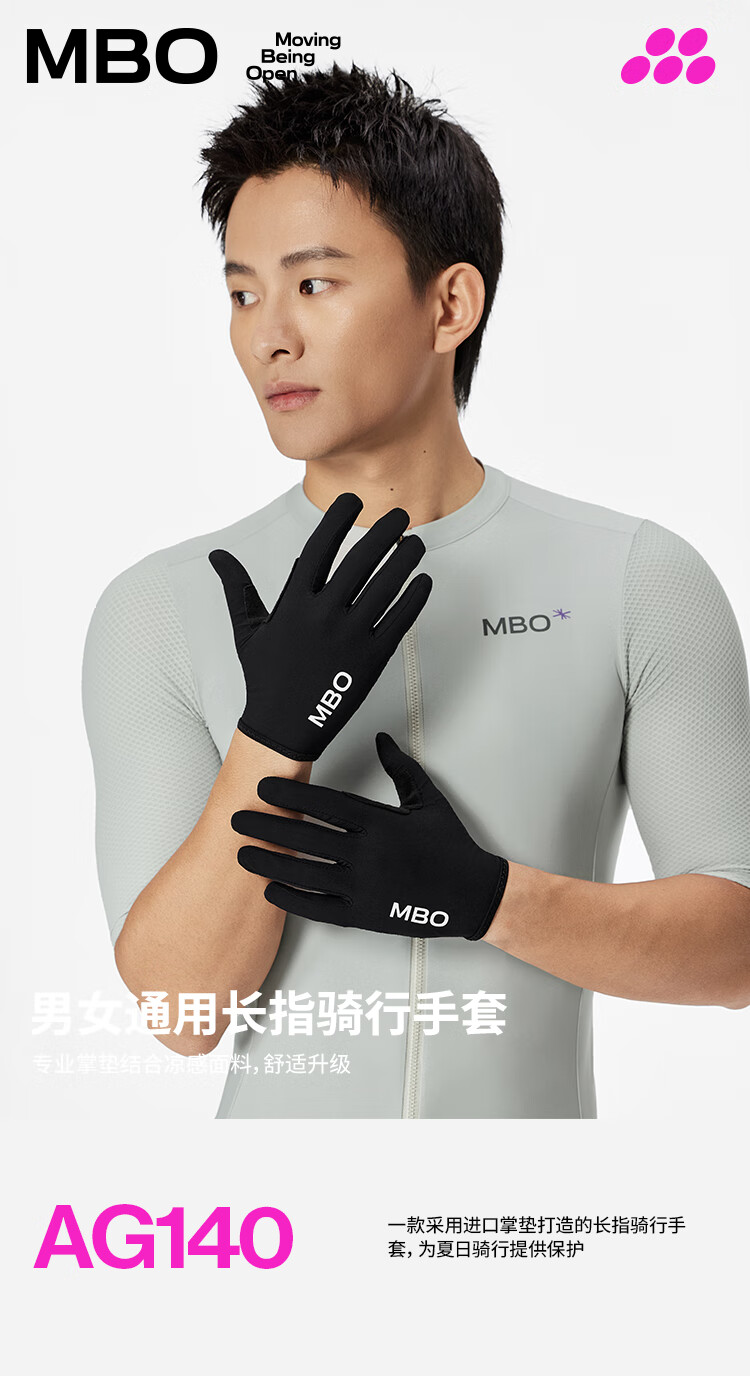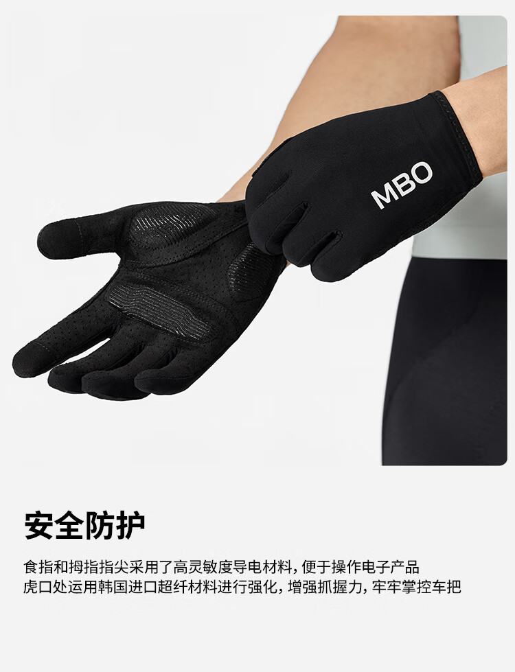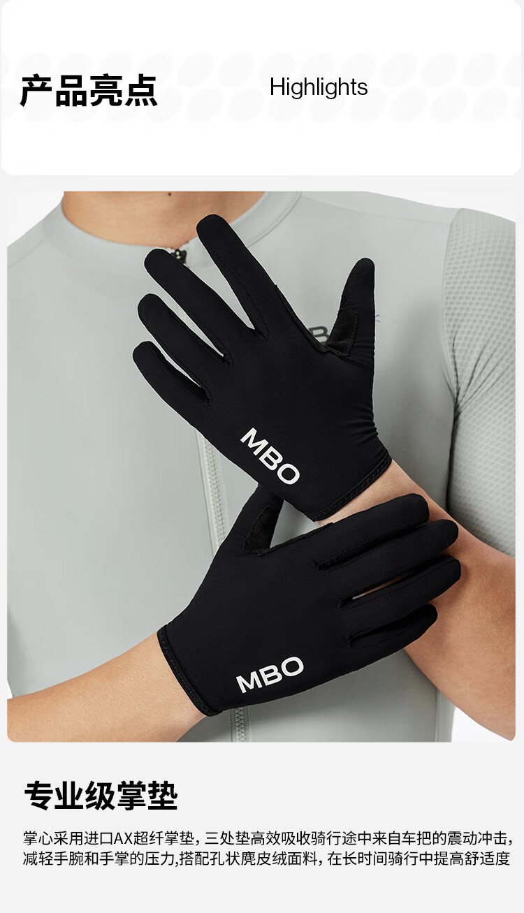 MBO春秋男女款触屏长指骑行手套 专业级掌垫 AG140 黑色 M