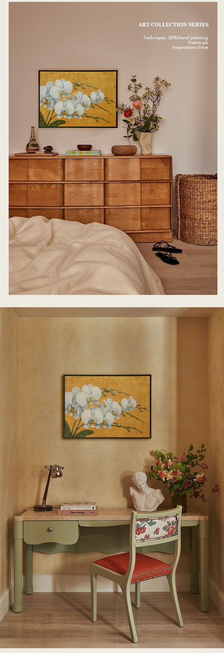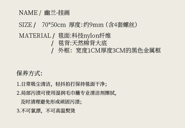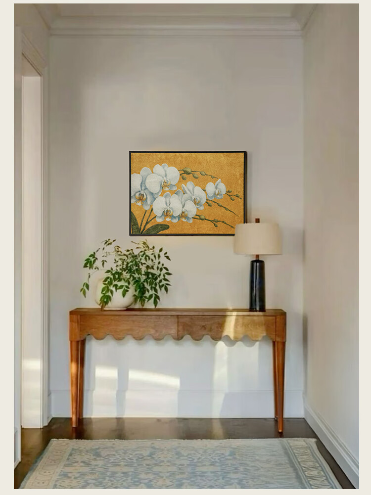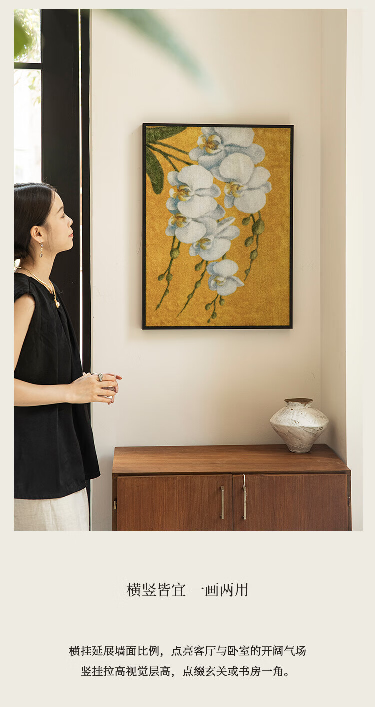 蜡笔派(Nabis)幽兰挂毯画客厅玄关装饰挂画新中式氛围感边毯画墙壁画 11.7发货 幽兰-挂画 (尺寸不含画框宽度1cm) 70*50cm