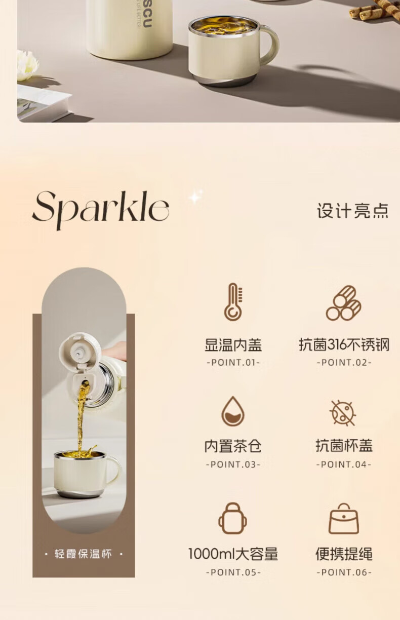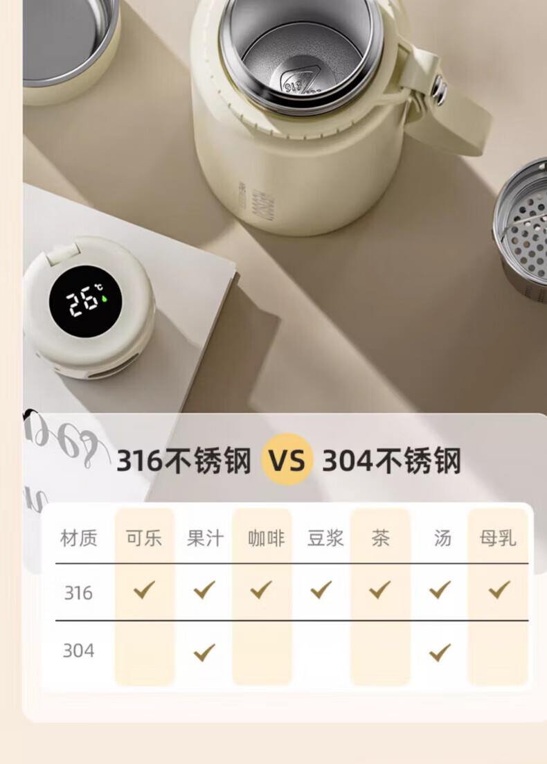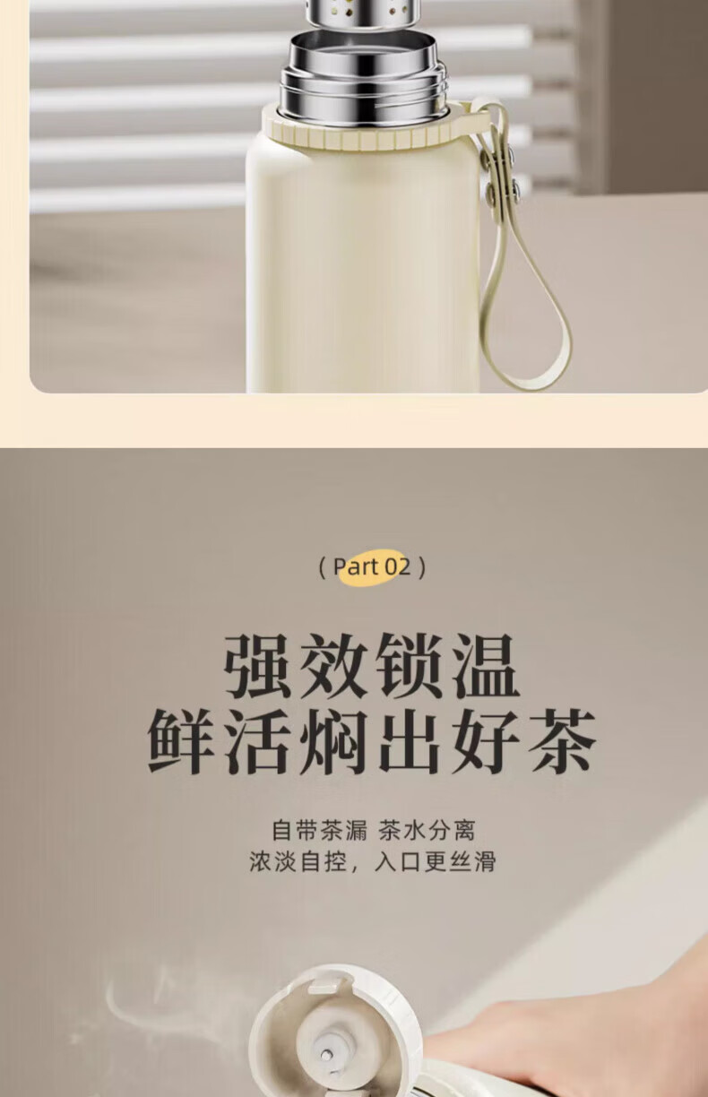 AILUKI日本保温杯大容量女316保温壶茶水分离泡茶杯焖茶壶2025新款水杯 显温款-粉色800ML【316/内置茶仓】
