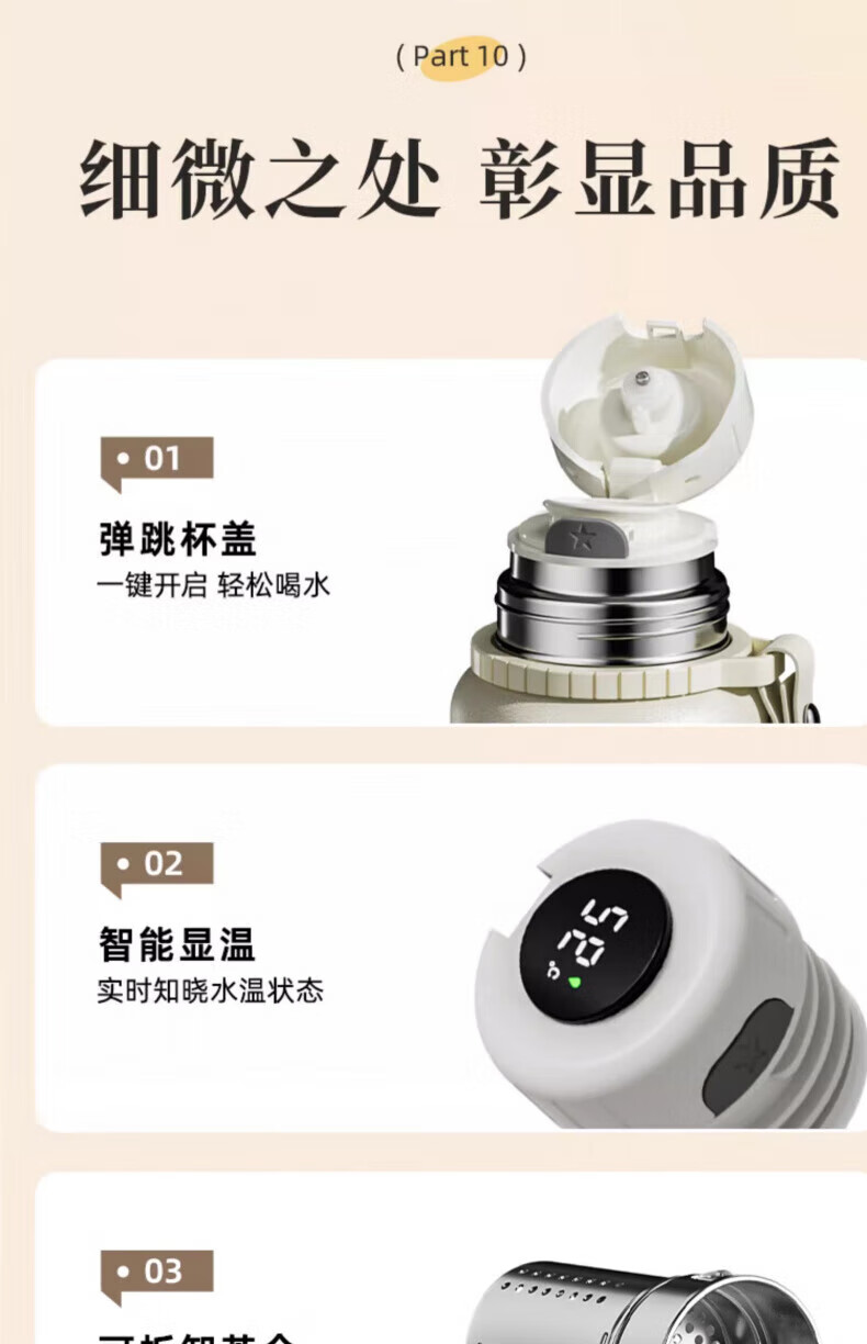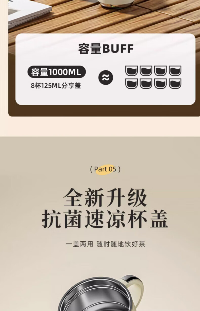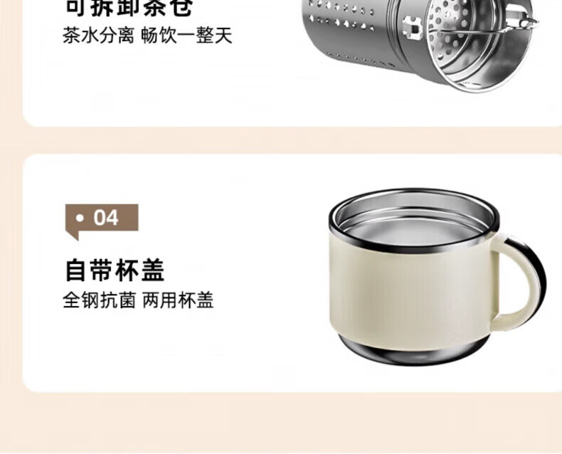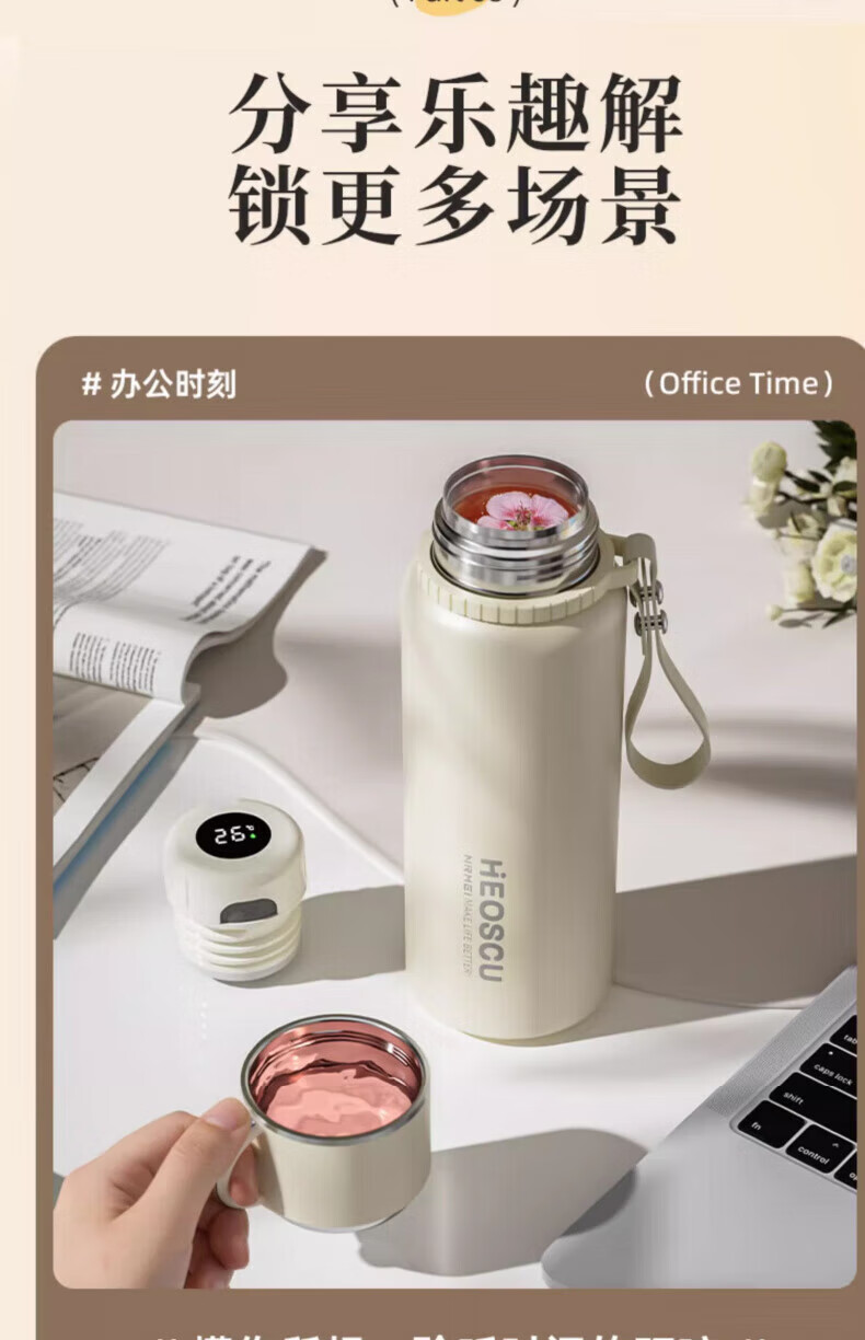 AILUKI日本保温杯大容量女316保温壶茶水分离泡茶杯焖茶壶2025新款水杯 显温款-粉色800ML【316/内置茶仓】