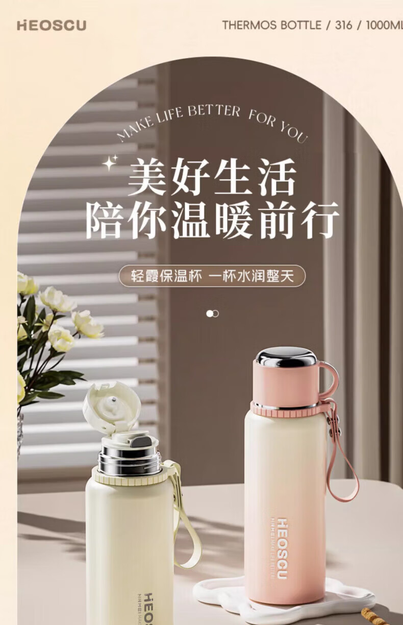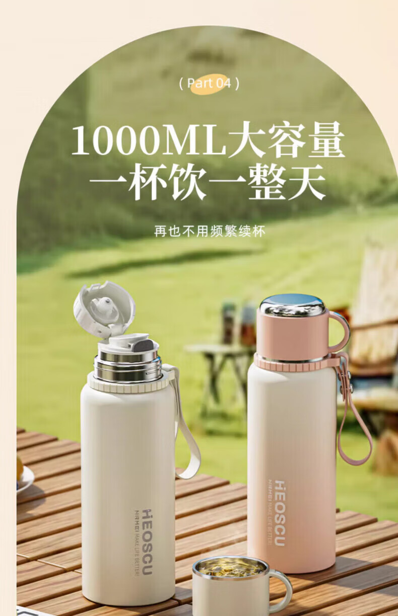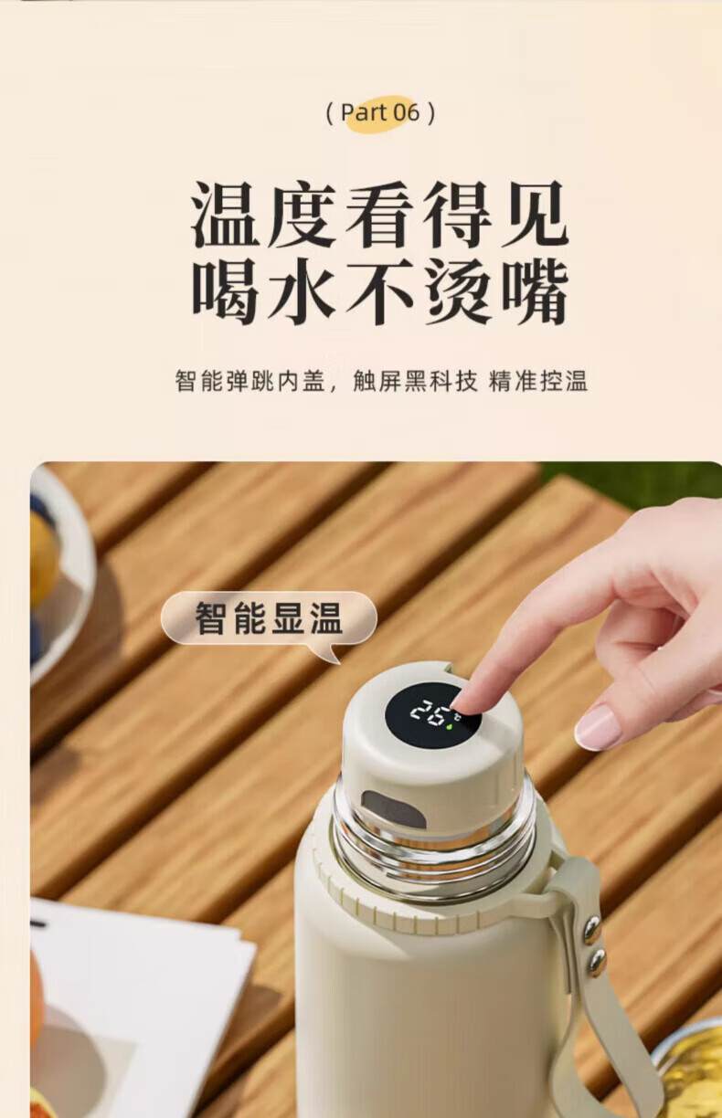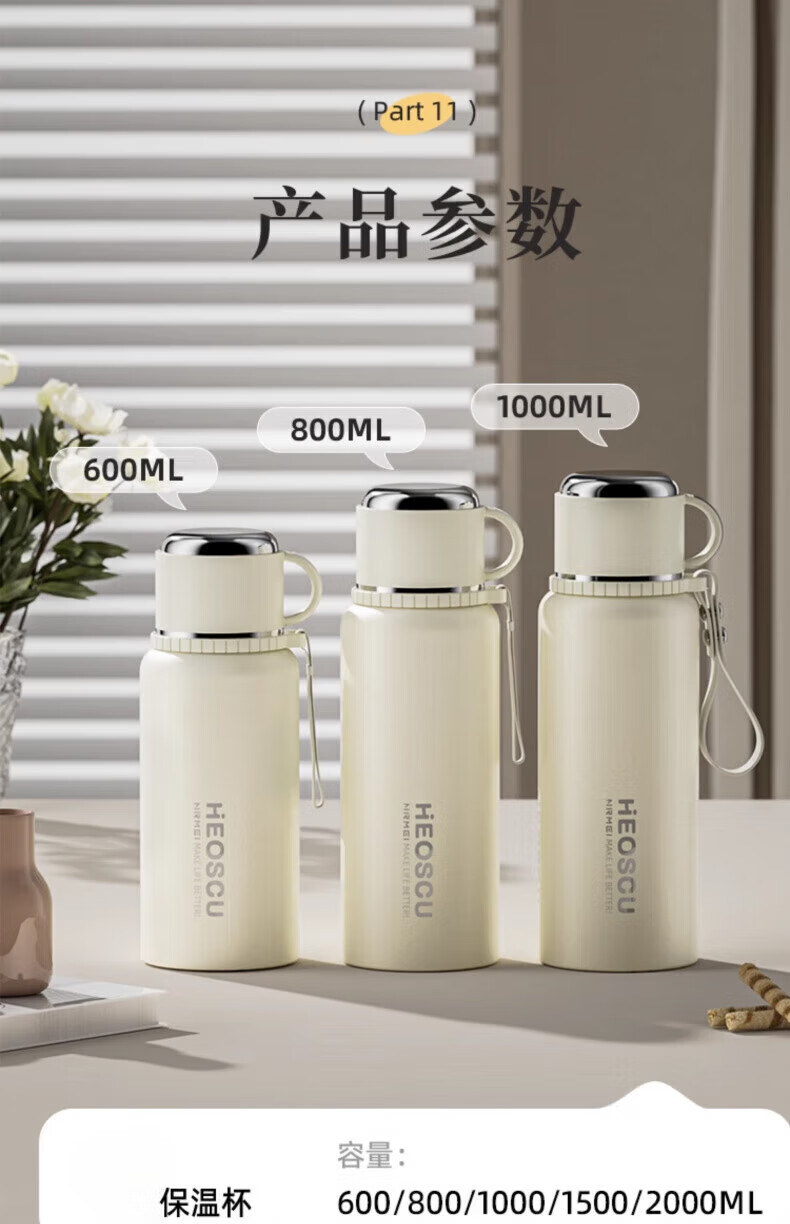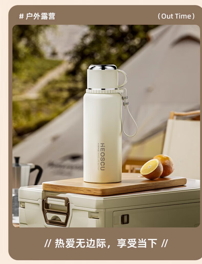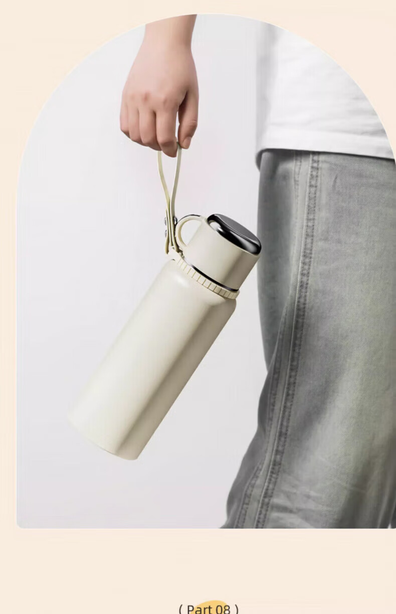 AILUKI日本72小时长效保温杯大容量316不锈钢水杯2025年新款车载保温杯 带手柄-本色(赠送杯套) 600ml