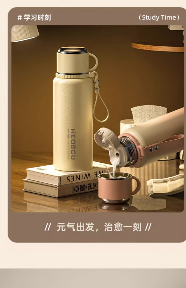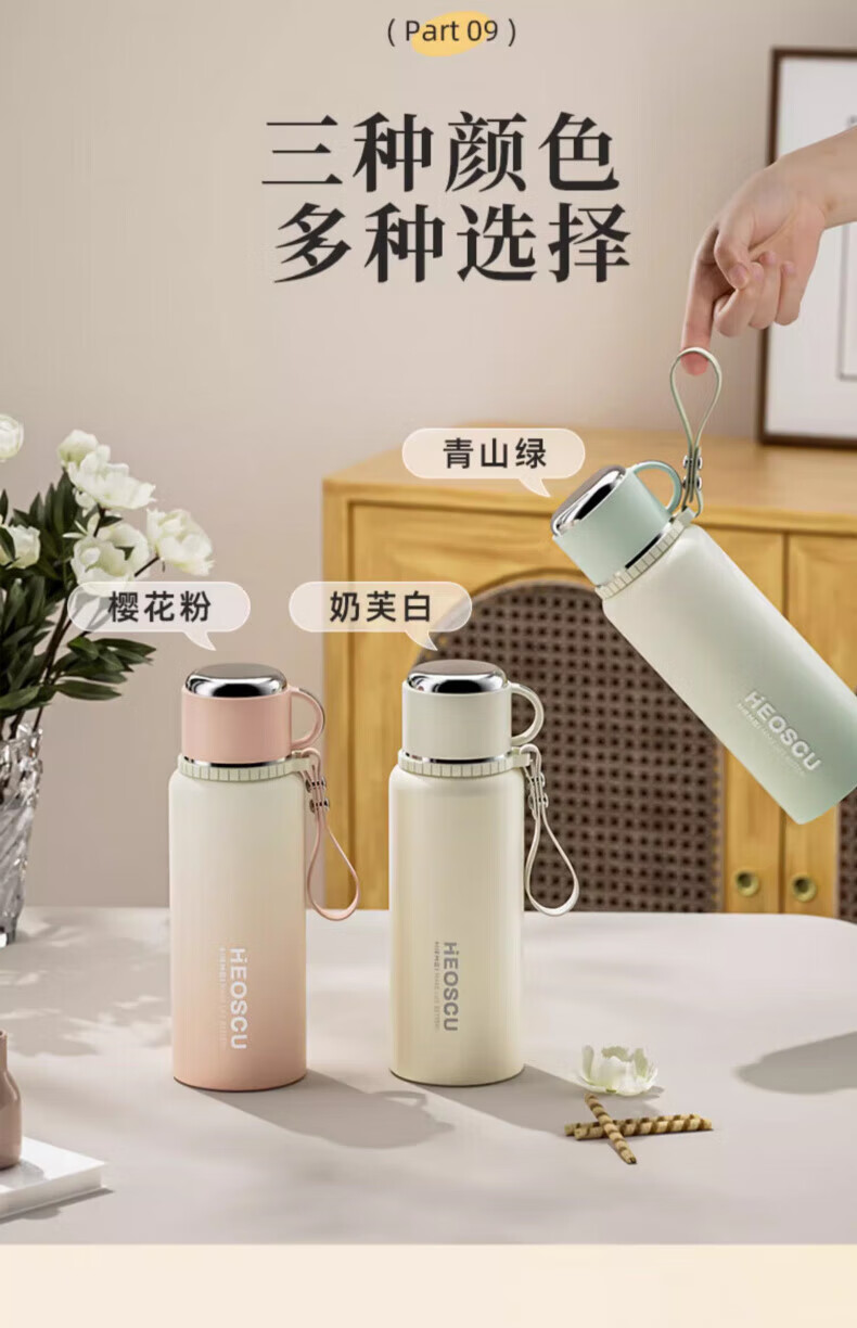 DEATKN德国青少年保温杯儿童上学男孩初高中生2025新款大容量水杯 极光绿-德国316_保温48H_ 680ml