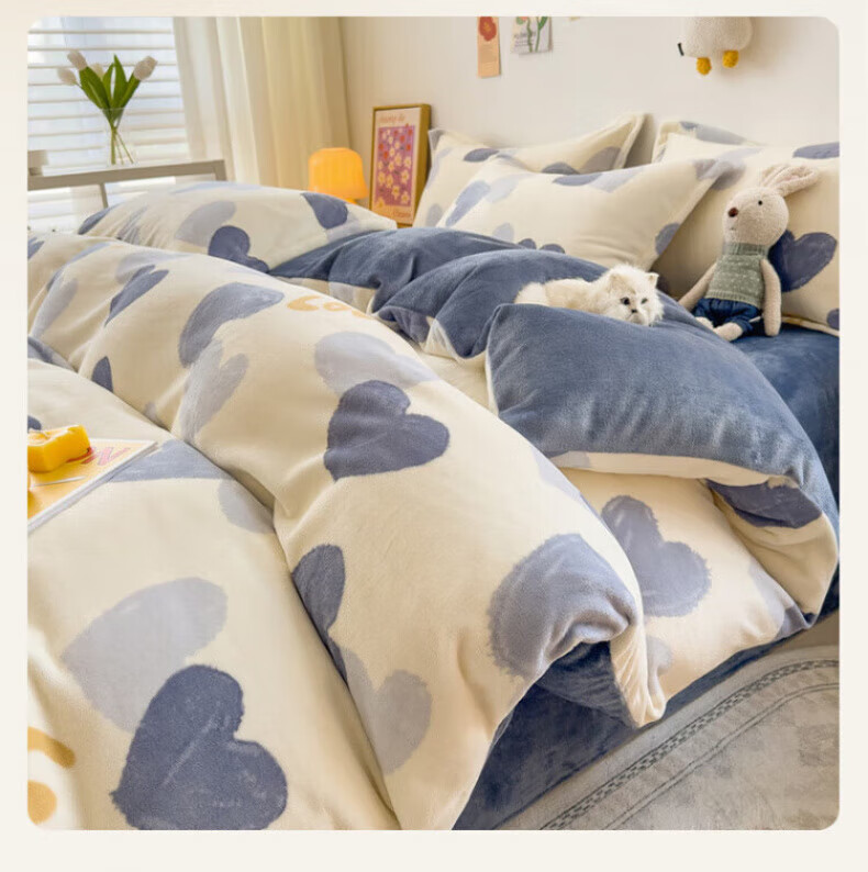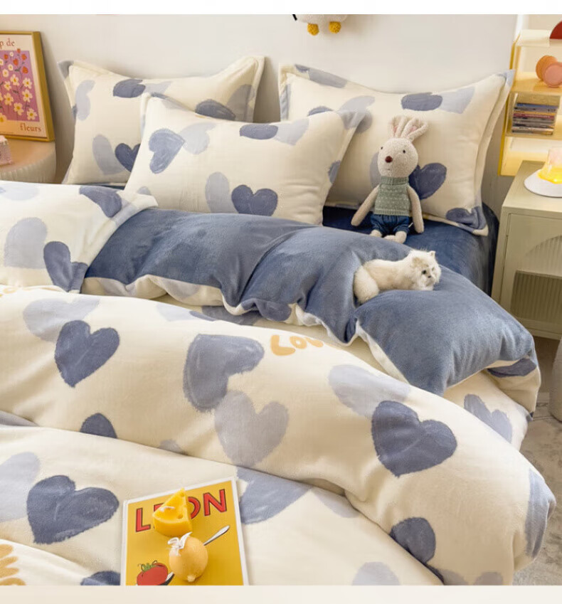 猫人牛奶绒床上四件套2025秋冬款珊瑚绒床单被套罩简约床品三件套 郁金香-奶白粉【亲肤双面暖绒】 床单款 1.8m床【四件套】适200x230cm被芯
