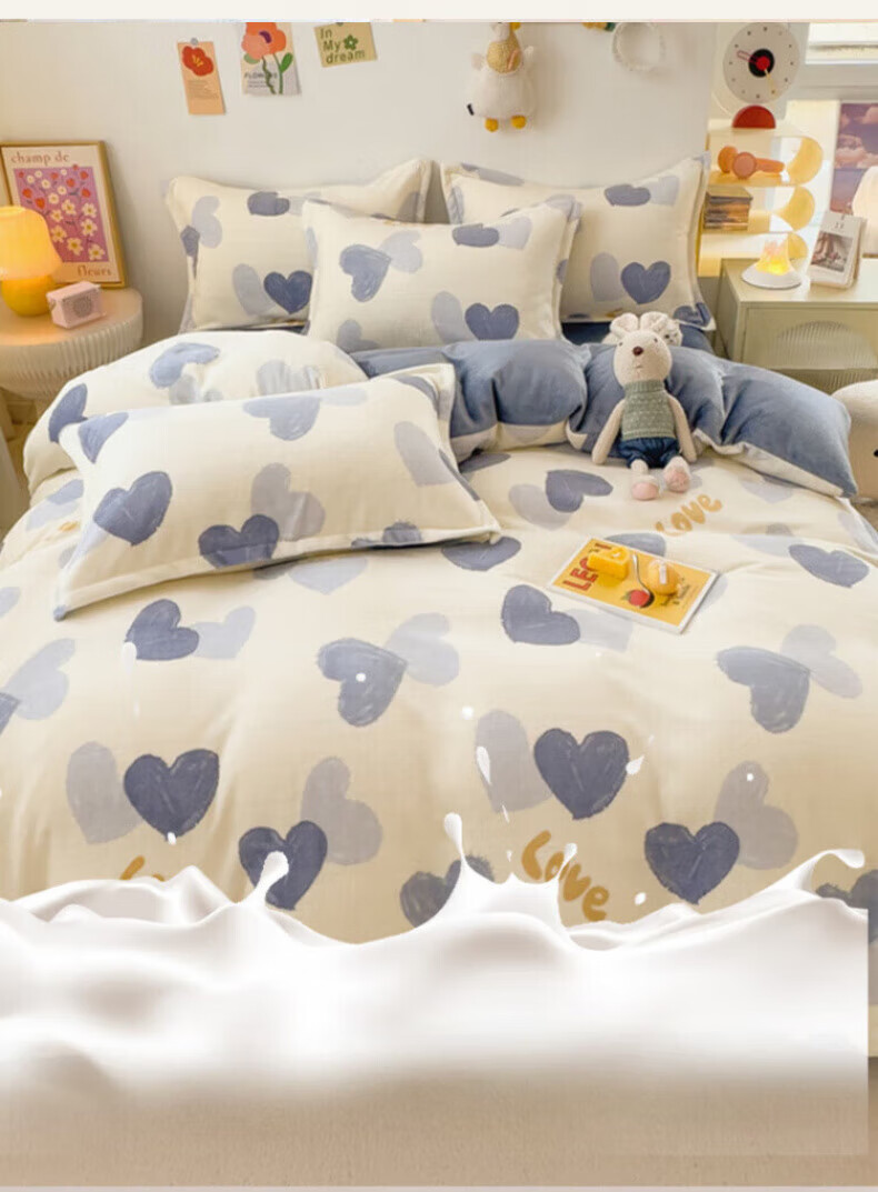 苏萱简约ab面纯棉牛奶绒床上四件套珊瑚绒床单加绒全棉被套三件套床品 波尔卡圆点-咖 2.0m 床单款 四件套-被套220x240cm