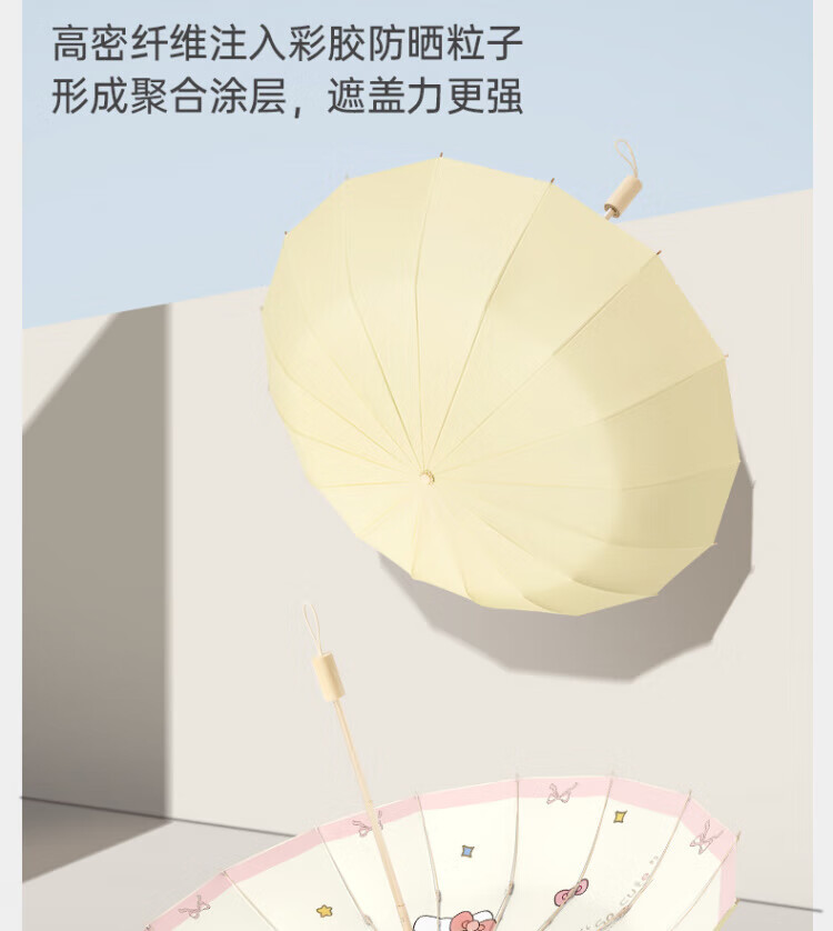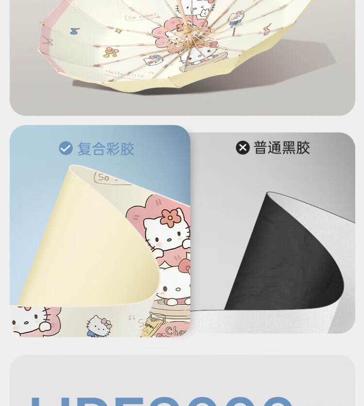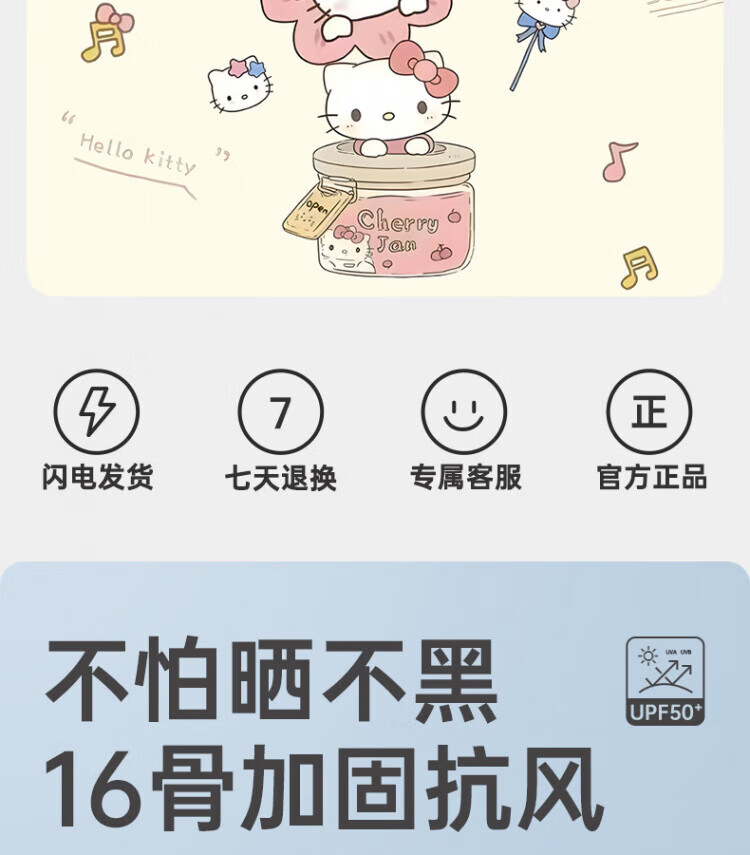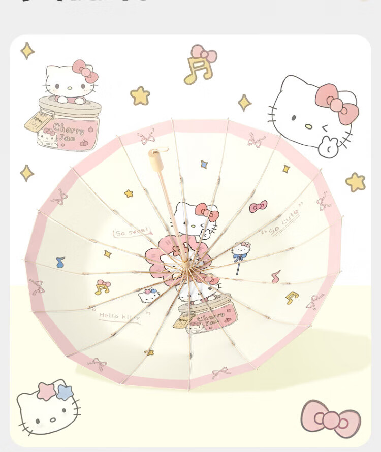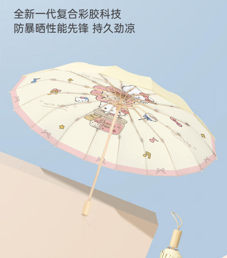 DEATKN日本高端三丽鸥可爱凯蒂猫16骨彩胶防晒伞遮阳伞折叠卡通雨伞大号 果酱星人【金架彩胶防晒】手动 16骨