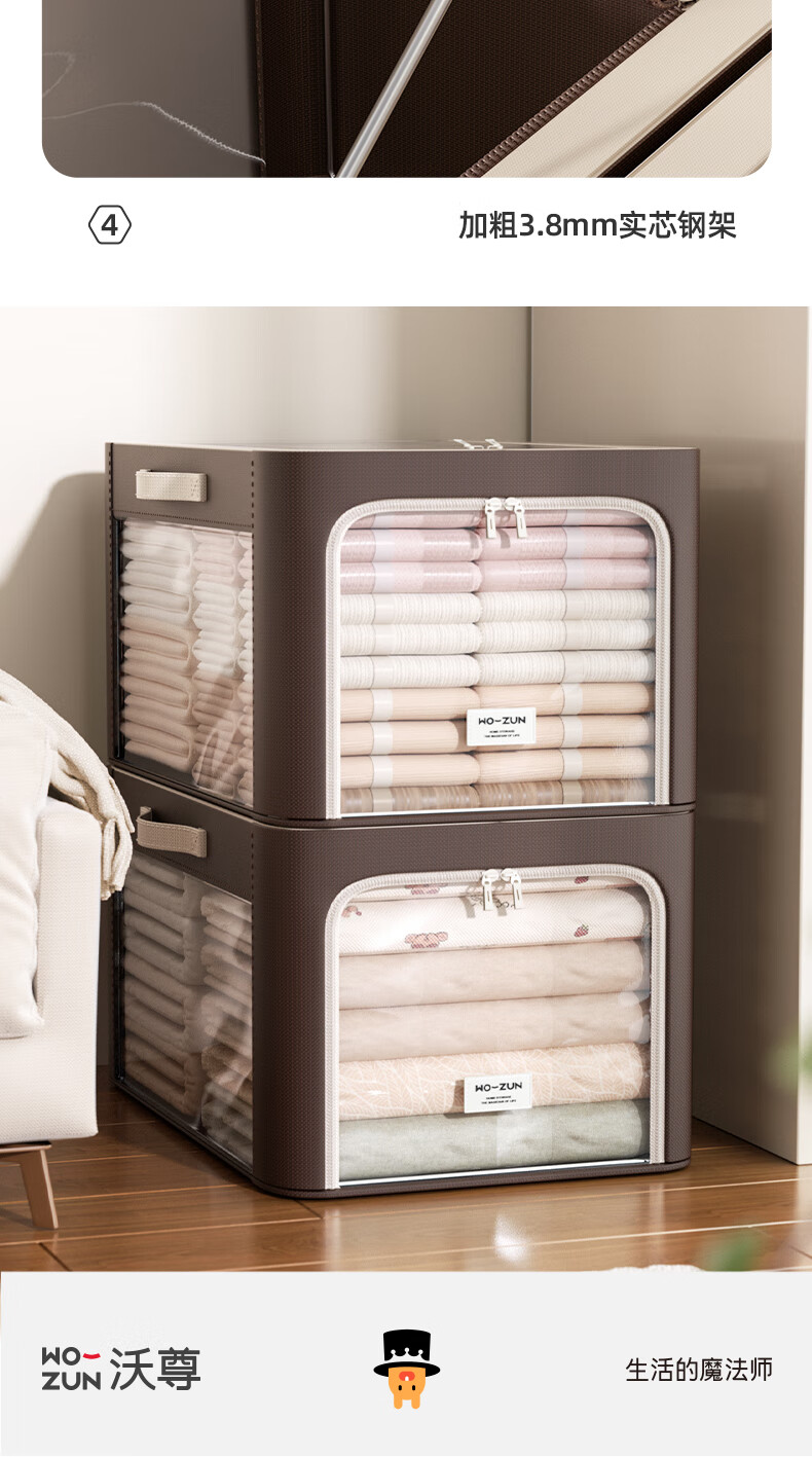 纳份爱布艺收纳箱大容量家用被子衣物打包袋防水防潮牛津布整理神器搬家 粉樱桃-66L【3个装-单视窗】双开门丨加厚加粗 【加粗钢架固定/加厚牛津布】