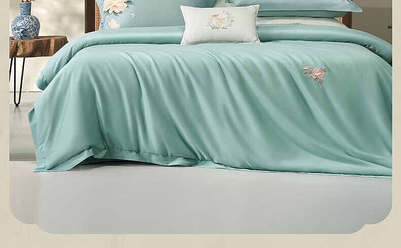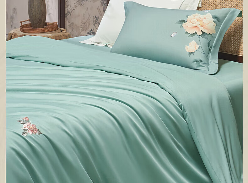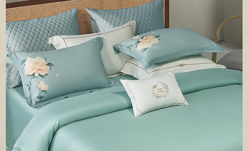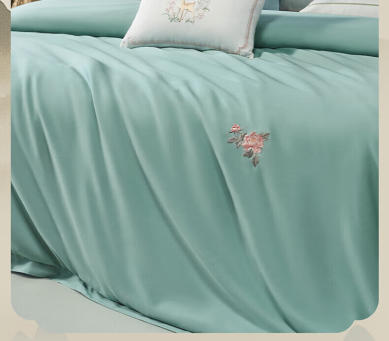 百丽丝四件套60支长绒棉四件套纯棉床上四件套2025新款套件 60支长绒棉绣花套件(嫩绿) 床单款 (被套220*240cm)