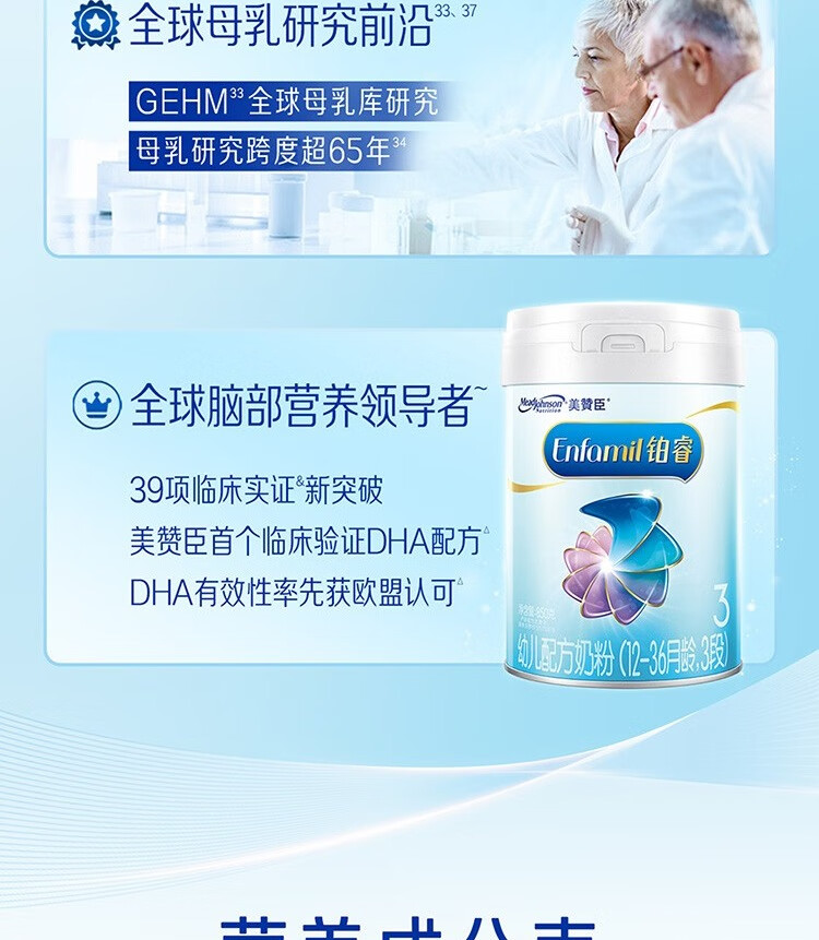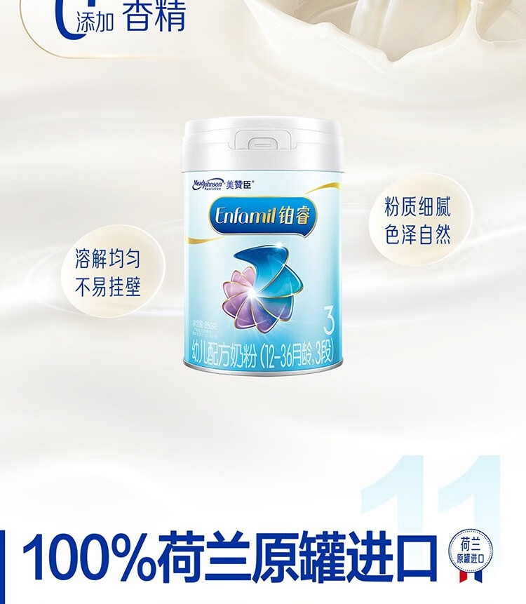 美赞臣铂睿幼儿配方奶粉(12-36月龄.3段)850g*6+400g*3