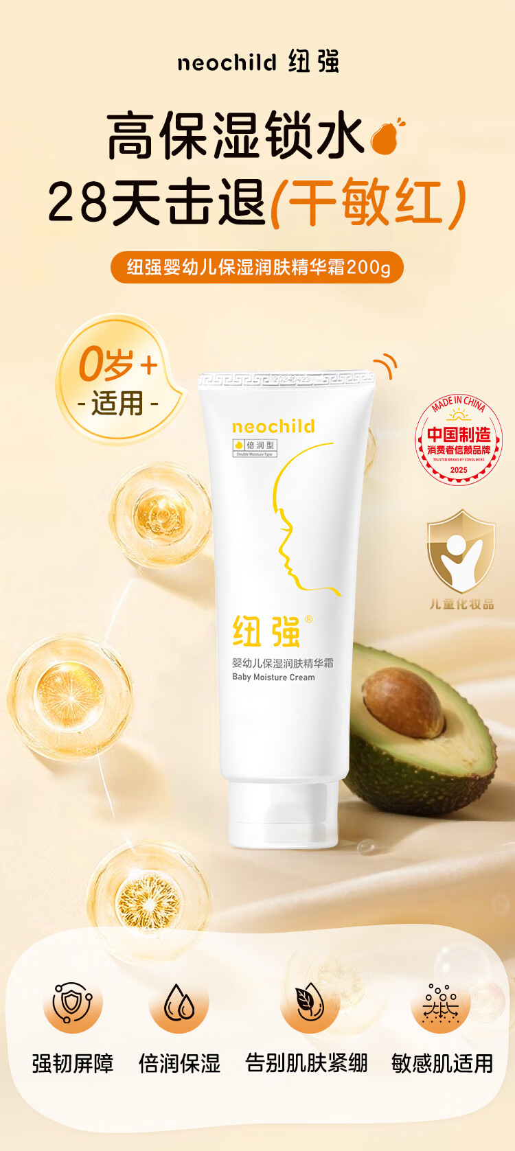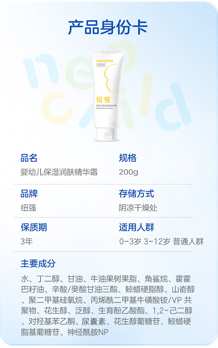 纽强婴儿面霜温和保湿补水润肤身体乳舒缓肌肤 婴幼儿倍润精华霜 精华霜200g+精华乳200g