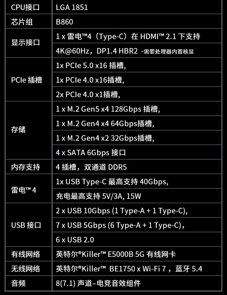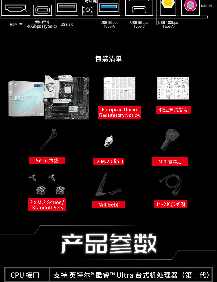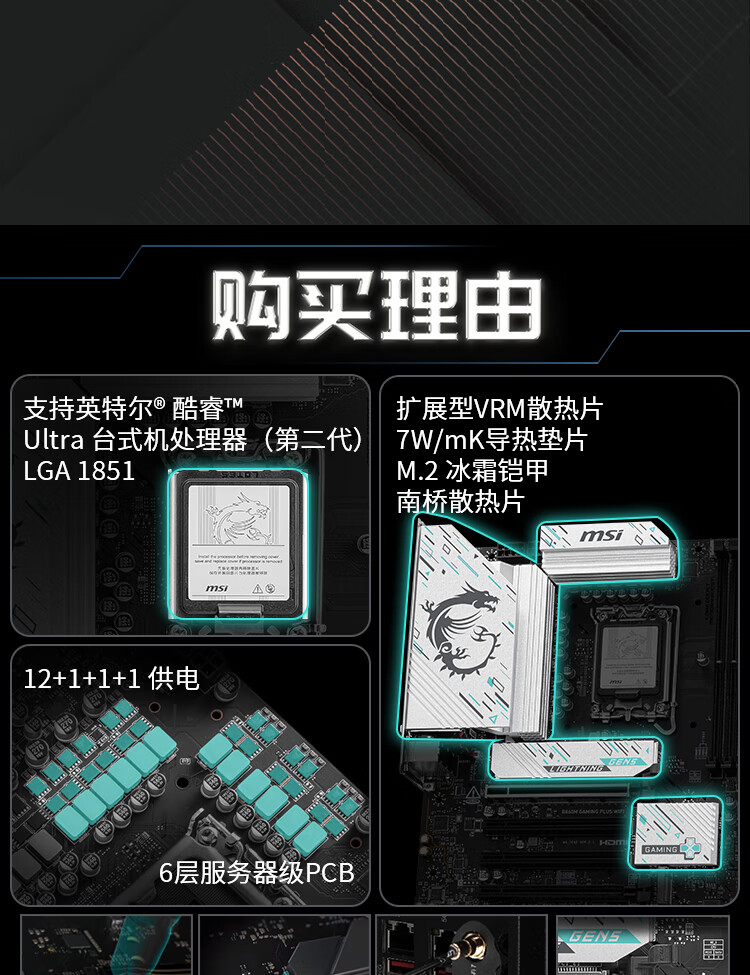 微星(MSI)B860M GAMING PLUS WIFI7 5G网口主板 支持 CPU 265K/245K/230/225 (Intel B860/LGA 1851)