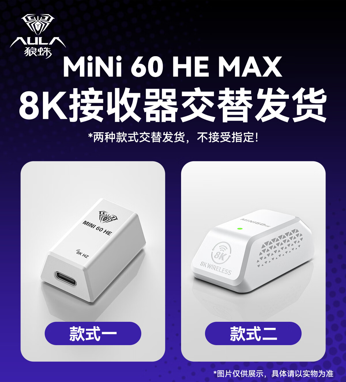 狼蛛(AULA)MINI 60HE磁轴键盘无线三模 RT电竞游戏客制化机械有线连接网页驱动 无畏契约 8K回报率可调死区 MINI 60HE PRO粉白渐变RGB【烟云磁轴
