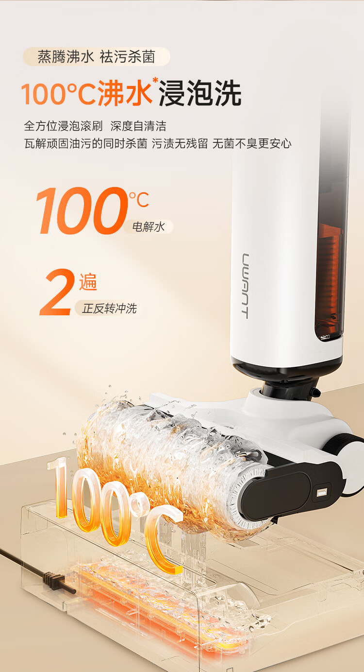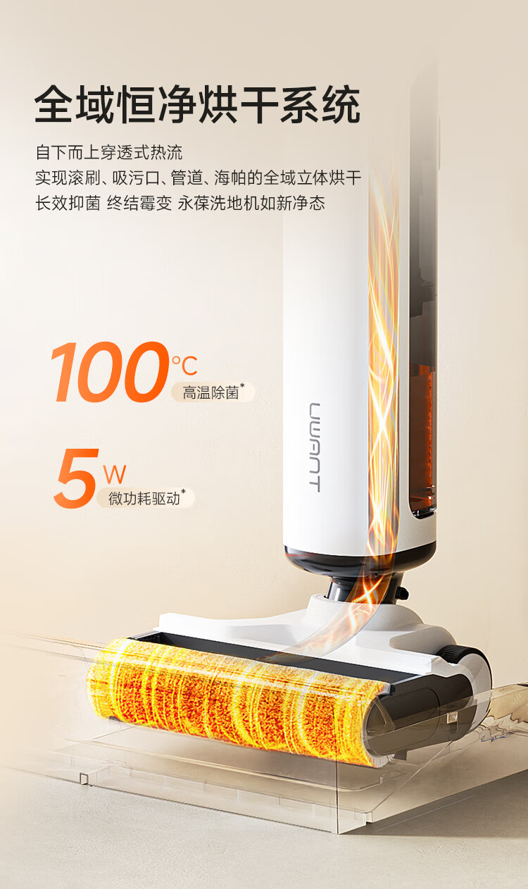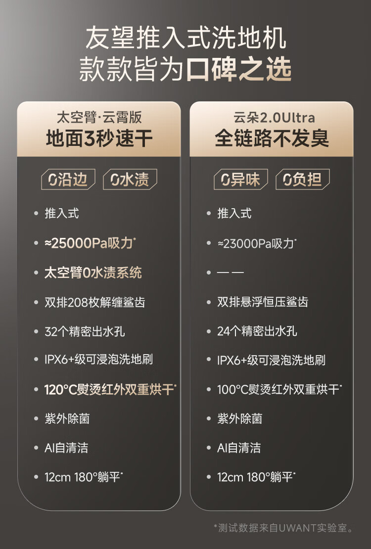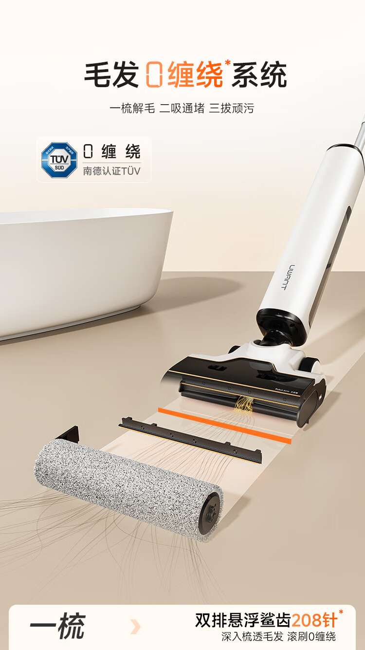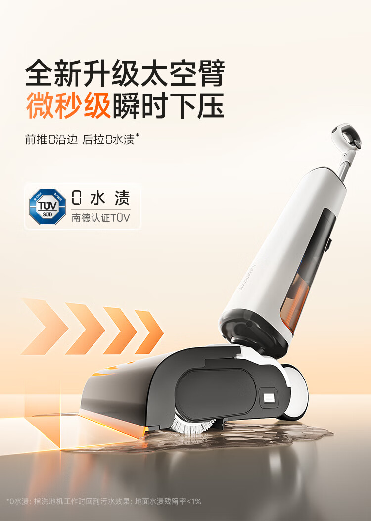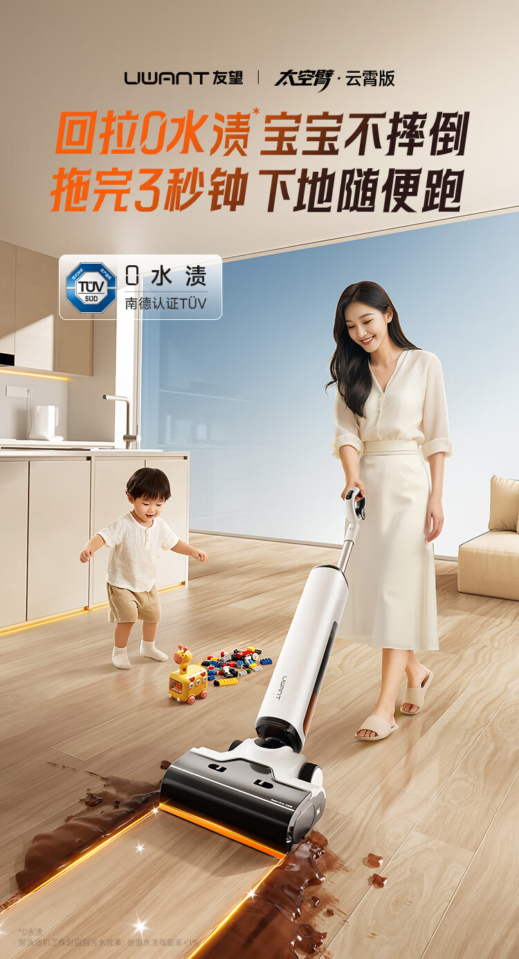 uwant友望洗地机太空臂云霄版【25kPa吸力0缠毛0水渍 】超薄躺平AI自清洁家用洗地机吸拖一体