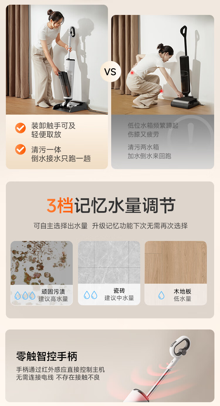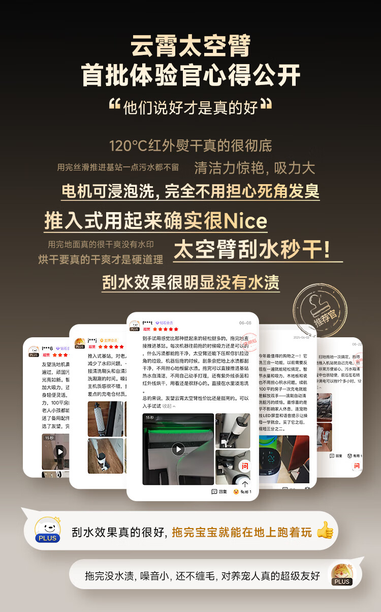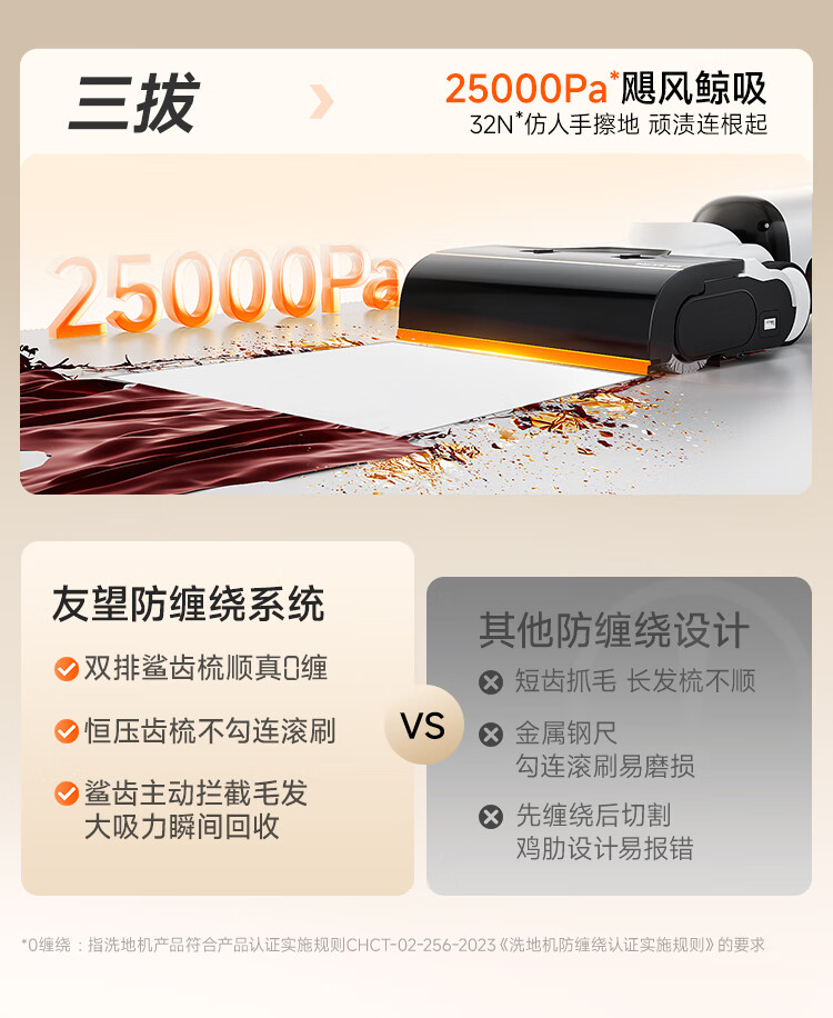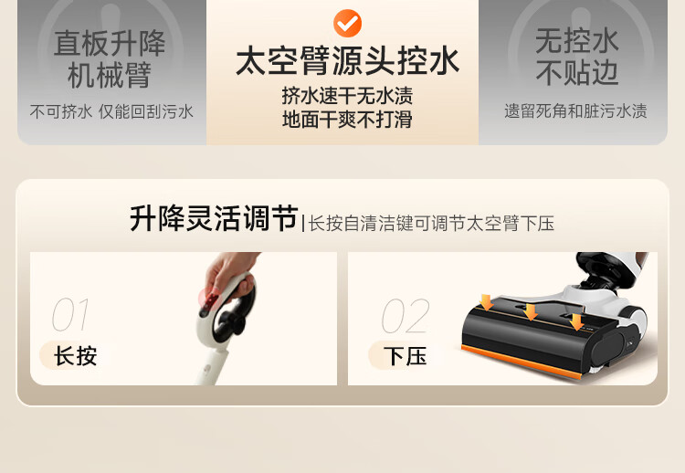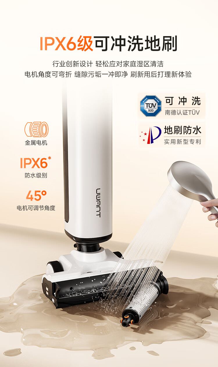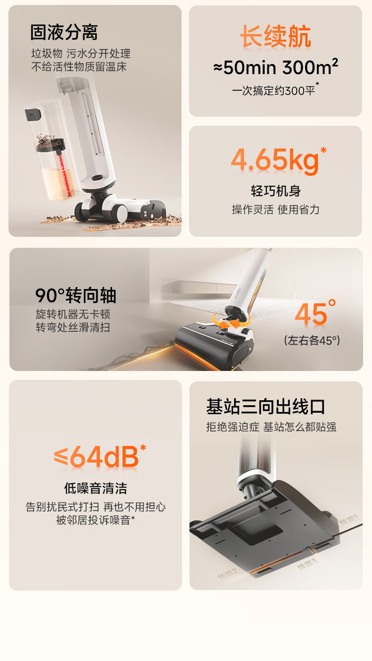 uwant友望洗地机太空臂云霄版【25kPa吸力0缠毛0水渍 】超薄躺平AI自清洁家用洗地机吸拖一体
