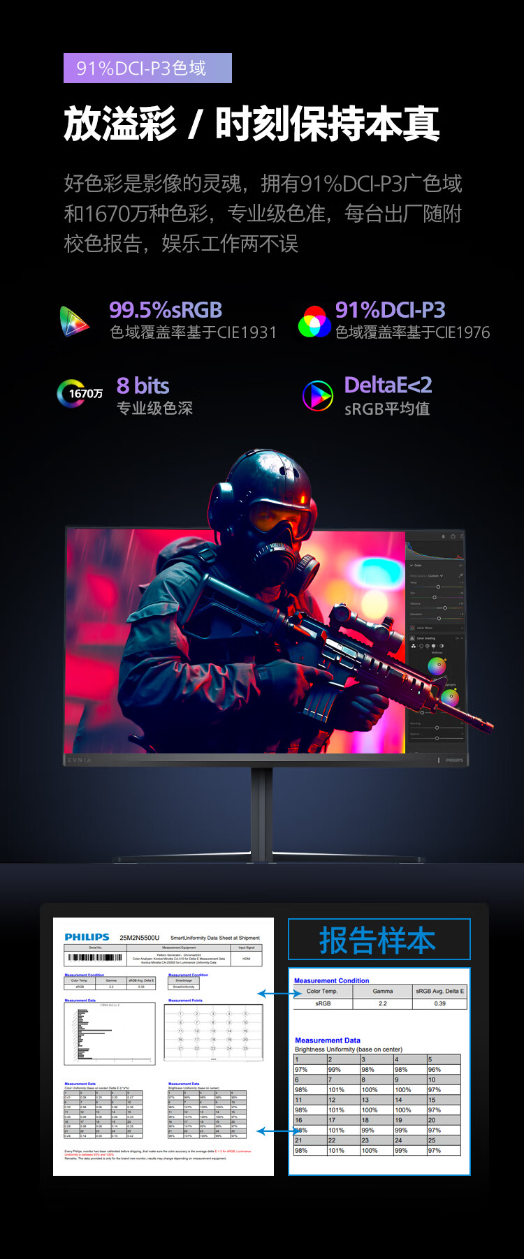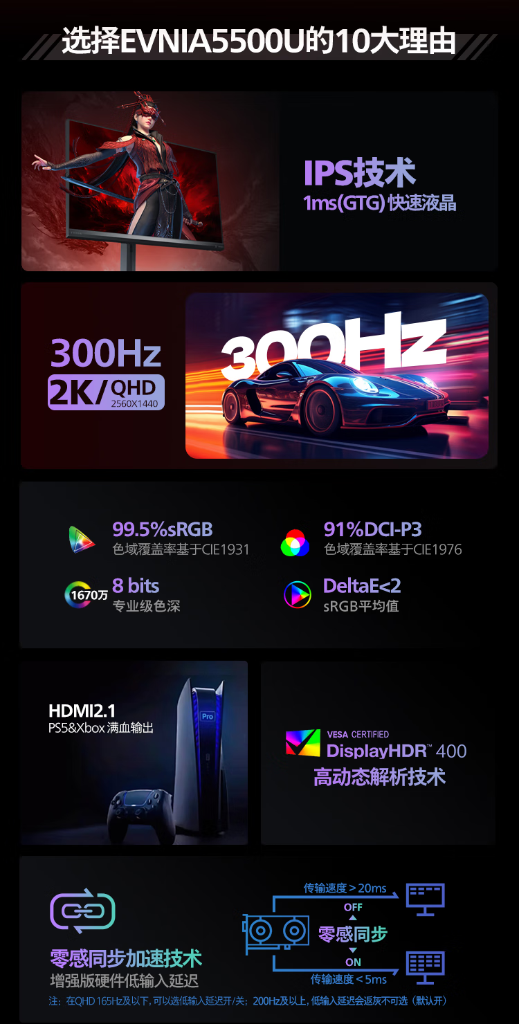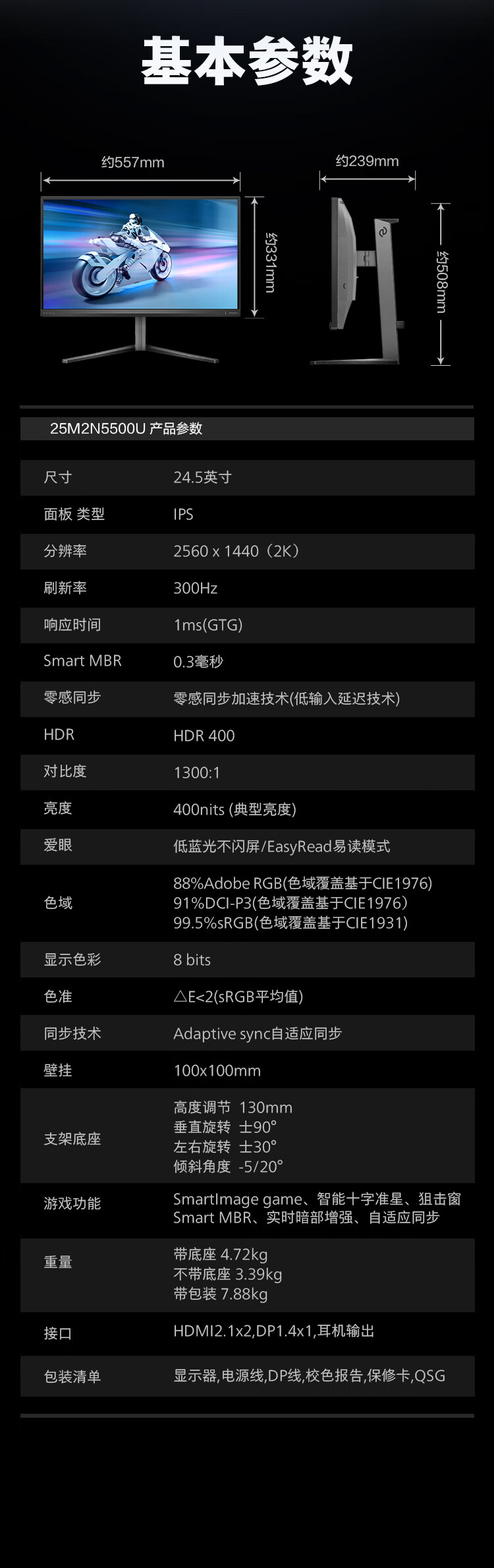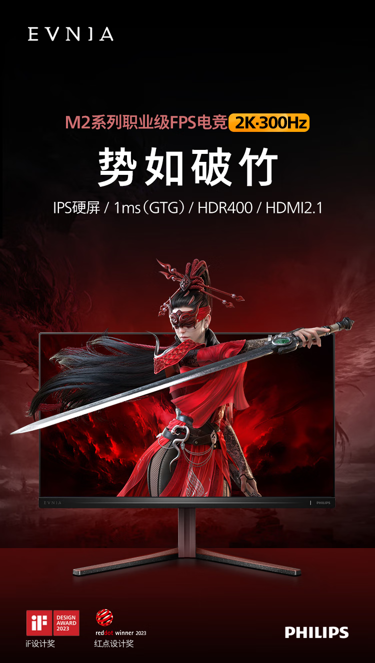飞利浦EVNIA弈威电竞显示器 24.5英寸2K原生300Hz FastIPS HDR400出厂校准 HDMI2.1硬件低延迟25M2N5500U