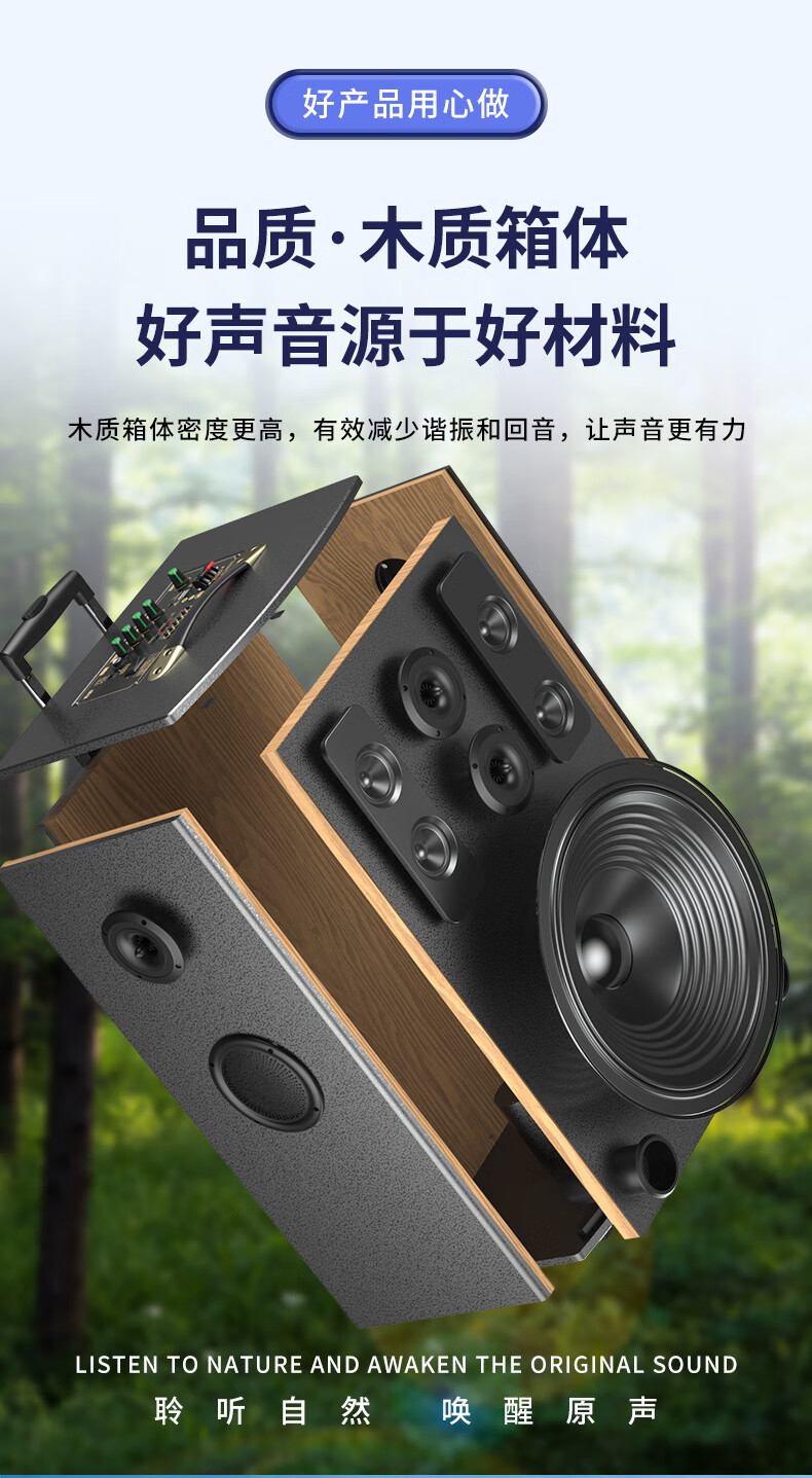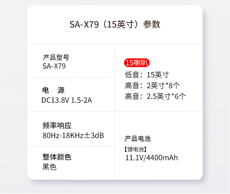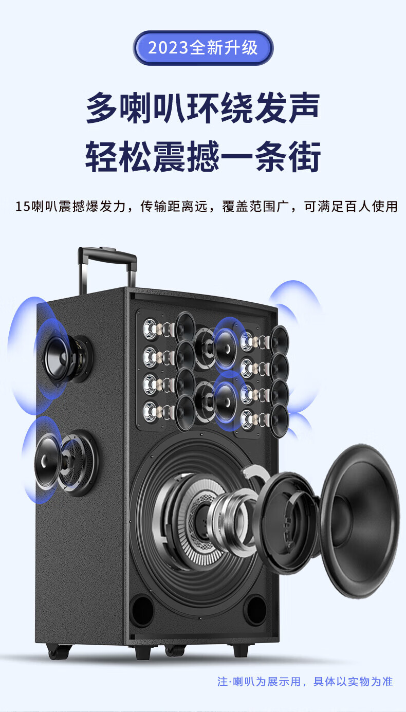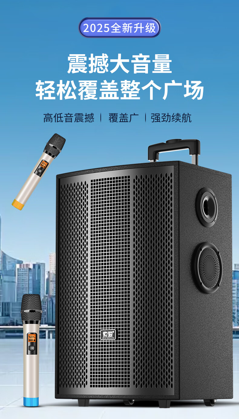 索爱(soaiy)15吋广场舞音响大功率便携式木质户外重低音蓝牙k歌专用大音量移动拉杆音箱室外演出双话筒SA-X79