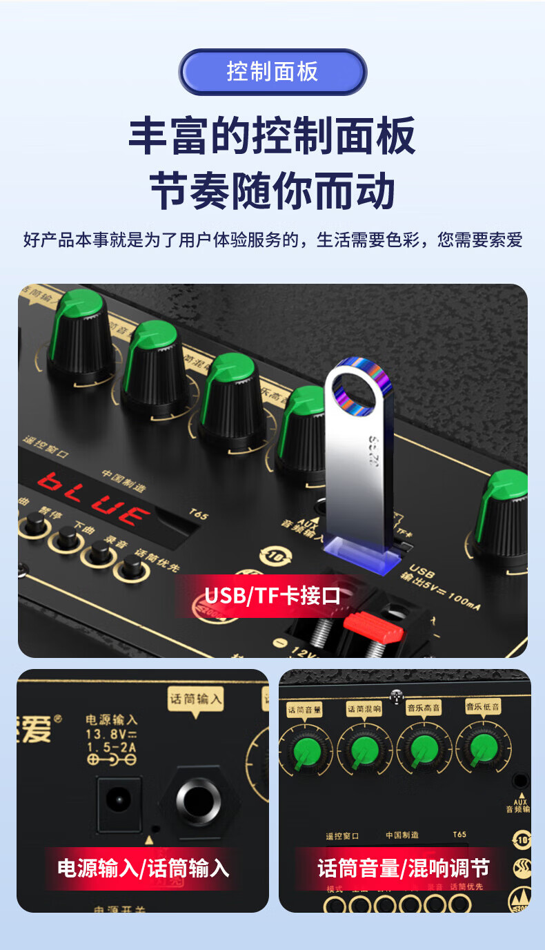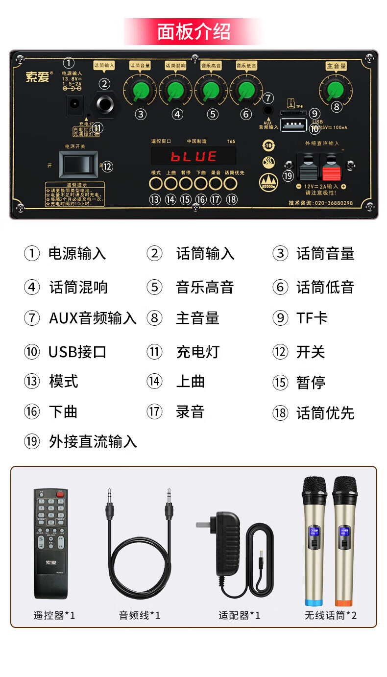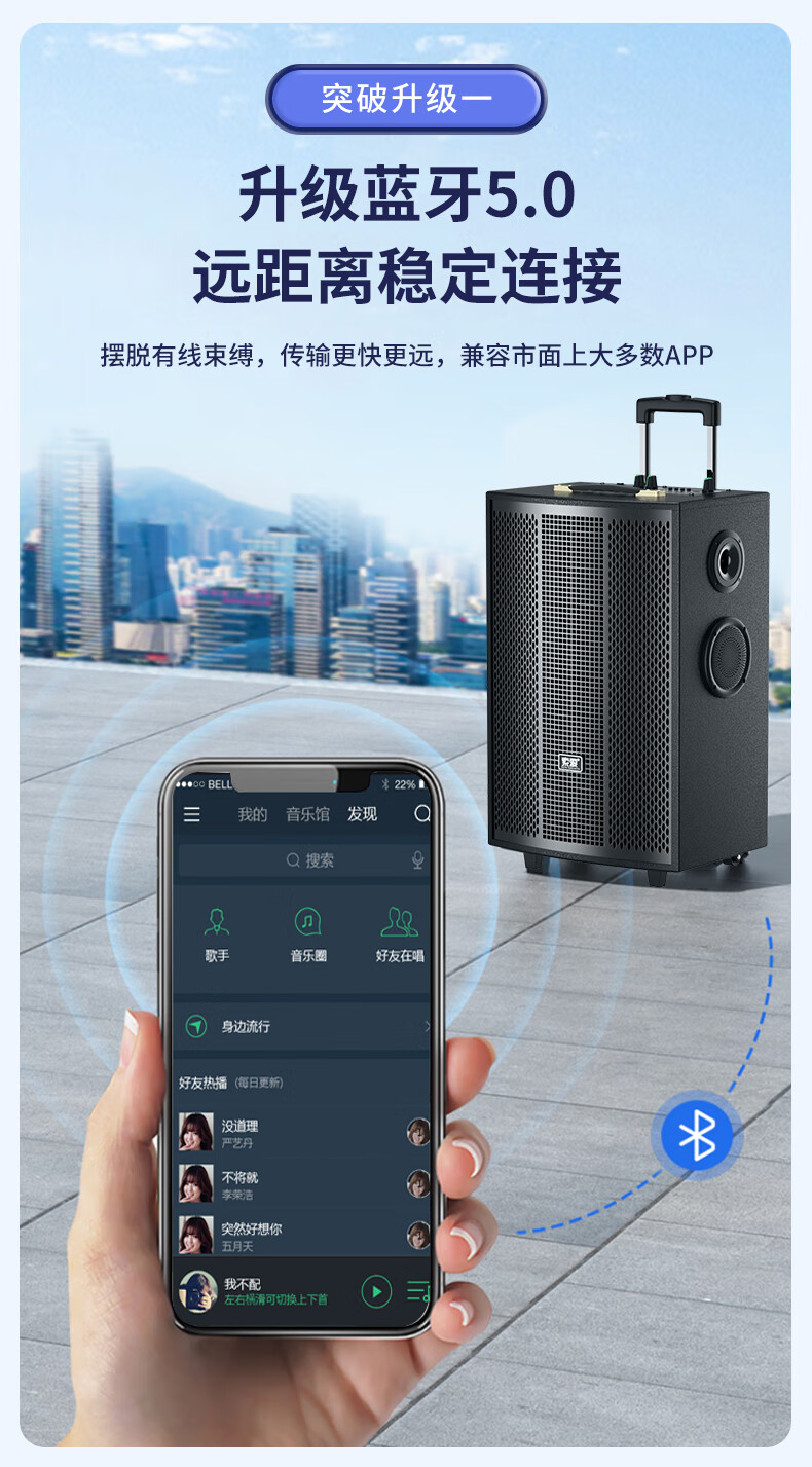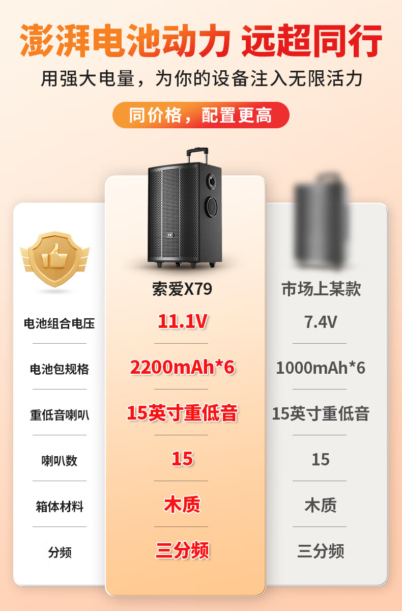 索爱(soaiy)15吋广场舞音响大功率便携式木质户外重低音蓝牙k歌专用大音量移动拉杆音箱室外演出双话筒SA-X79