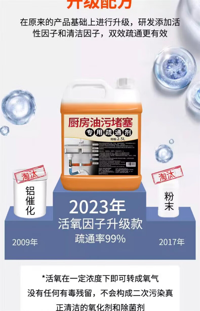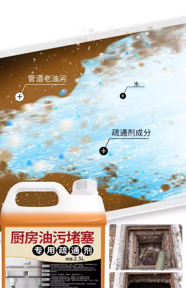 DEATKN德国厨房管道疏通剂下水道油污强力溶解剂管道去油脂堵塞专用 [囤货装] 2.5kg 5桶