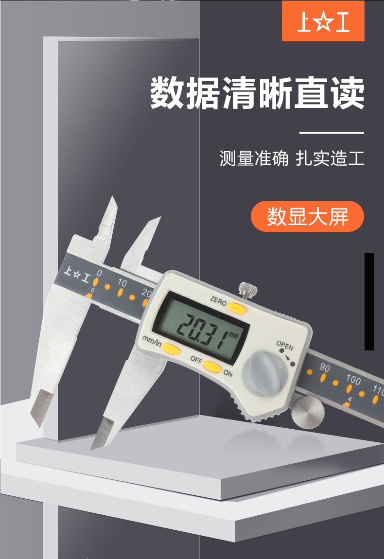 上工 电子数显卡尺0-150mm 分度值0.01 三按键游标卡尺 不锈钢 高精度 方杆
