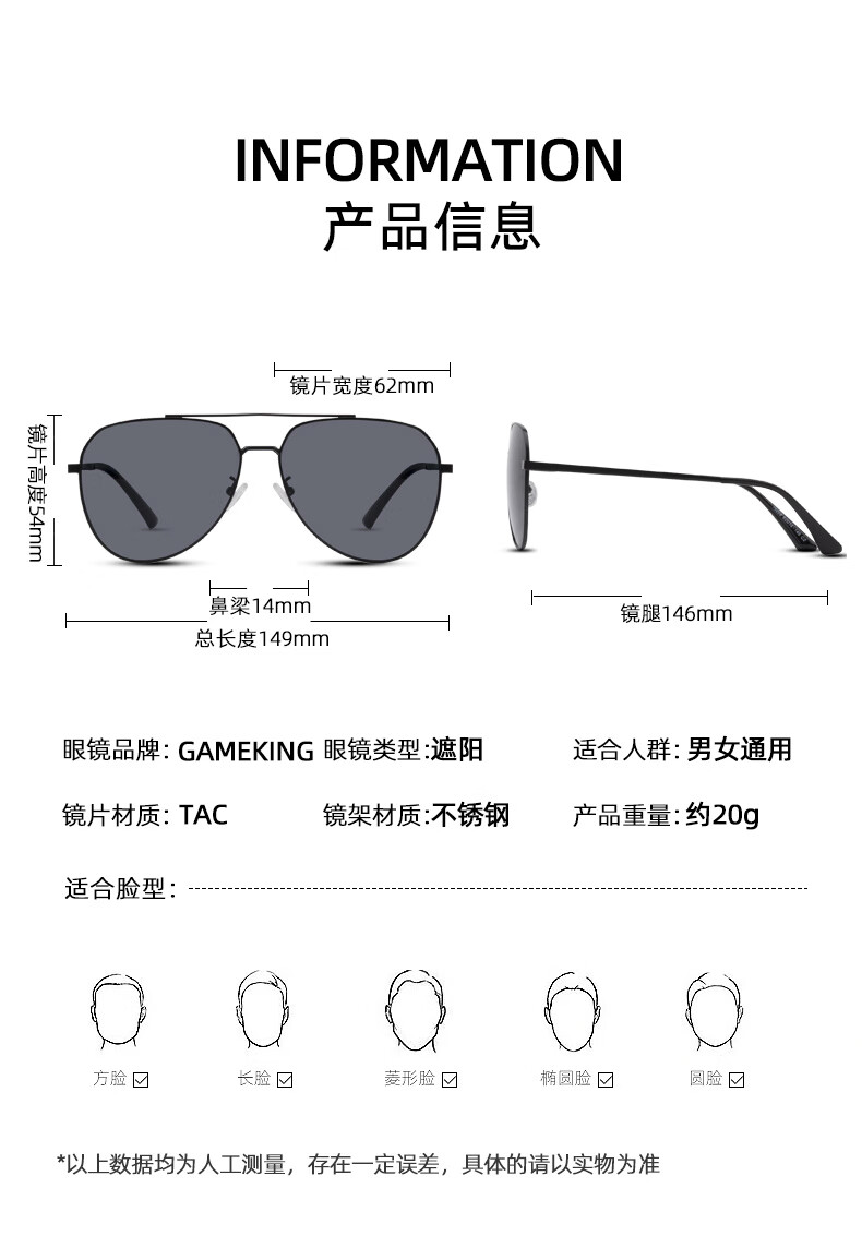 Gameking近视眼镜太阳镜男女通用蛤蟆镜开车防紫外线19208七夕