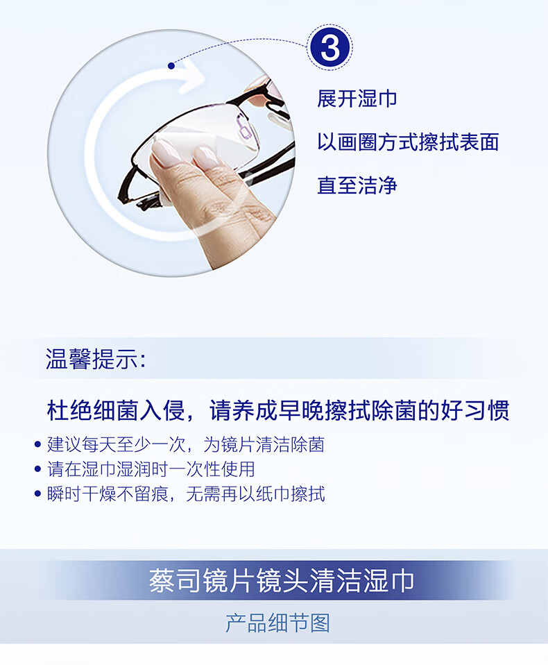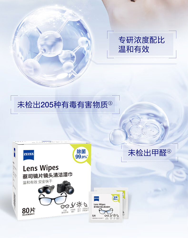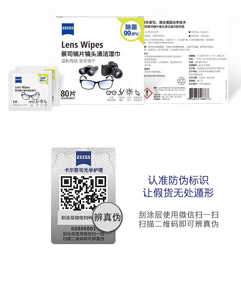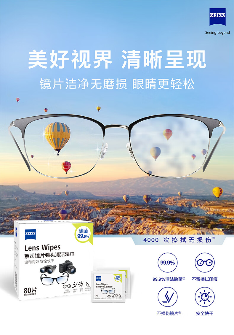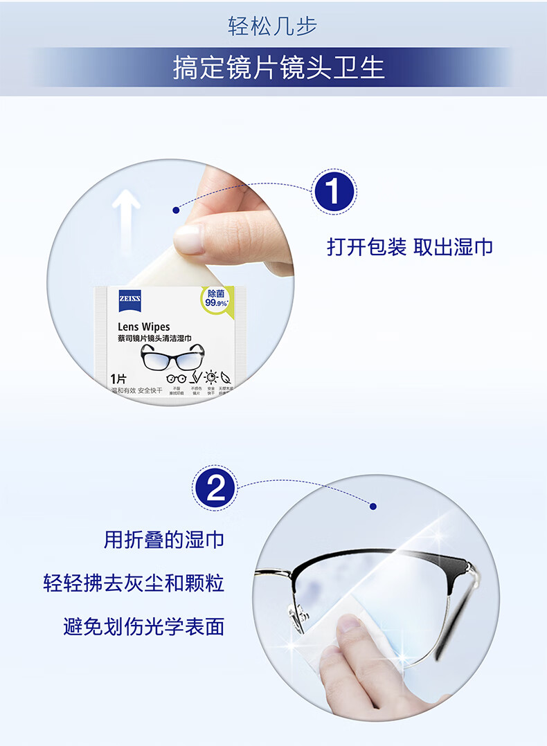 zeiss蔡司擦镜纸 擦眼镜清洁湿巾 擦镜头镜片专用一次性眼镜布 80片装