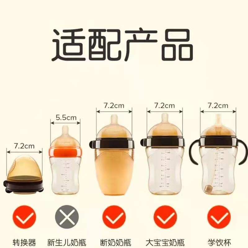 优爱心适配四加喜6.4CM玻璃宽口径奶瓶学饮嘴鸭子嘴吸管 [玻璃奶瓶专用]手柄+吸嘴+鸭嘴带重力球