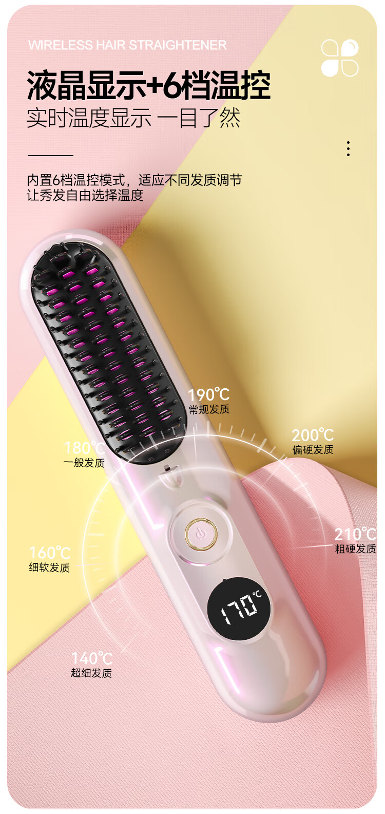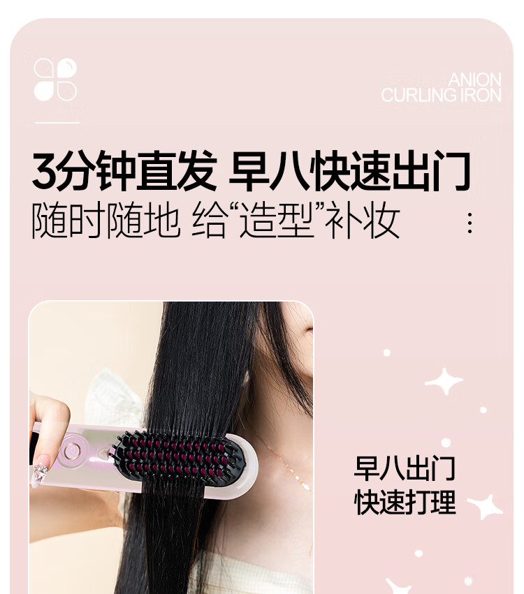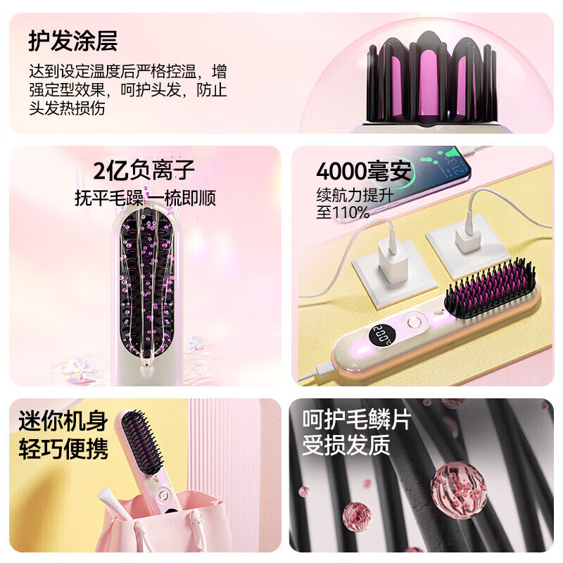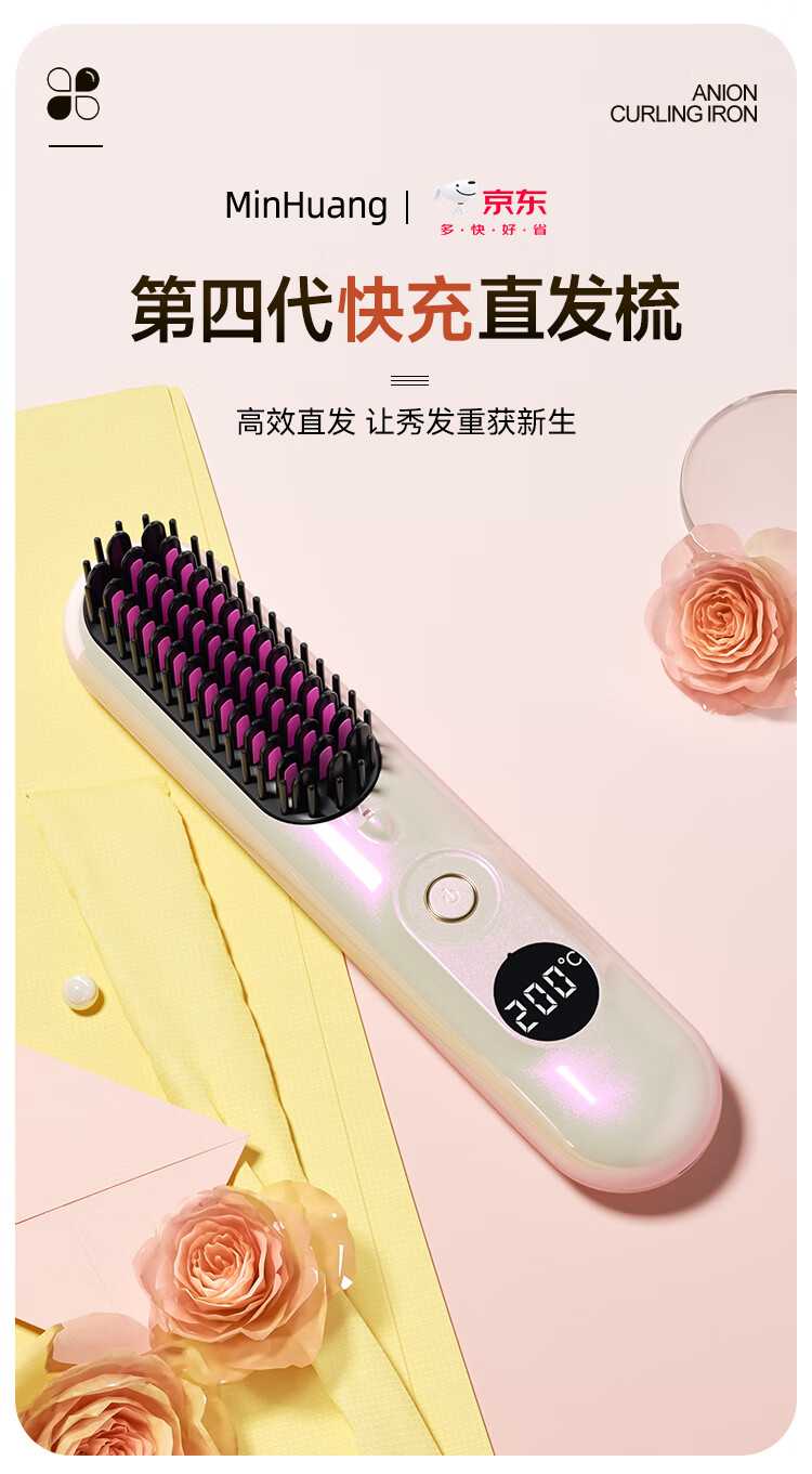 敏煌(MinHuang)【政府补贴15%】第四代快充负离子无线直发梳 直卷两用 电动梳子 蓬松神器 XN-Z10