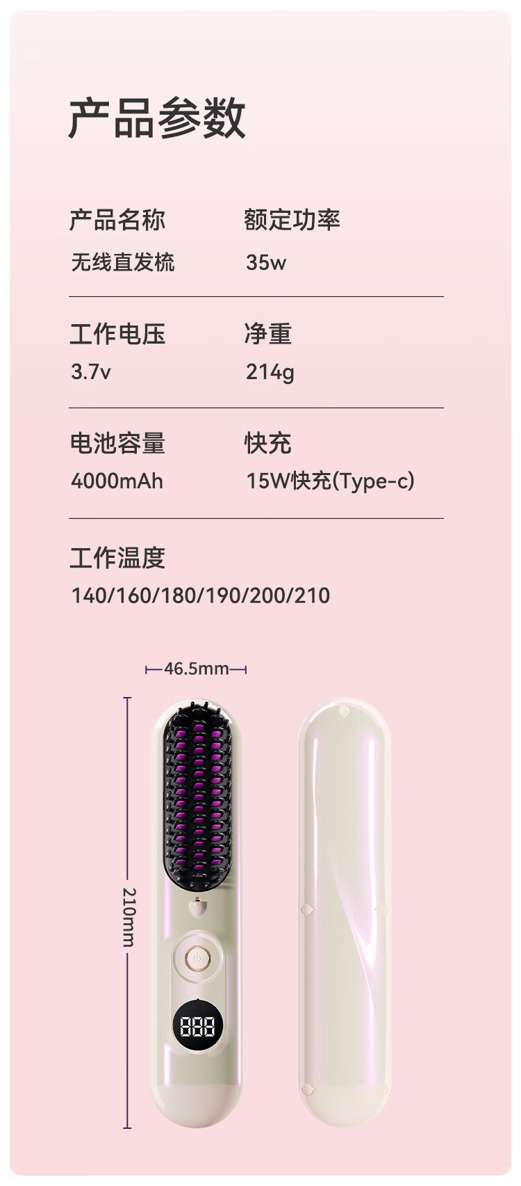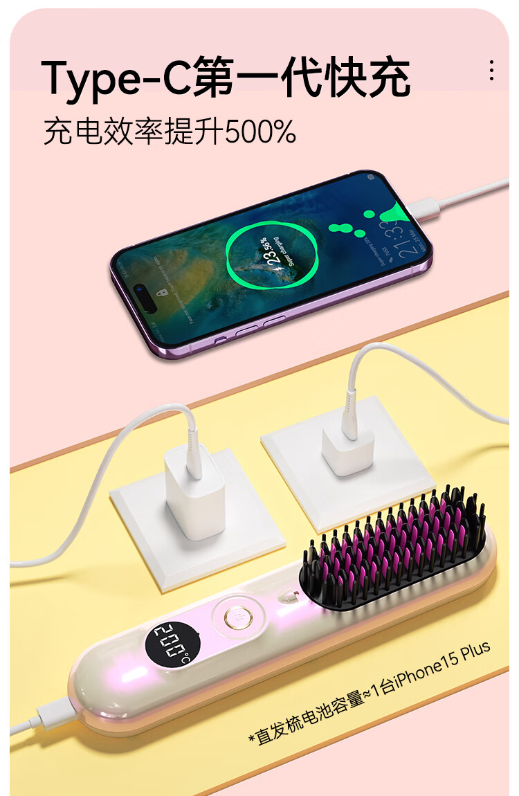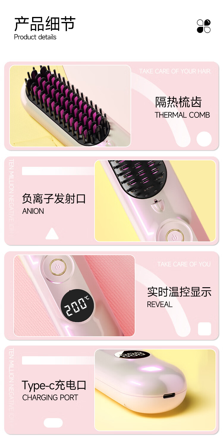 敏煌(MinHuang)【政府补贴15%】第四代快充负离子无线直发梳 直卷两用 电动梳子 蓬松神器 XN-Z10
