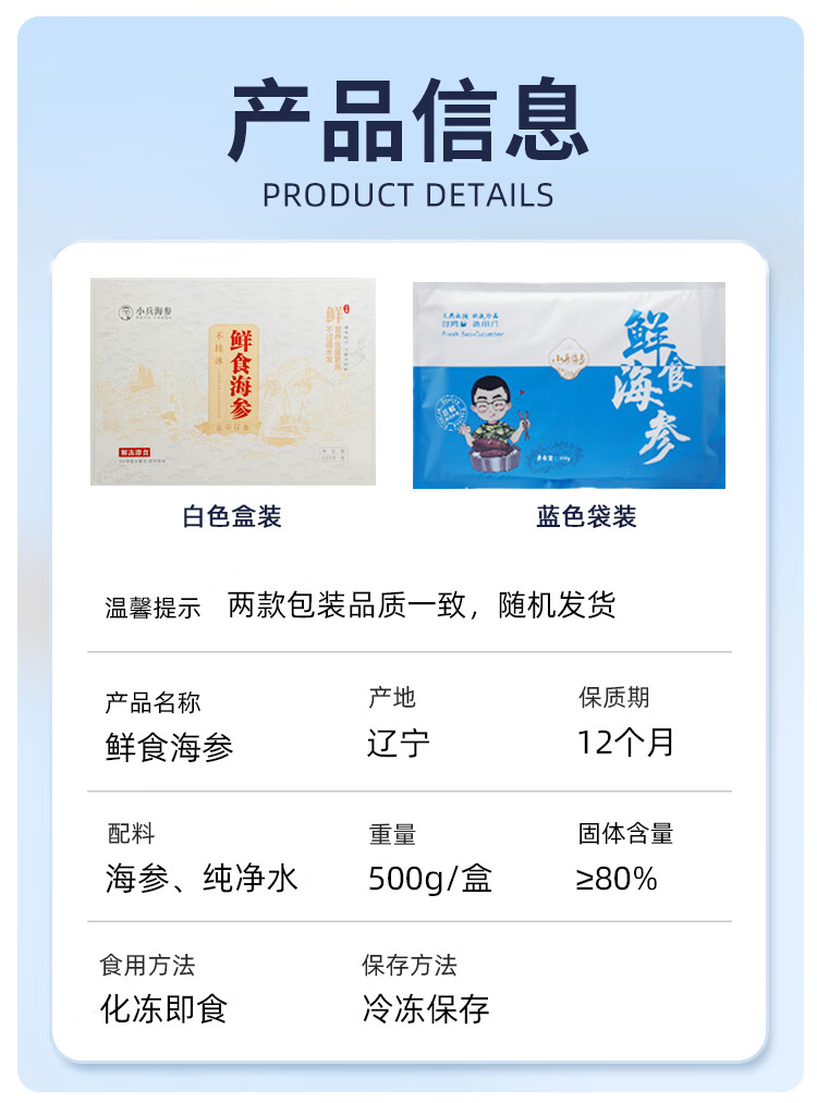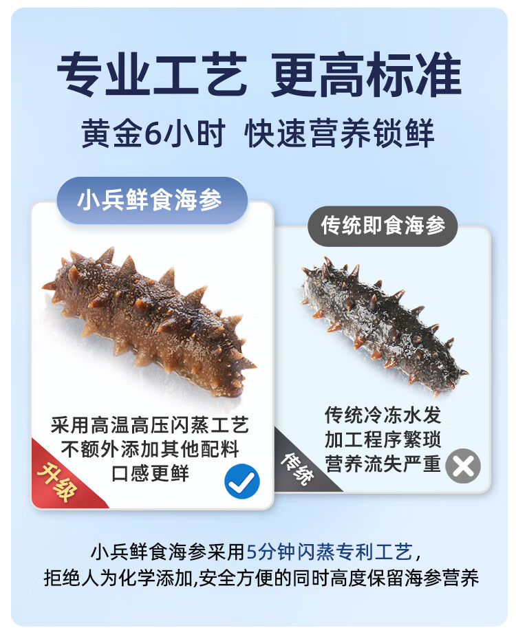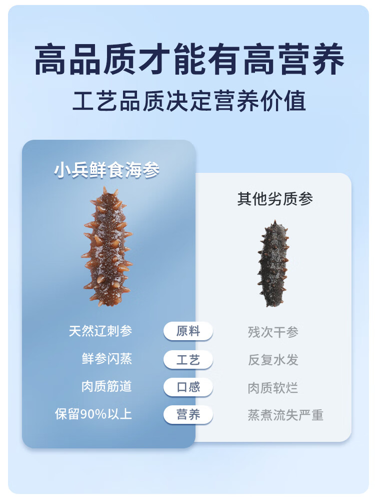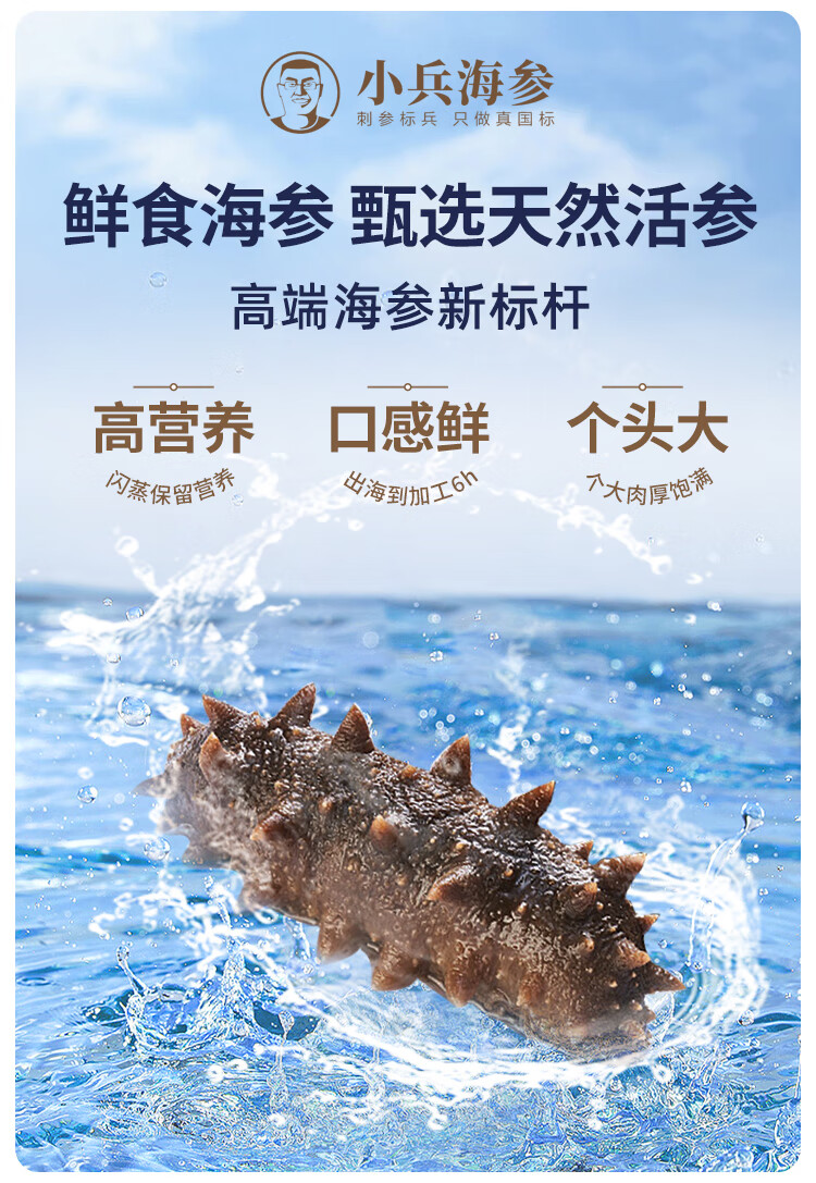 小兵海参即食海参鲜食海参官方店辽参大连海参鲜活野生海渗独立包装袋一斤 3斤(送参鲍汁) 10-12只/斤