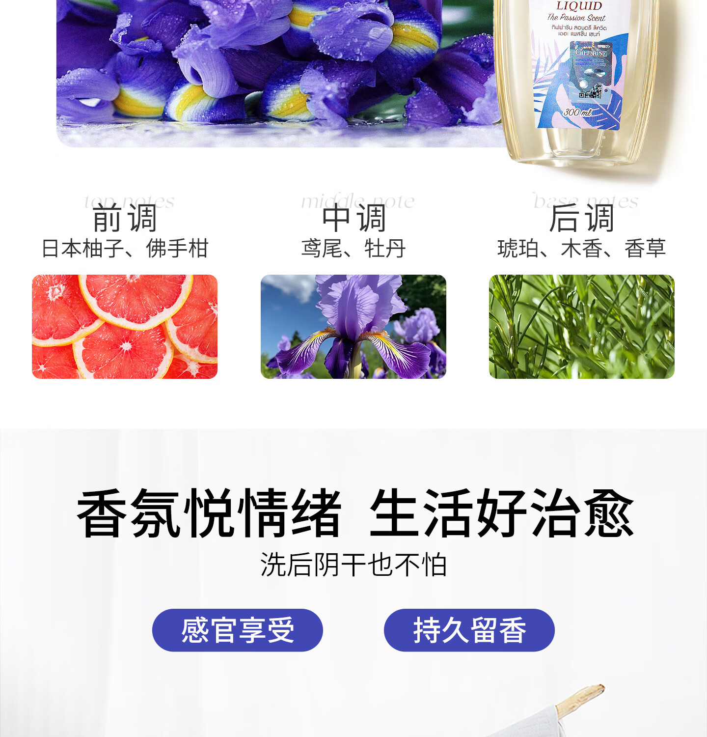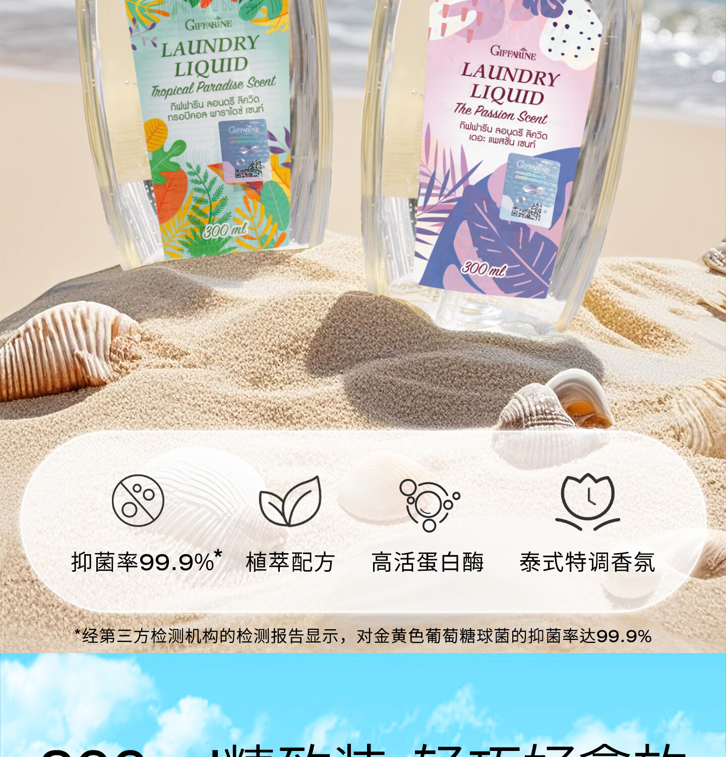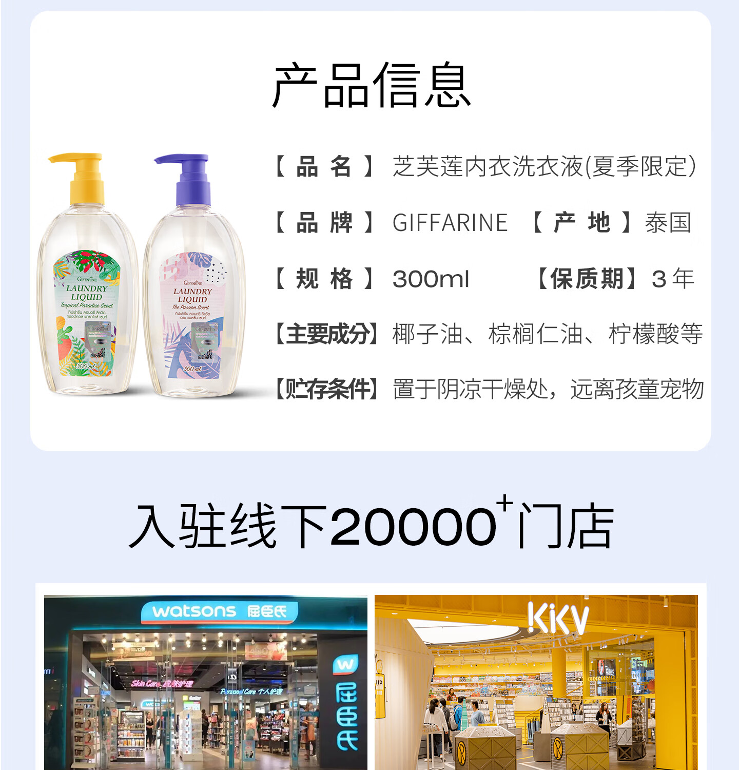 芝芙莲【夏季限定】泰国芝芙莲抑菌内衣洗衣液去黄去血渍温和清洗剂植萃 热带天堂300ml*3