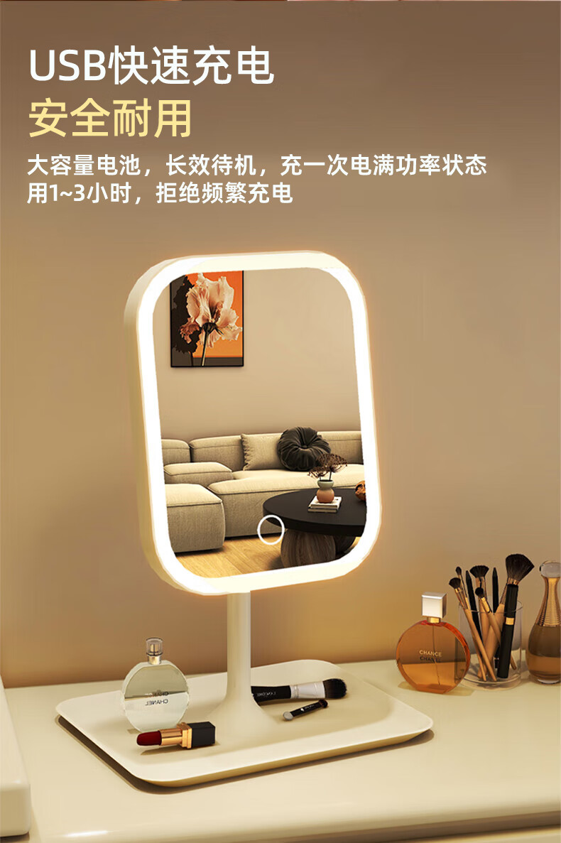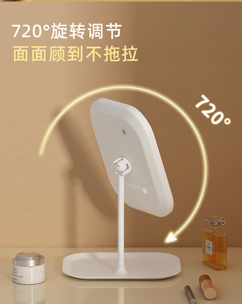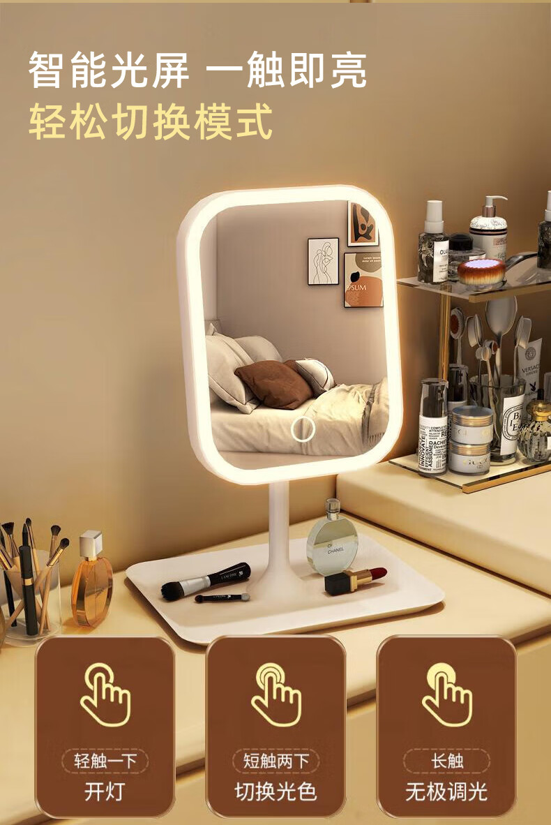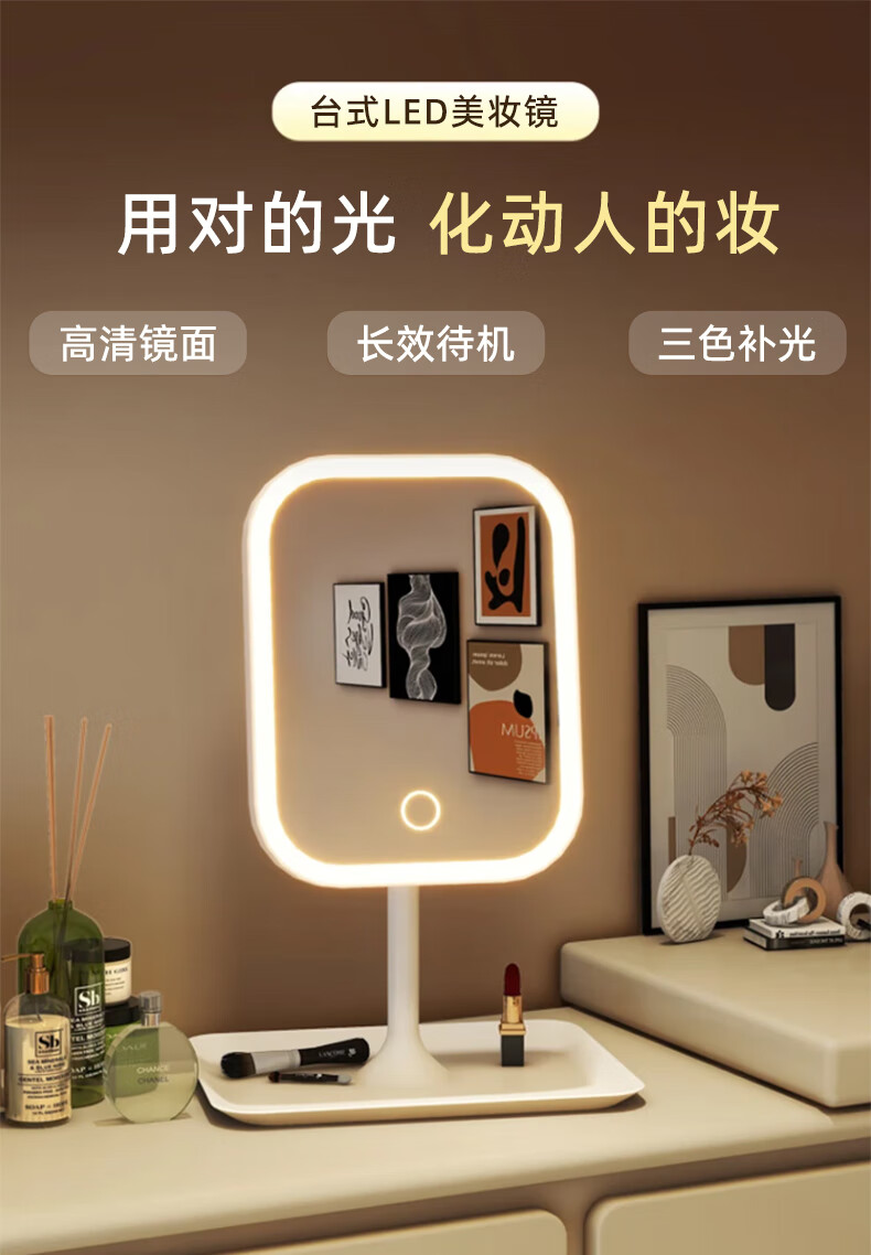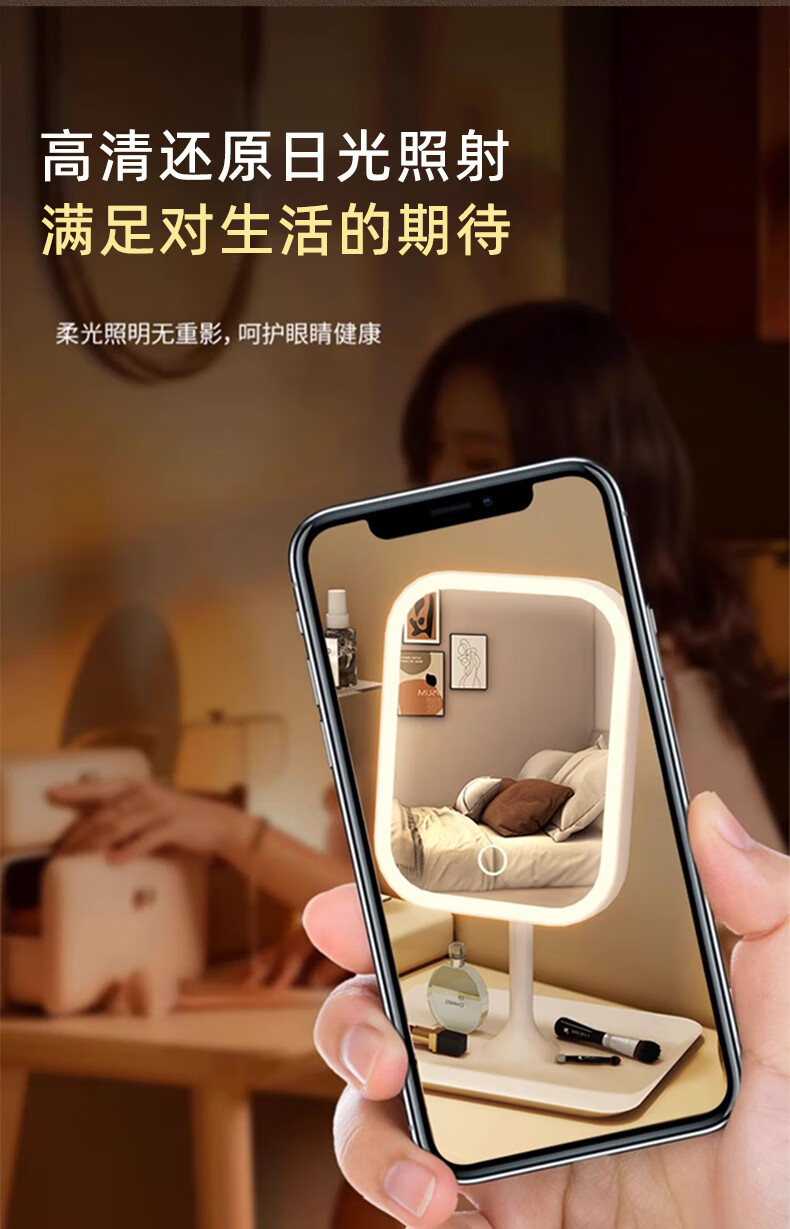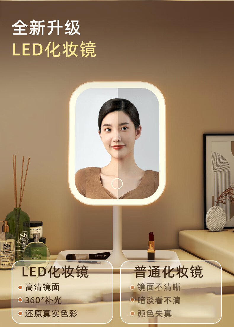 安尔雅台式化妆镜带灯补光小镜子女ins风宿舍桌面便携小型梳妆镜