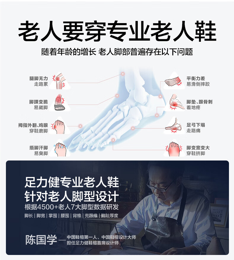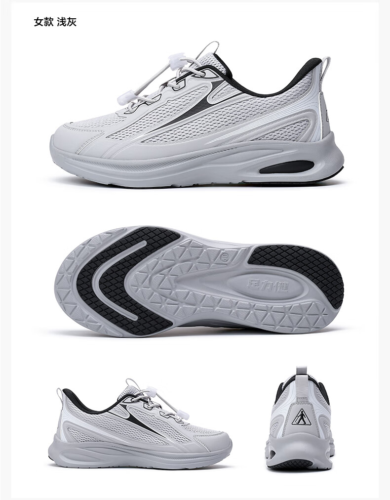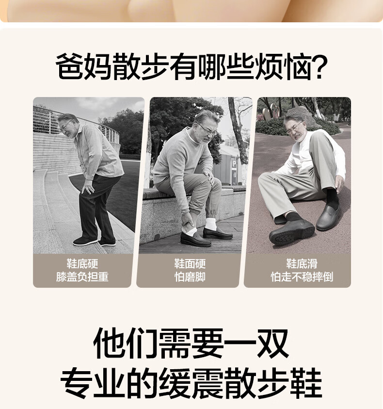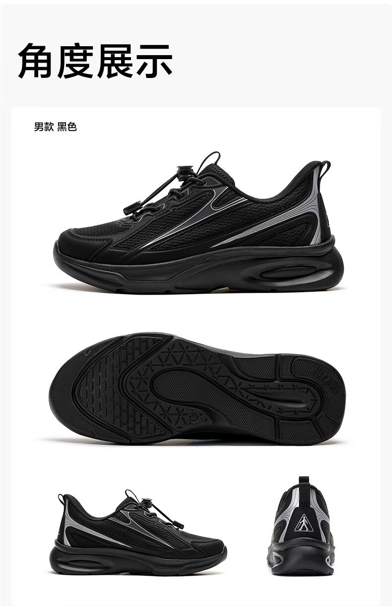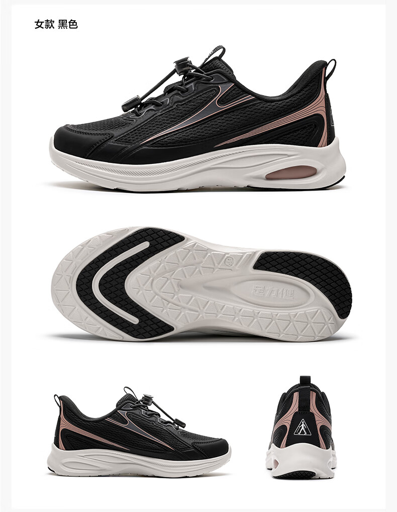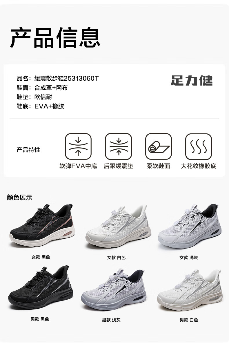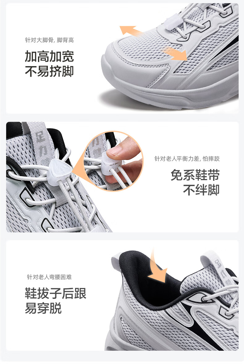 足力健老人鞋秋季新品缓震散步鞋爸爸鞋免系鞋带运动鞋送礼长辈 黑色-女款 37