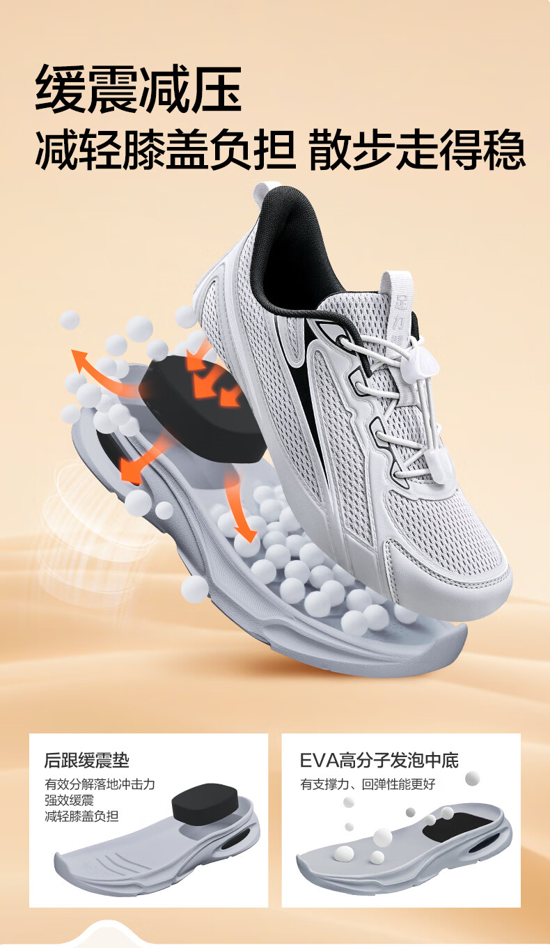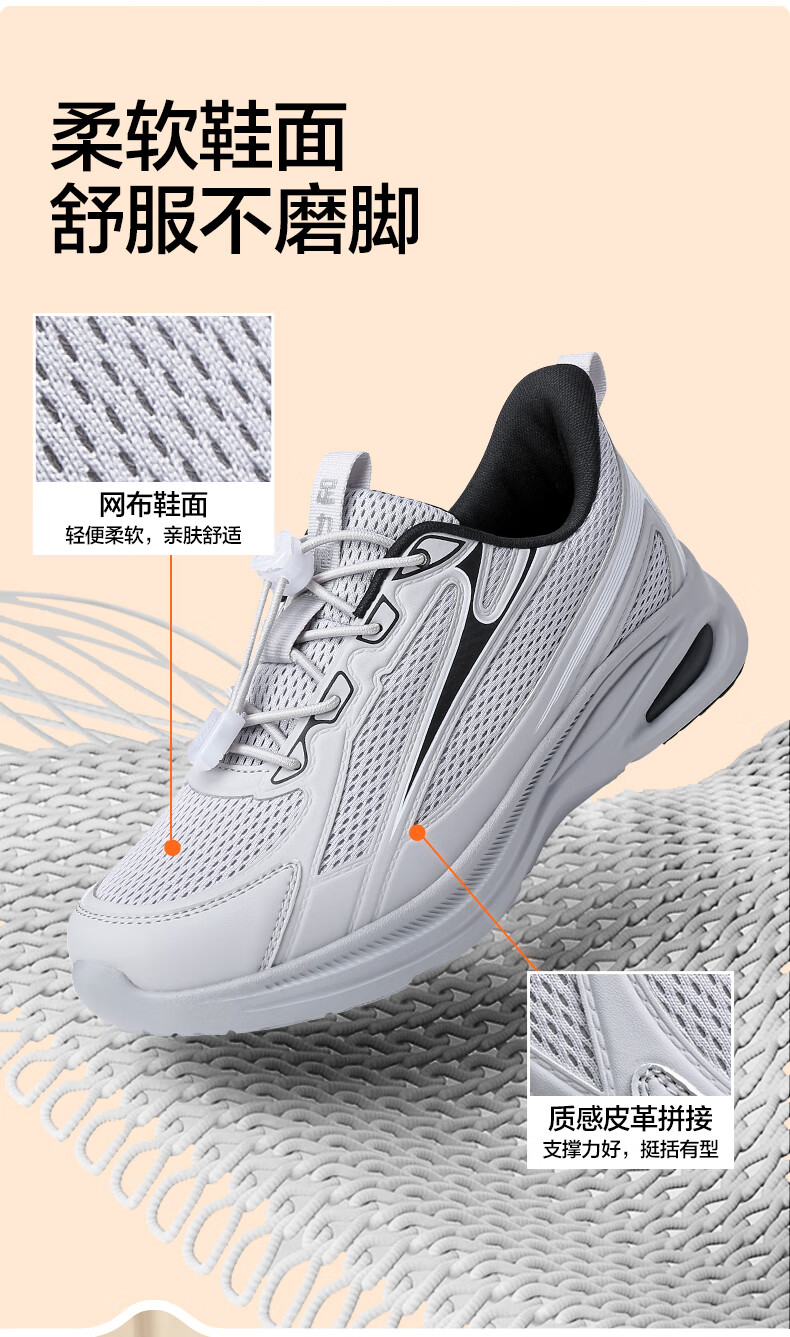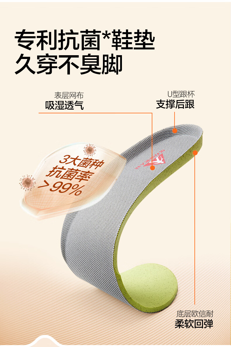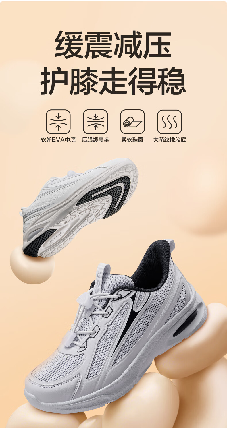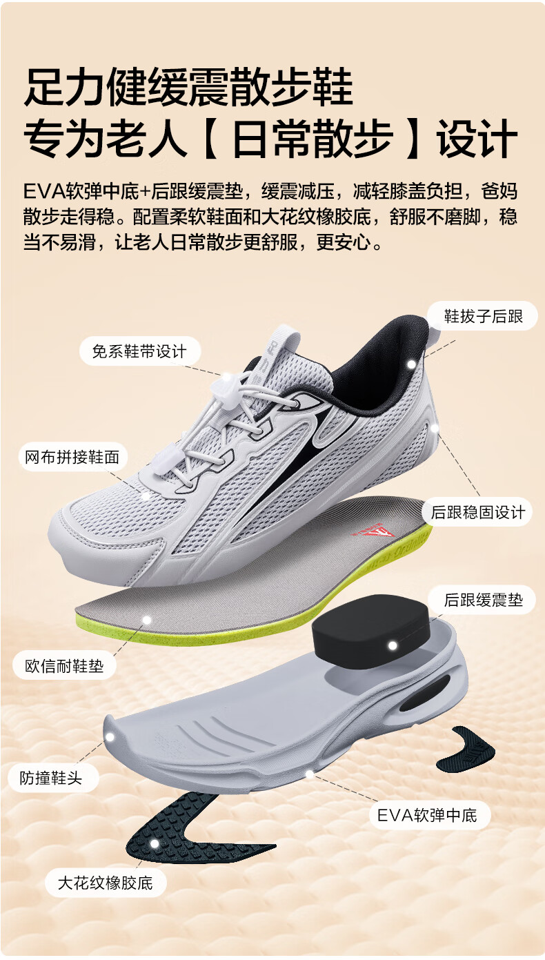 足力健中老年秋冬季爸妈鞋网纱透气不闷脚男女鞋轻盈舒适柔软休闲散步鞋 豆沙色 37