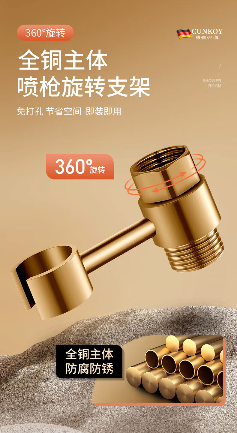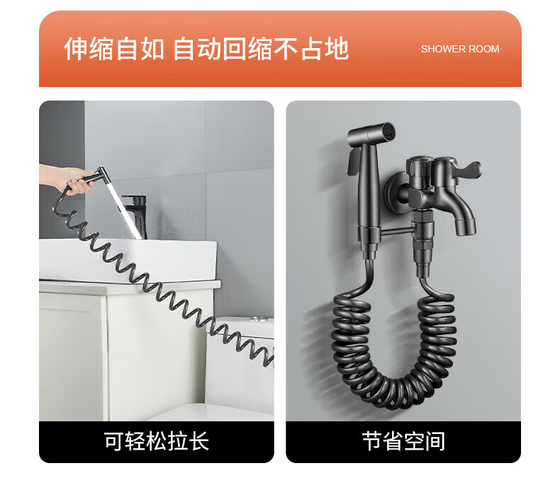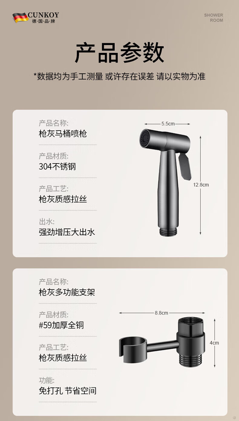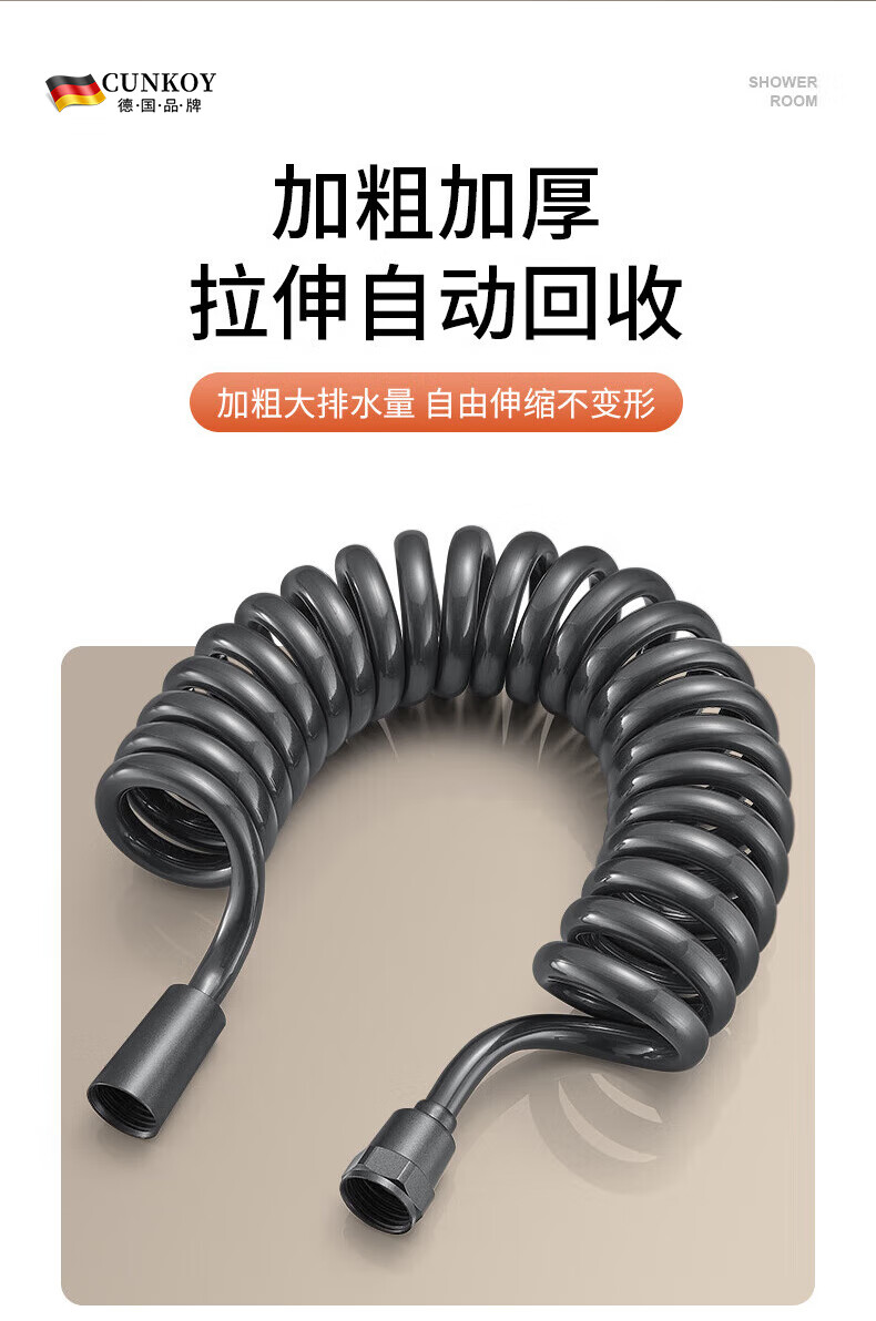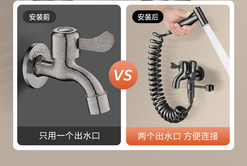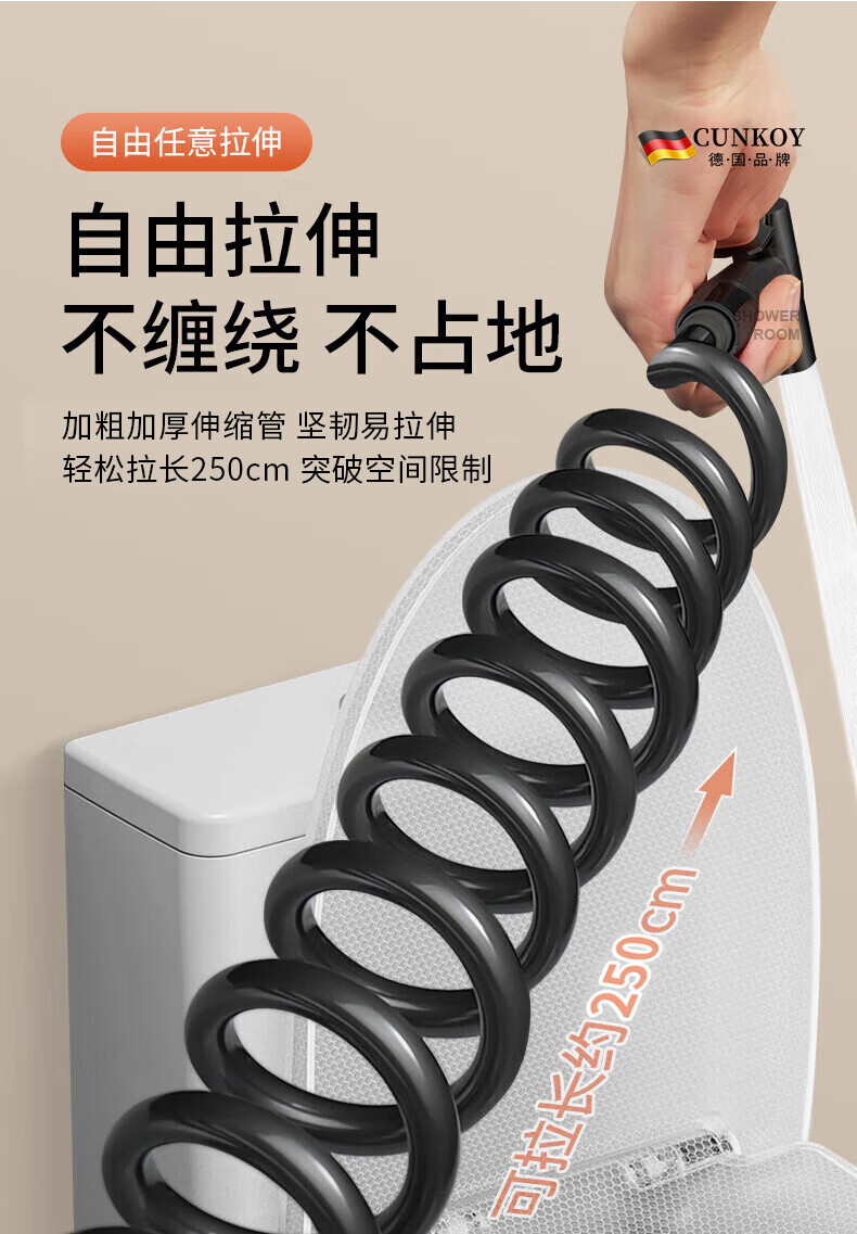CUNKOY【德国】阳台拖把池水龙头带喷枪一进二出全铜龙头卫生间高压喷枪 枪灰丨全铜三件套+3m伸缩管 全铜主体丨独立双控丨304喷枪