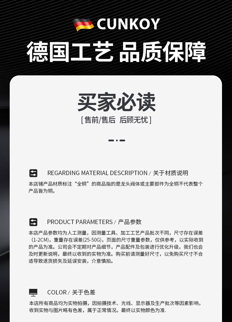 CUNKOY【德国】全铜主体入墙式冷热水龙头双孔洗衣池洗菜盆水槽厨房龙头 入墙式冷热龙头【全铜主体】枪灰 全铜主体丨双模出水丨附安装配件