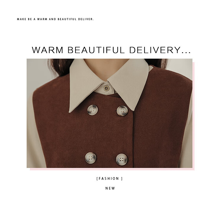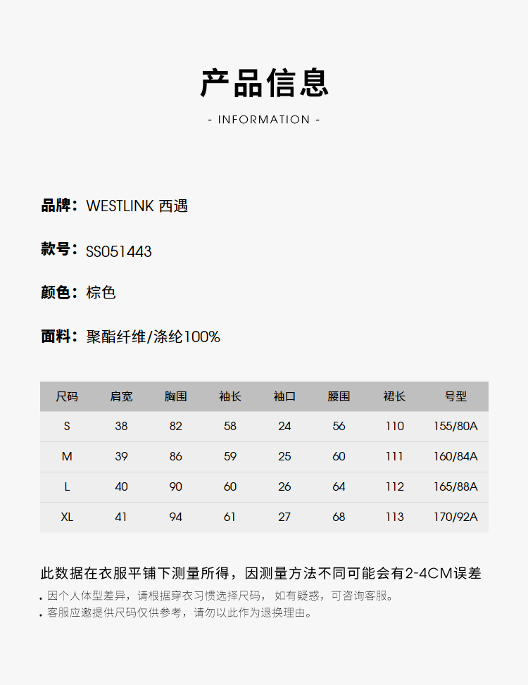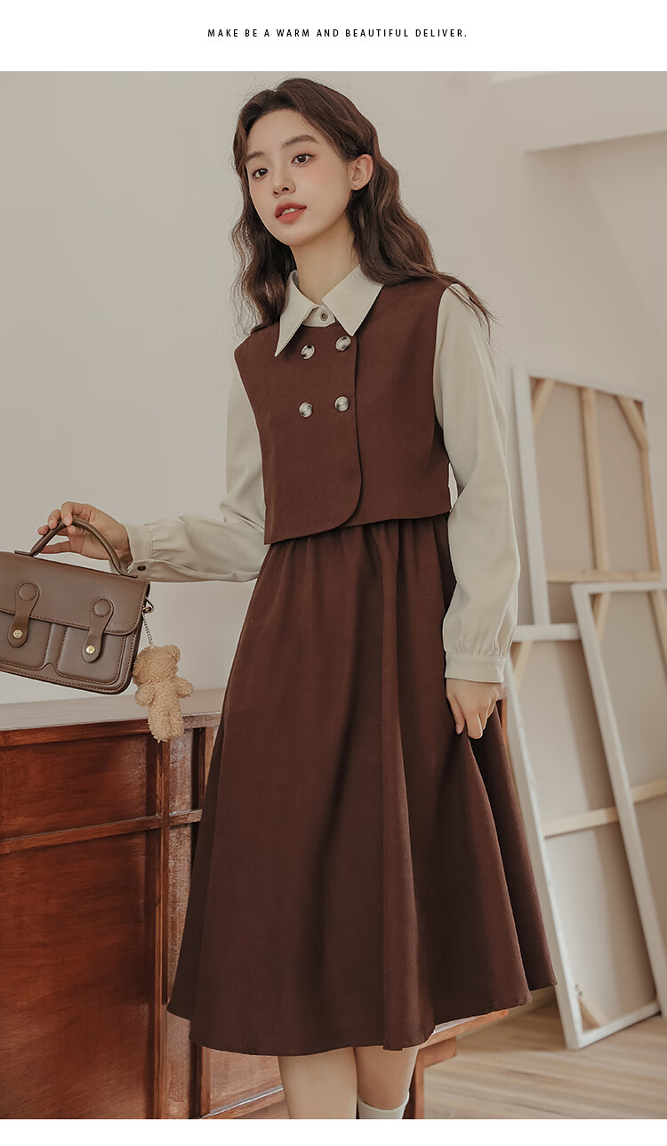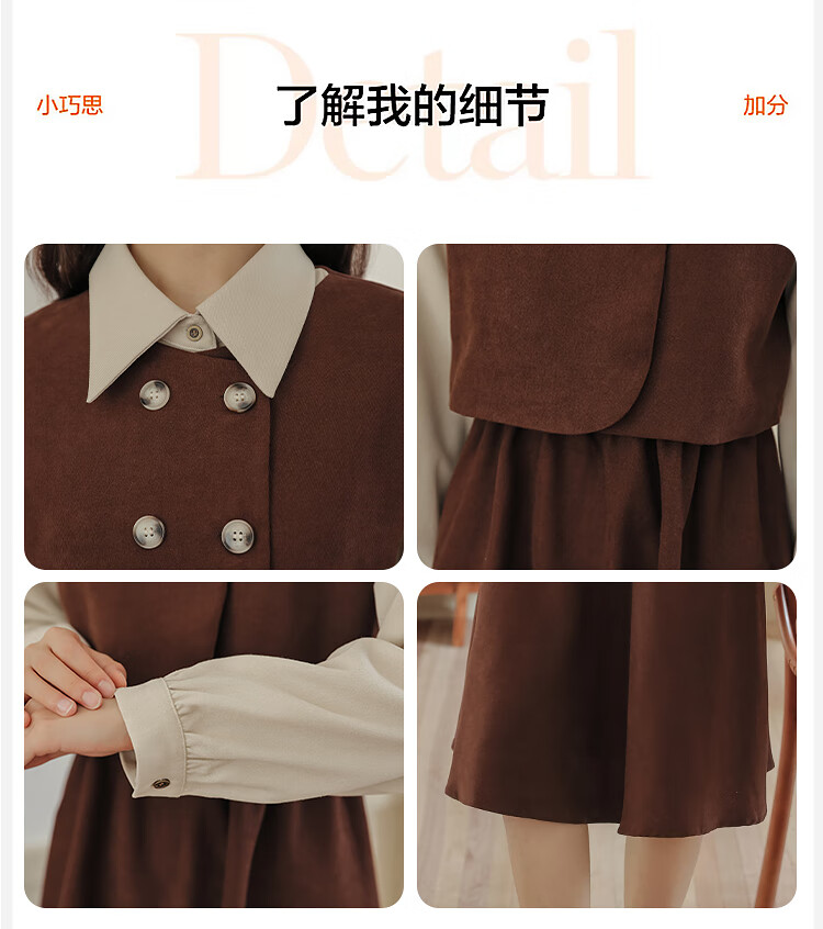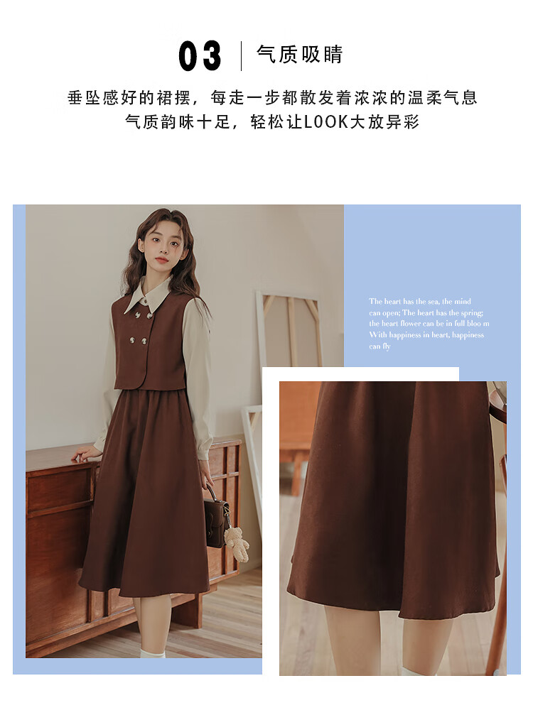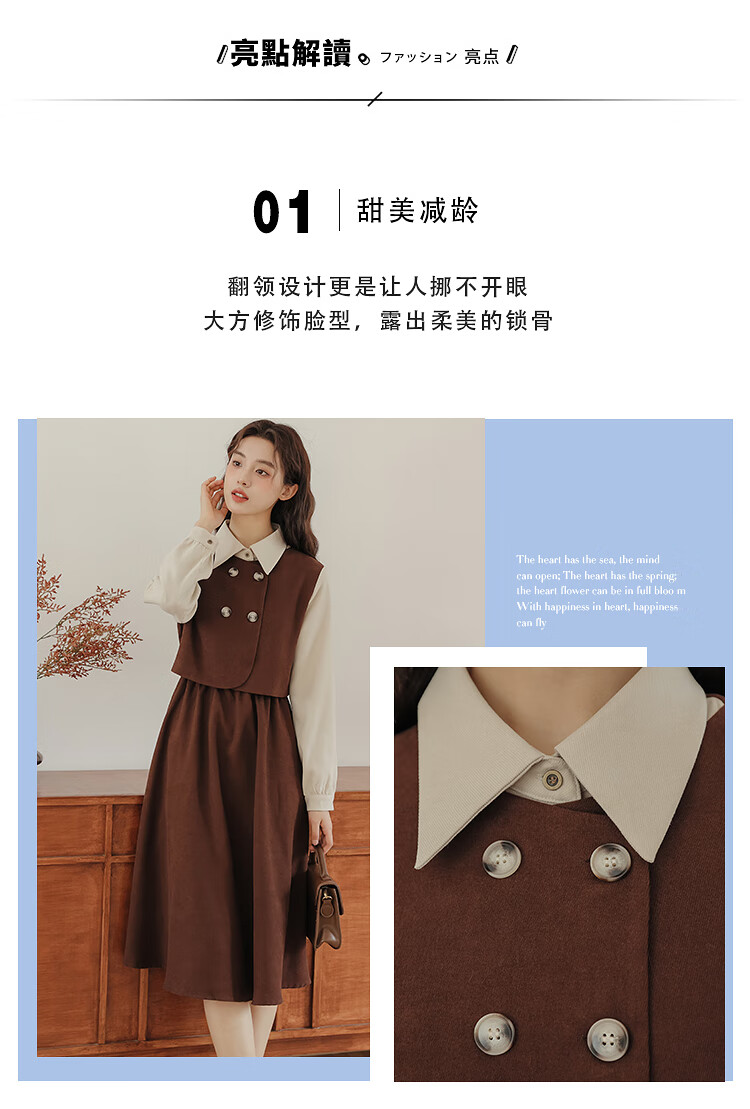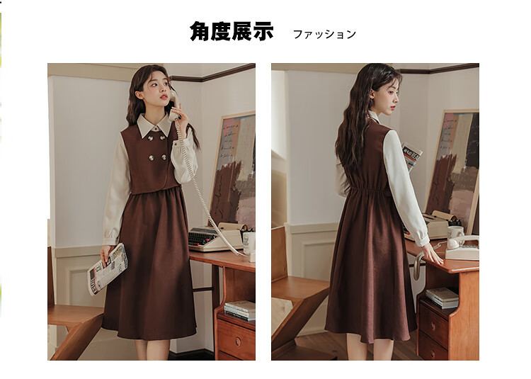 西遇(Westlink)西遇收腰长袖连衣裙女2025年秋季新款复古文艺衬衫领假两件中长裙 棕色 (预售15天) XL (170)