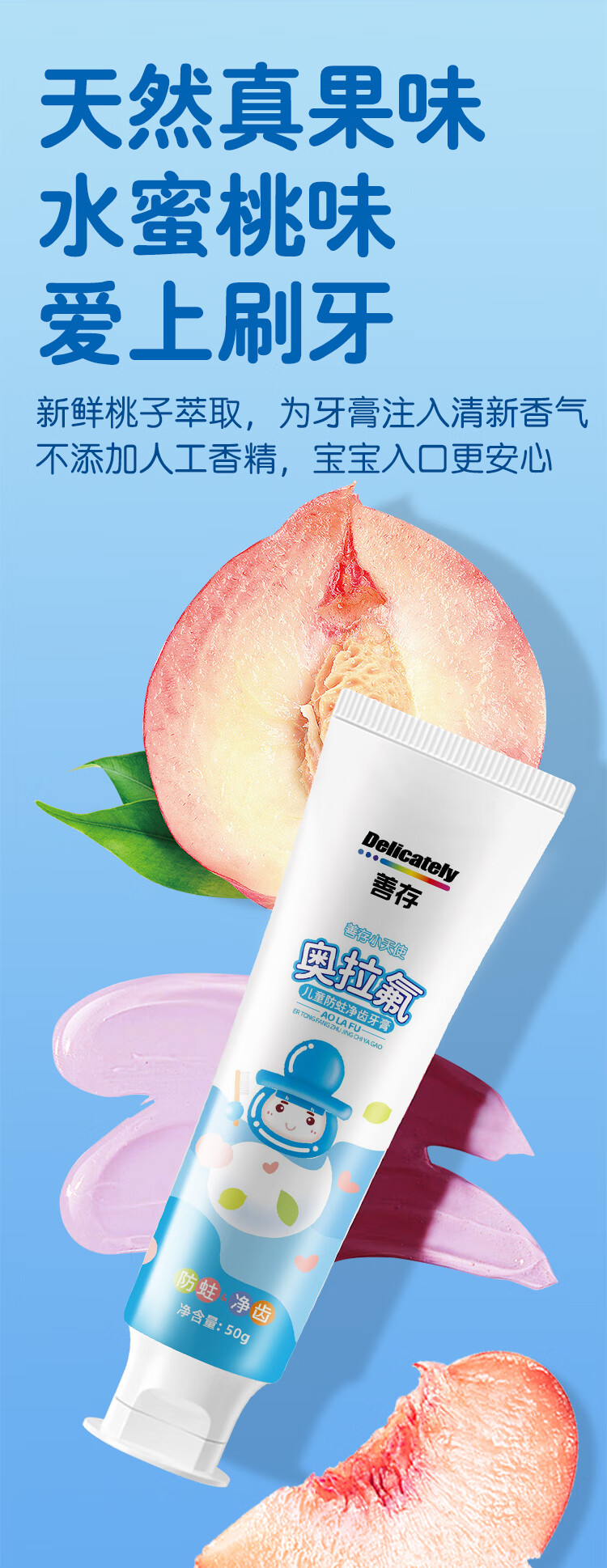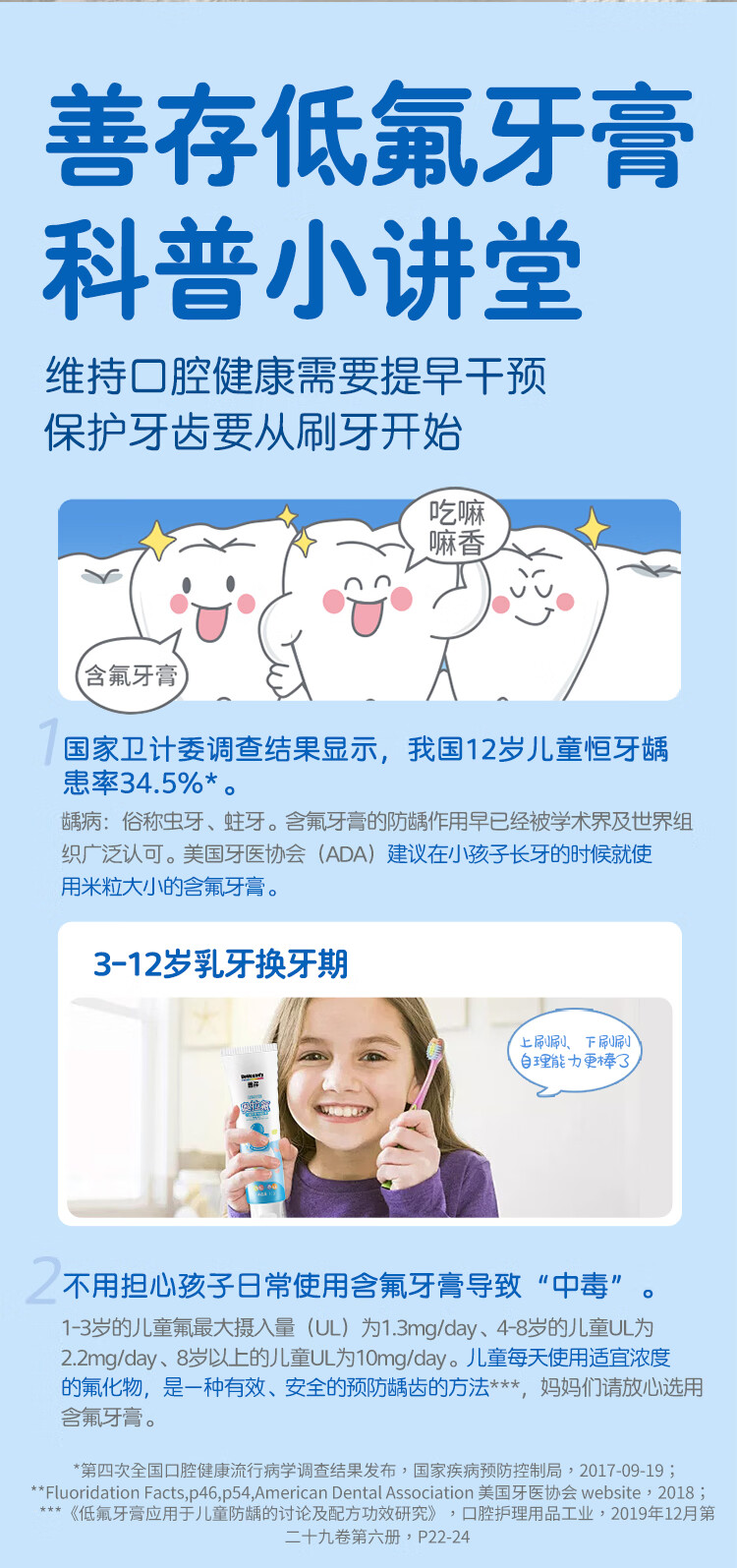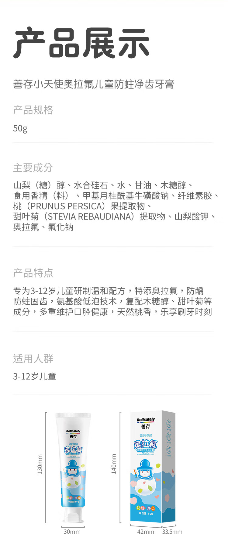 善存奥拉氟儿童牙膏含氟防蛀固齿3到6到12岁小学生宝宝换牙期专用
