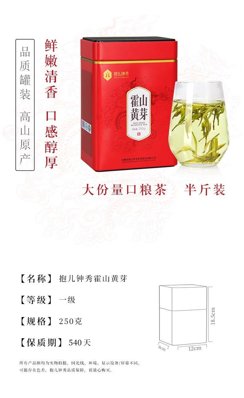 抱儿钟秀2025新茶正宗霍山黄芽黄茶雨前春茶一级口粮茶叶闷黄罐装250g安徽