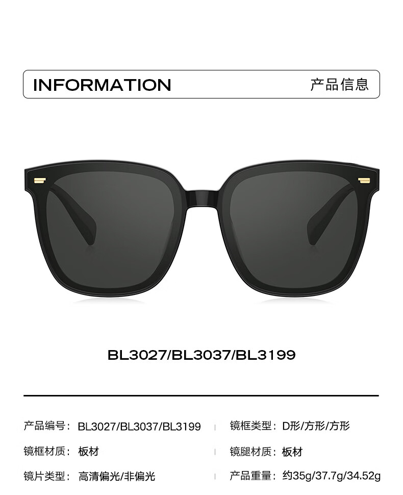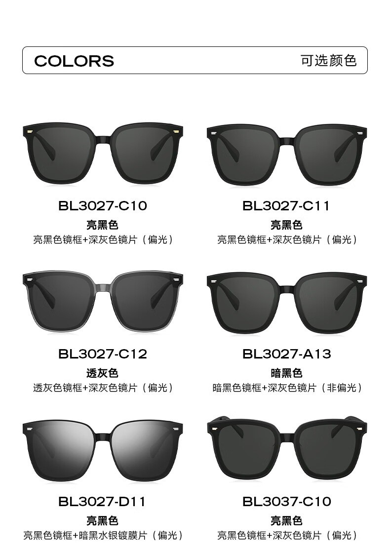 BOLON暴龙眼镜25年杨紫同款百搭防晒偏光太阳镜男女开车墨镜 BL3199C10