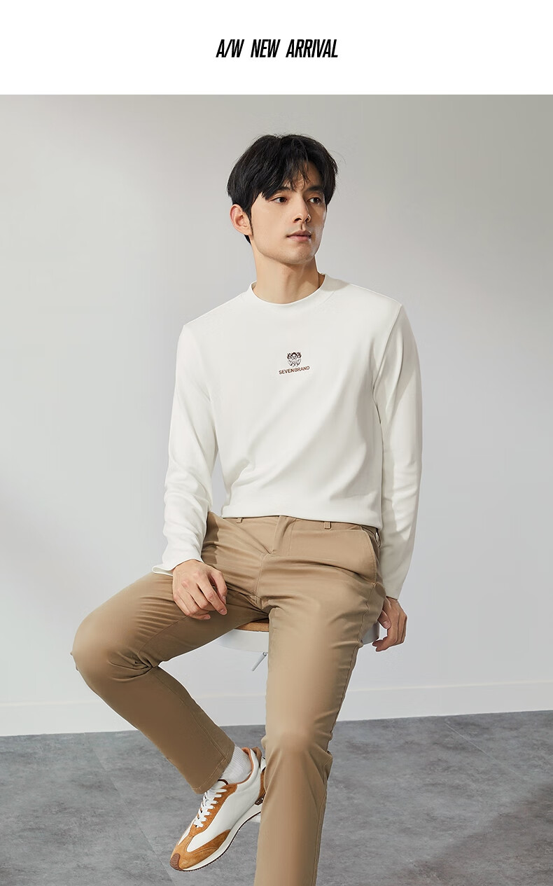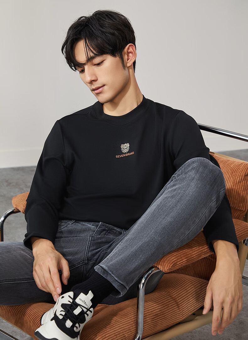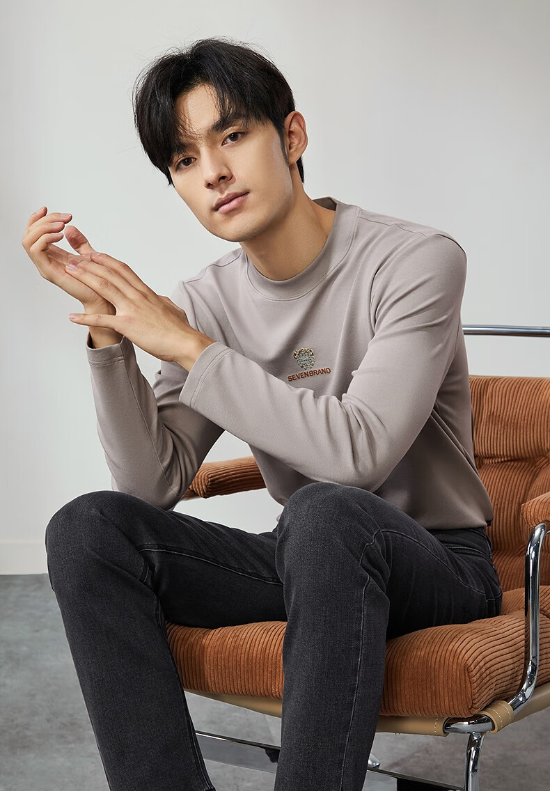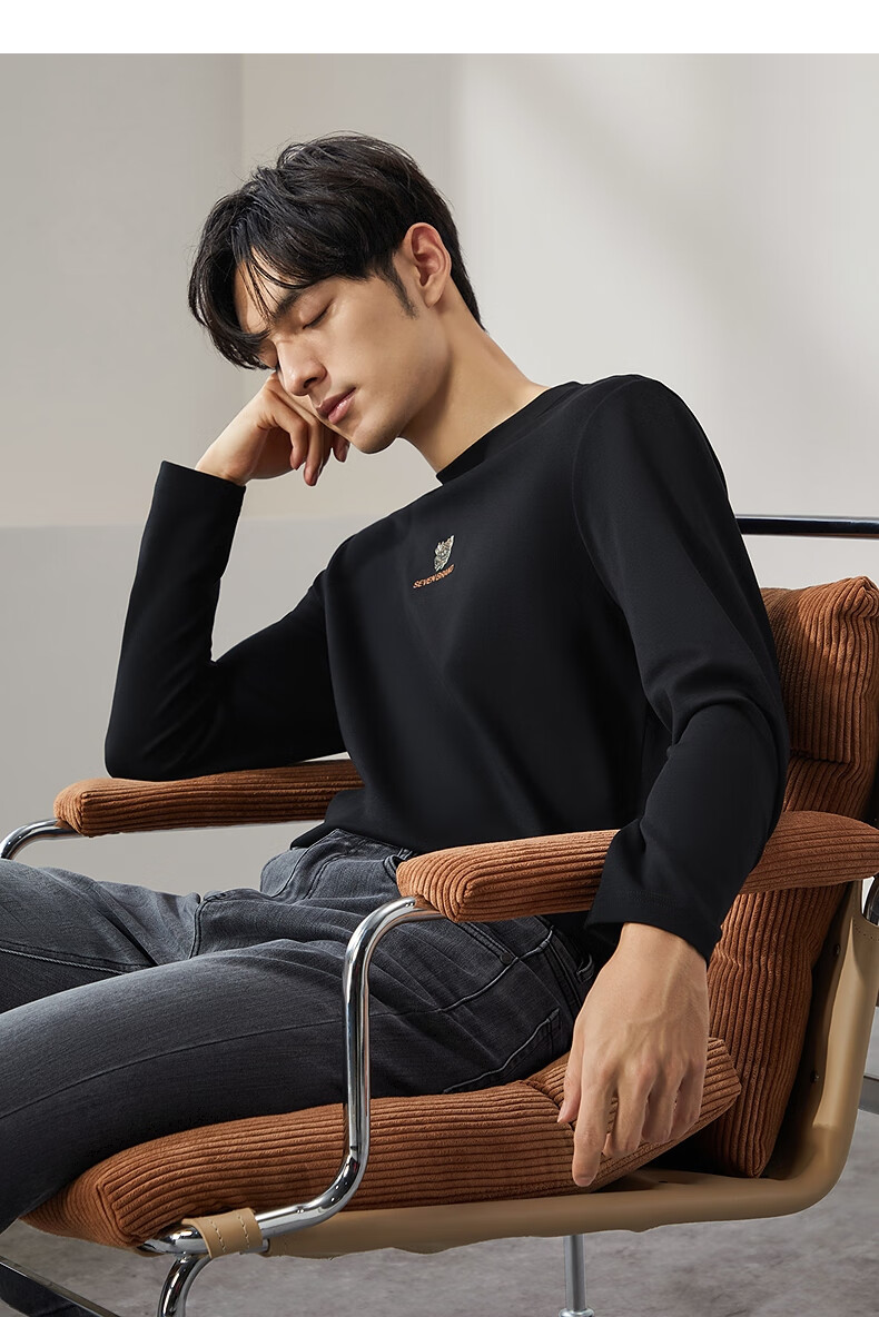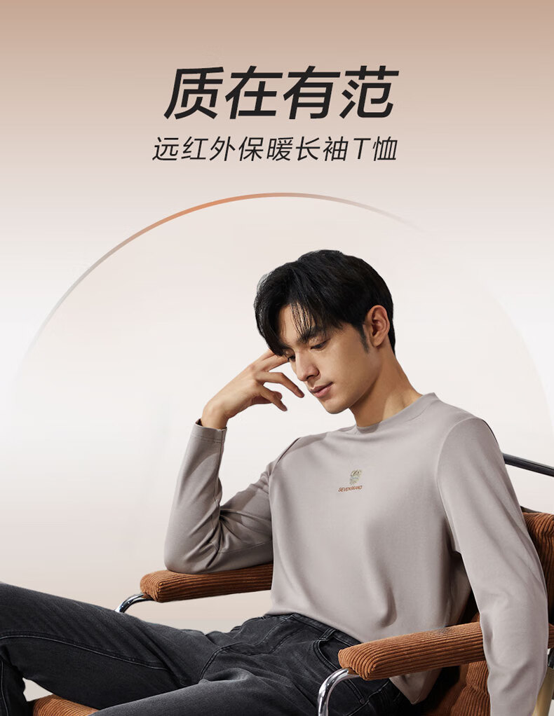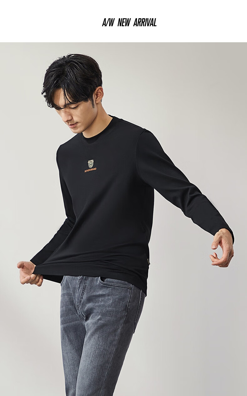 柒牌【3A抗菌】圆领长袖T恤男士春秋时尚百搭休闲体恤衫