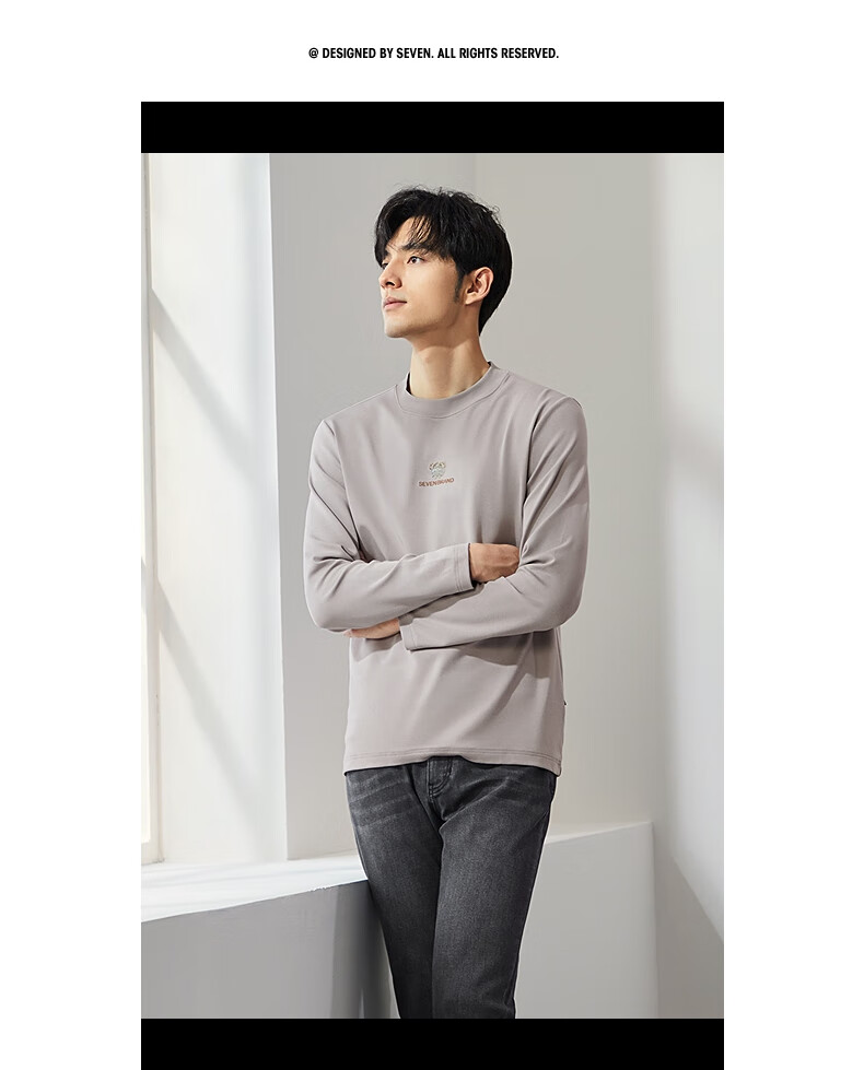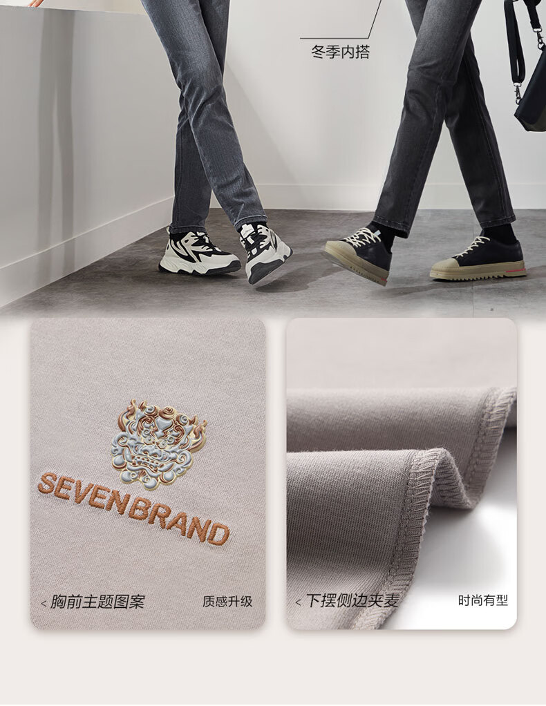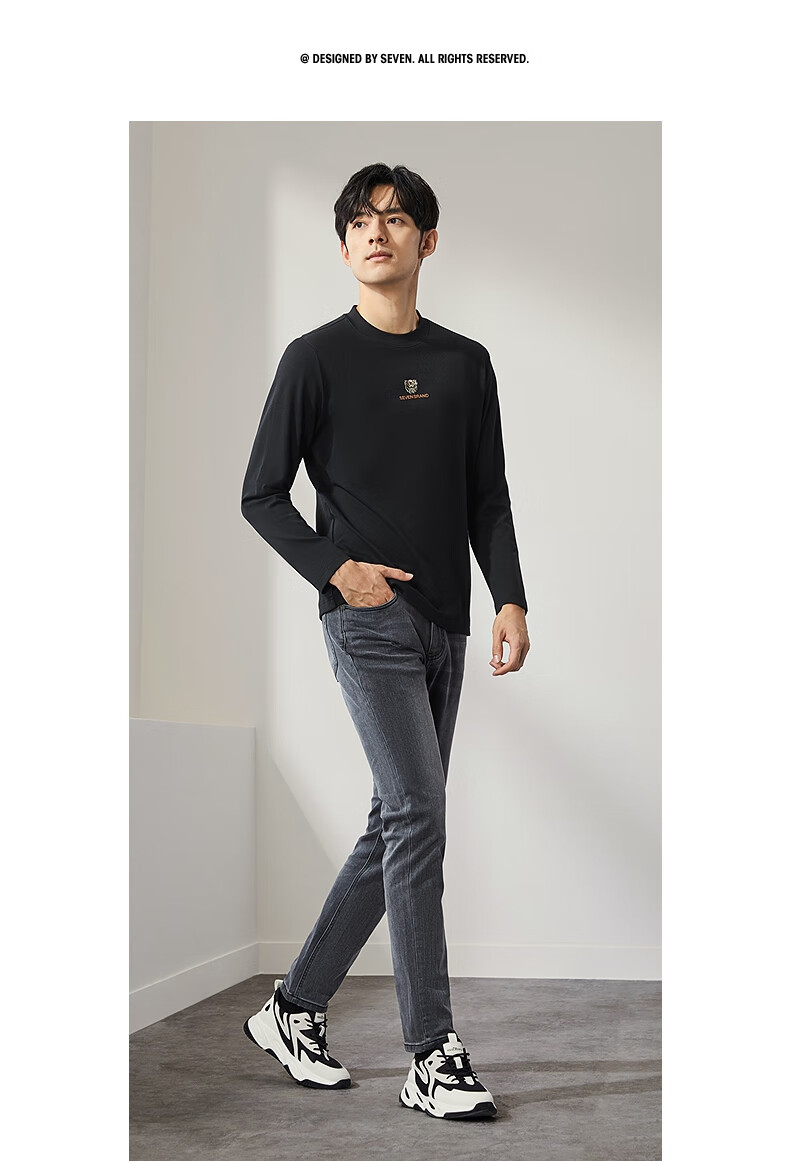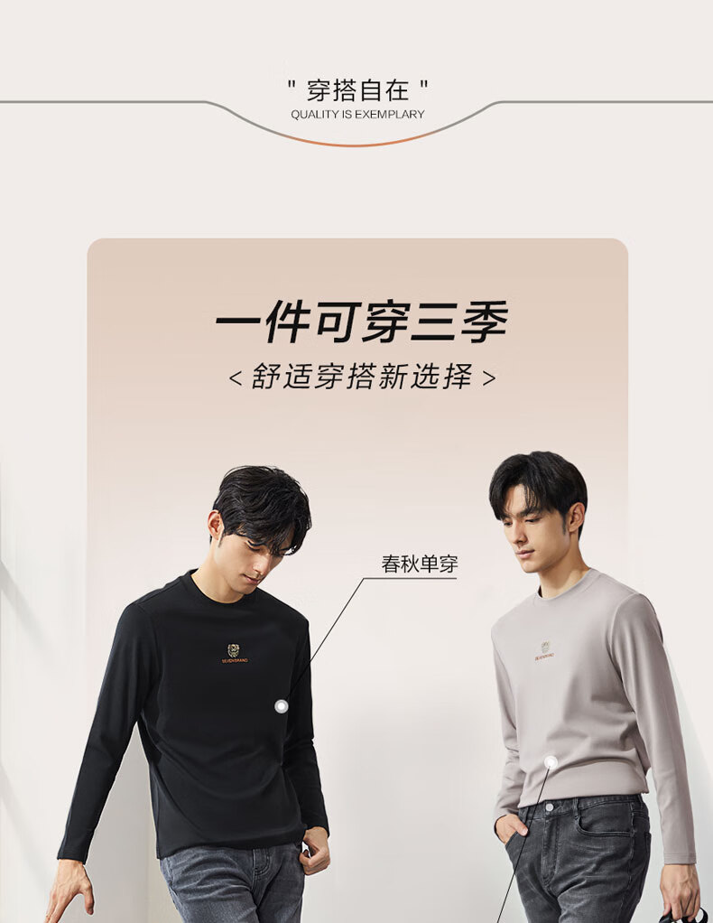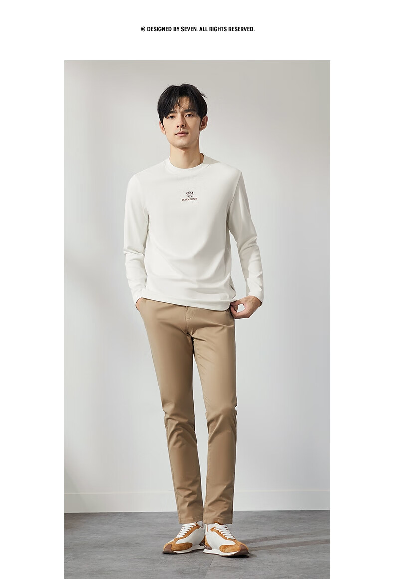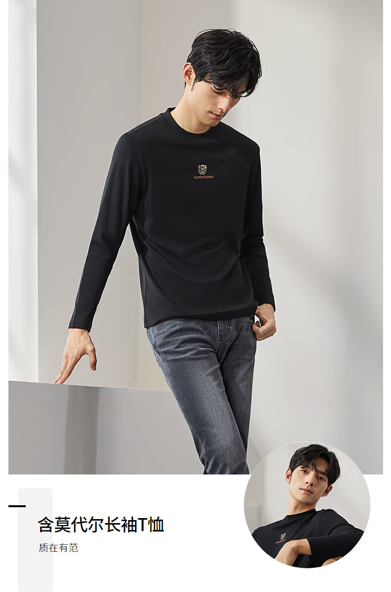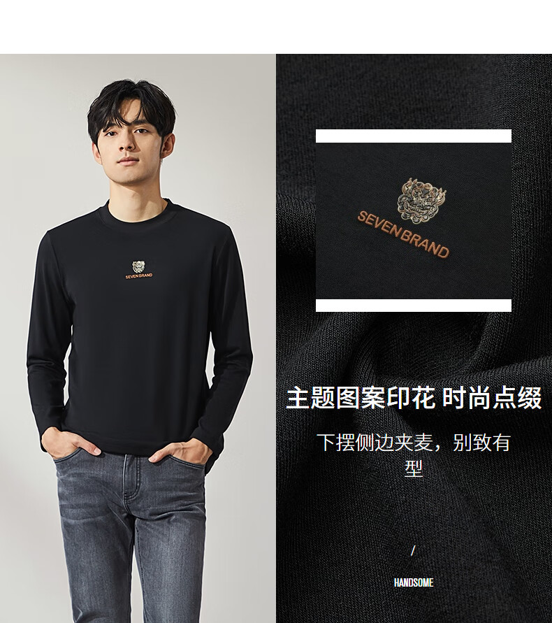 柒牌【3A抗菌】圆领长袖T恤男士春秋时尚百搭休闲体恤衫