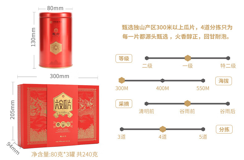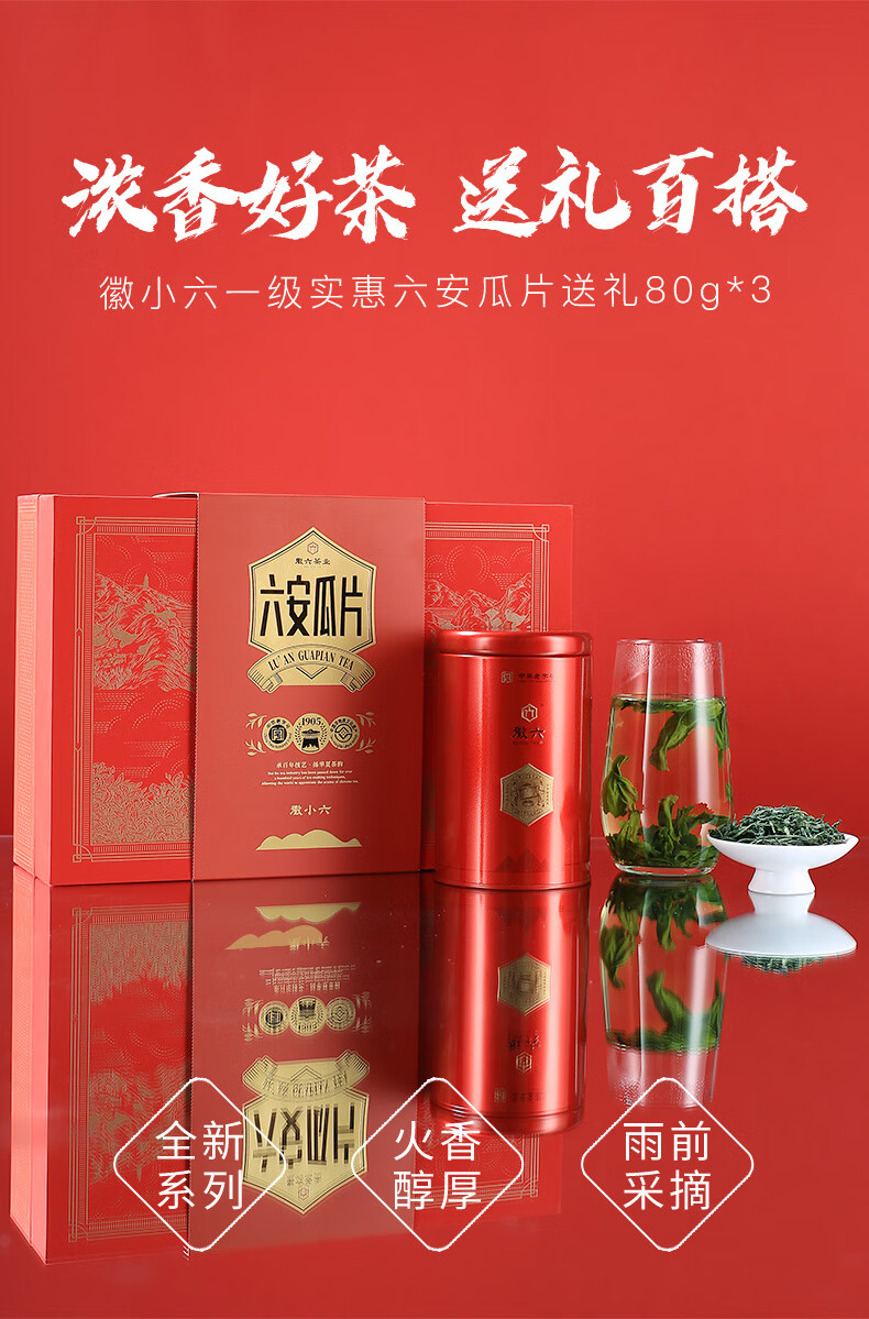 徽六绿茶茶叶六安瓜片240g 2025年新茶徽小六系列礼盒送长辈中秋礼物 徽小六六安瓜片礼盒 240g*1盒